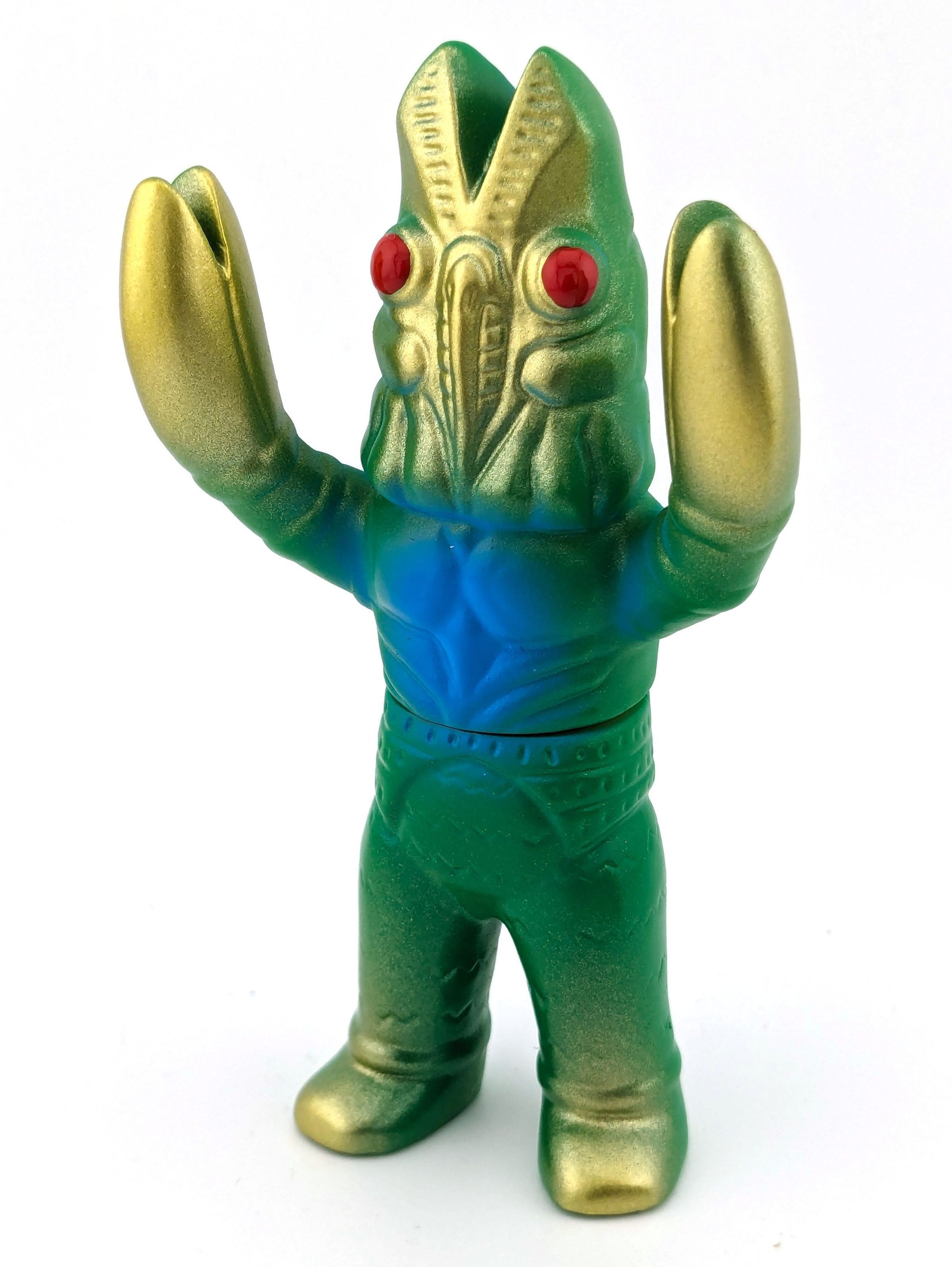 Flesh vinyl with green, red, blue, and gold paint