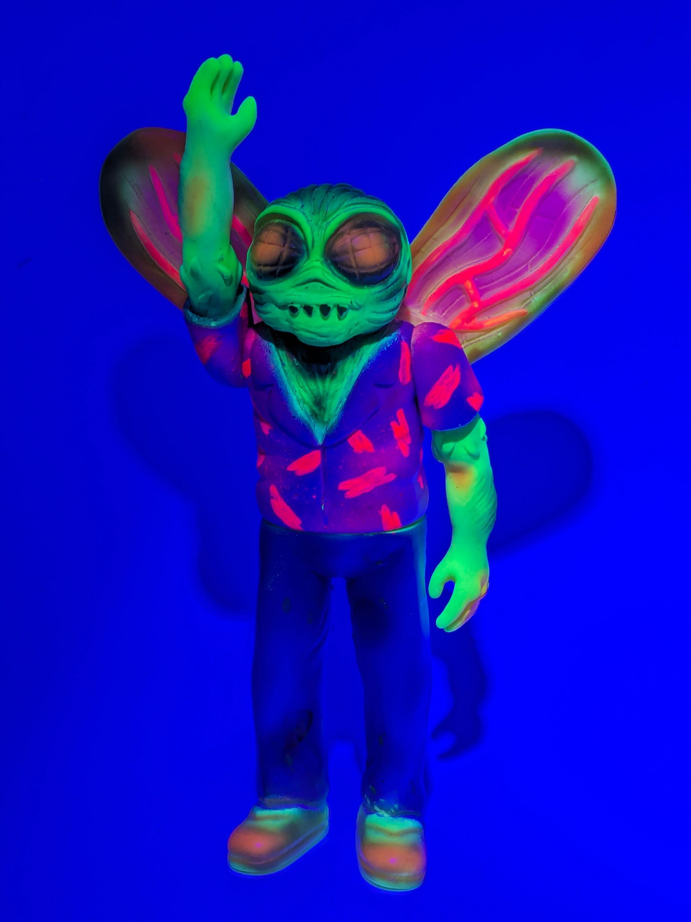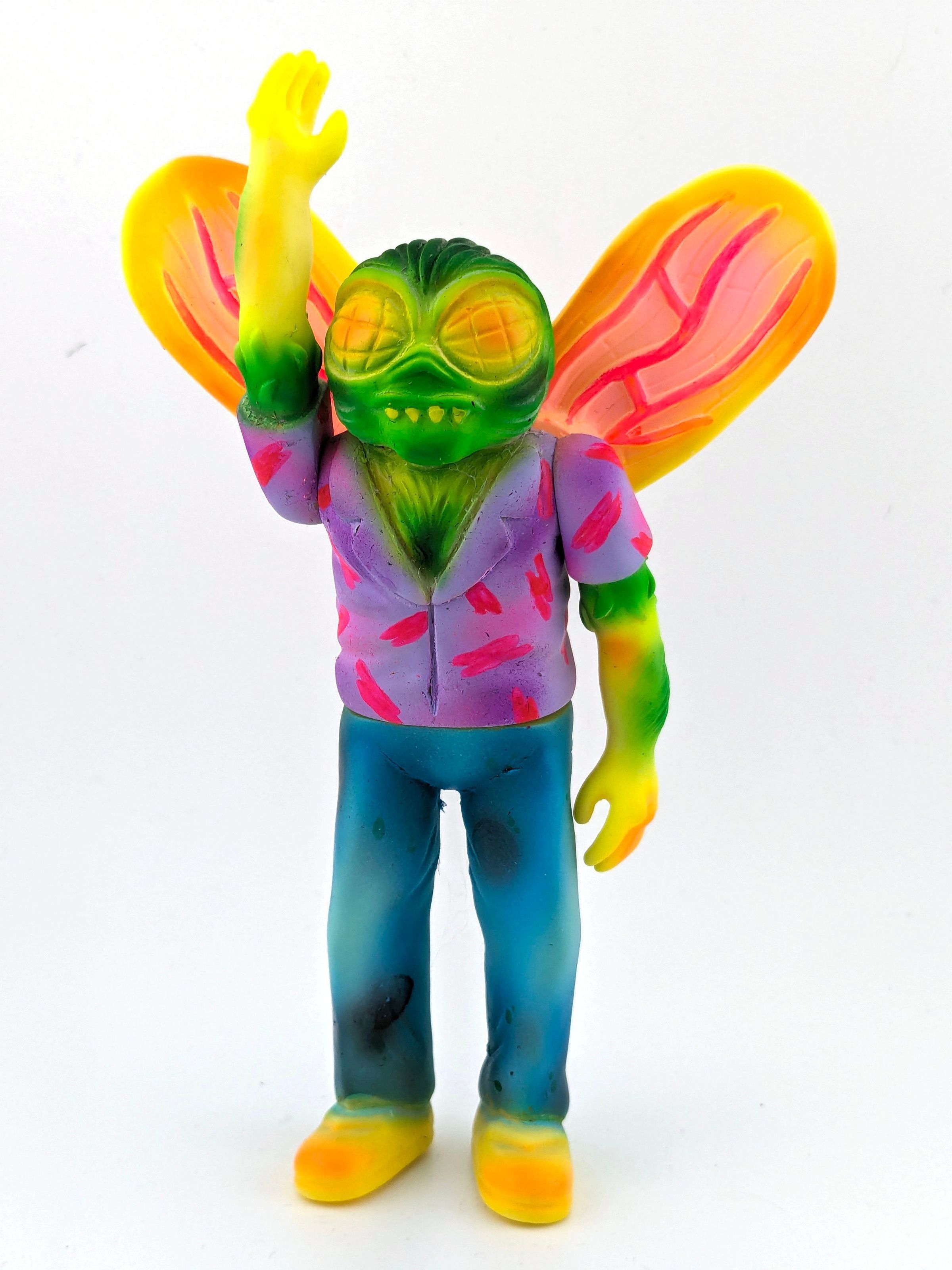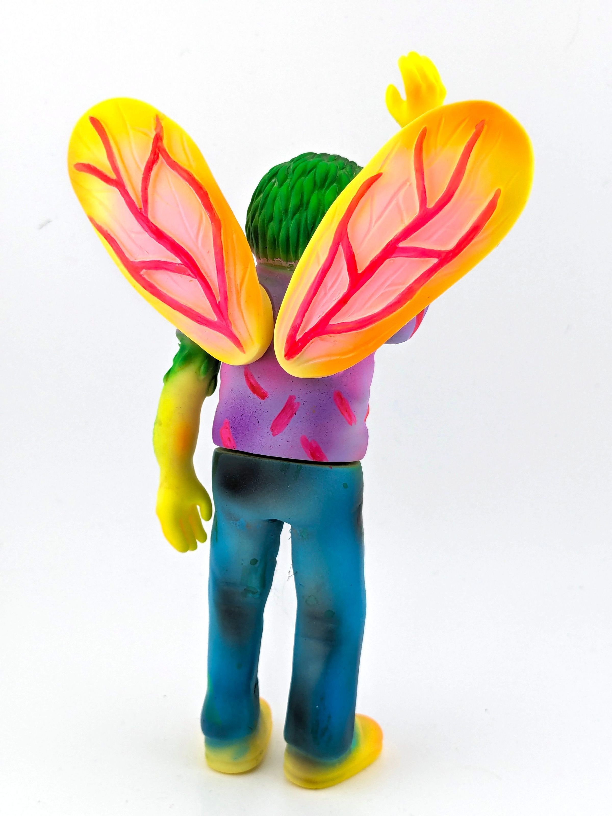 Yellow vinyl with blue, purple, red. green, pink and dark blue paint