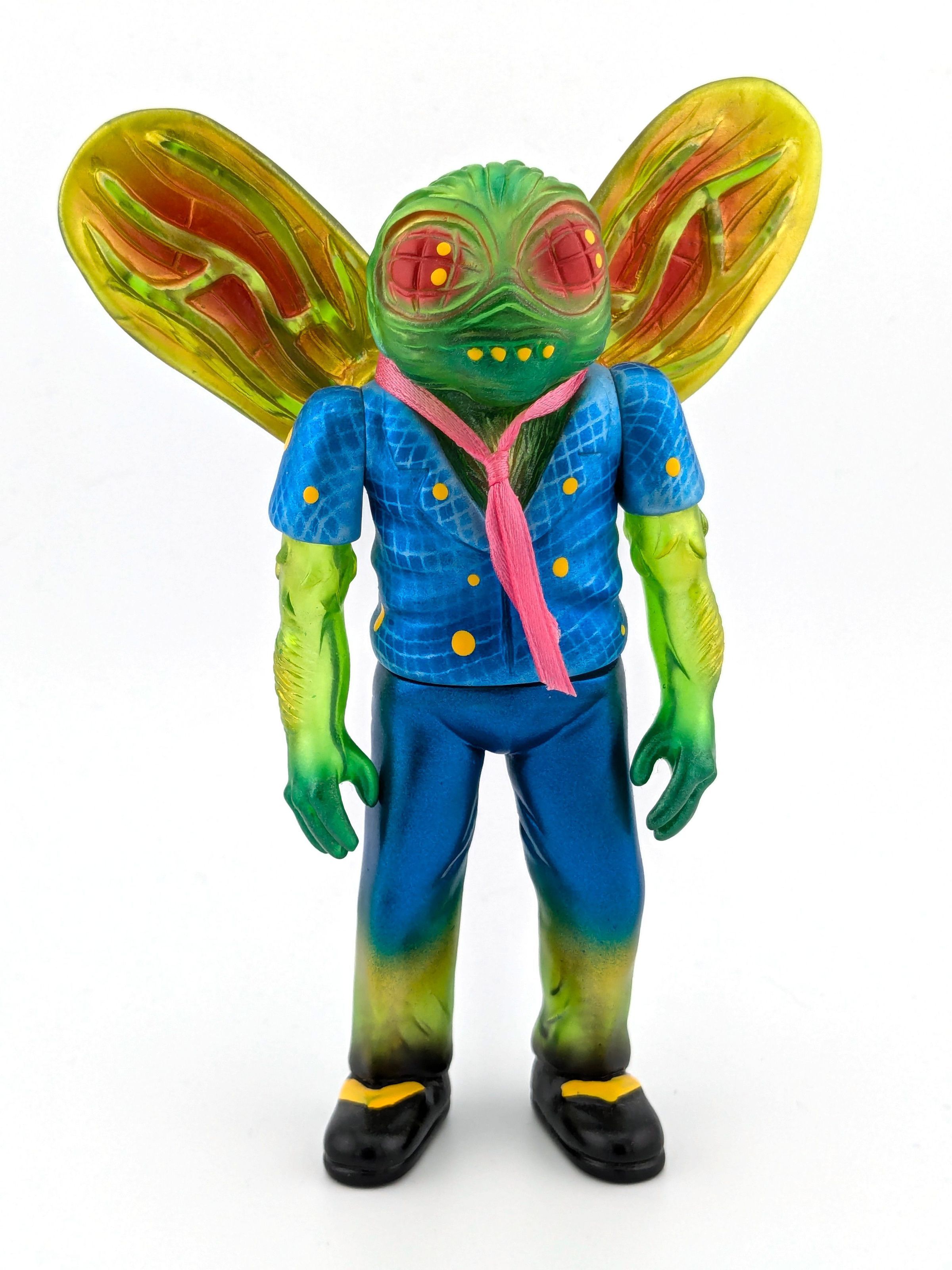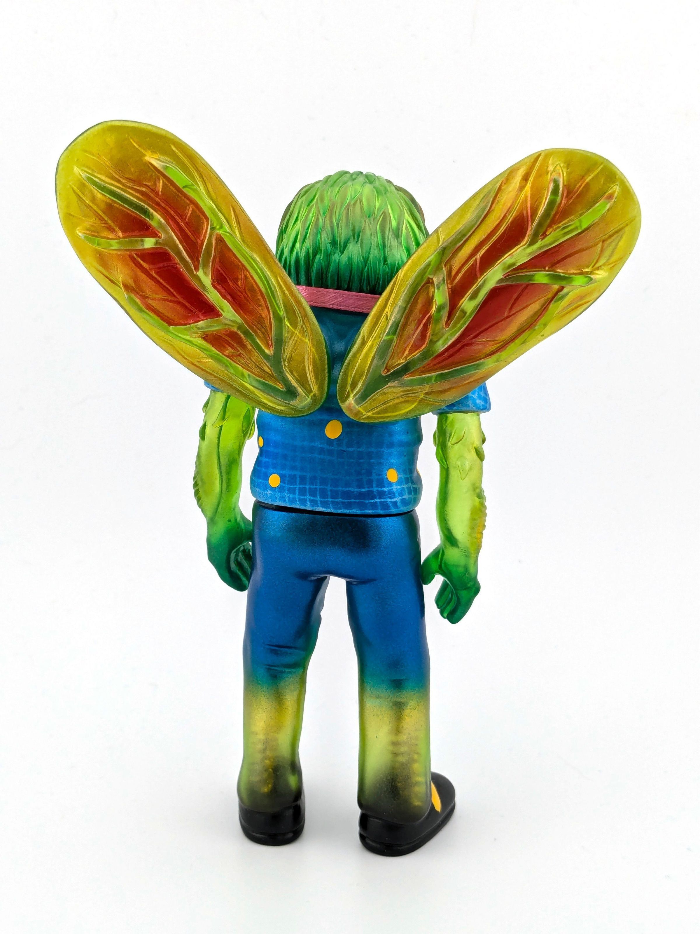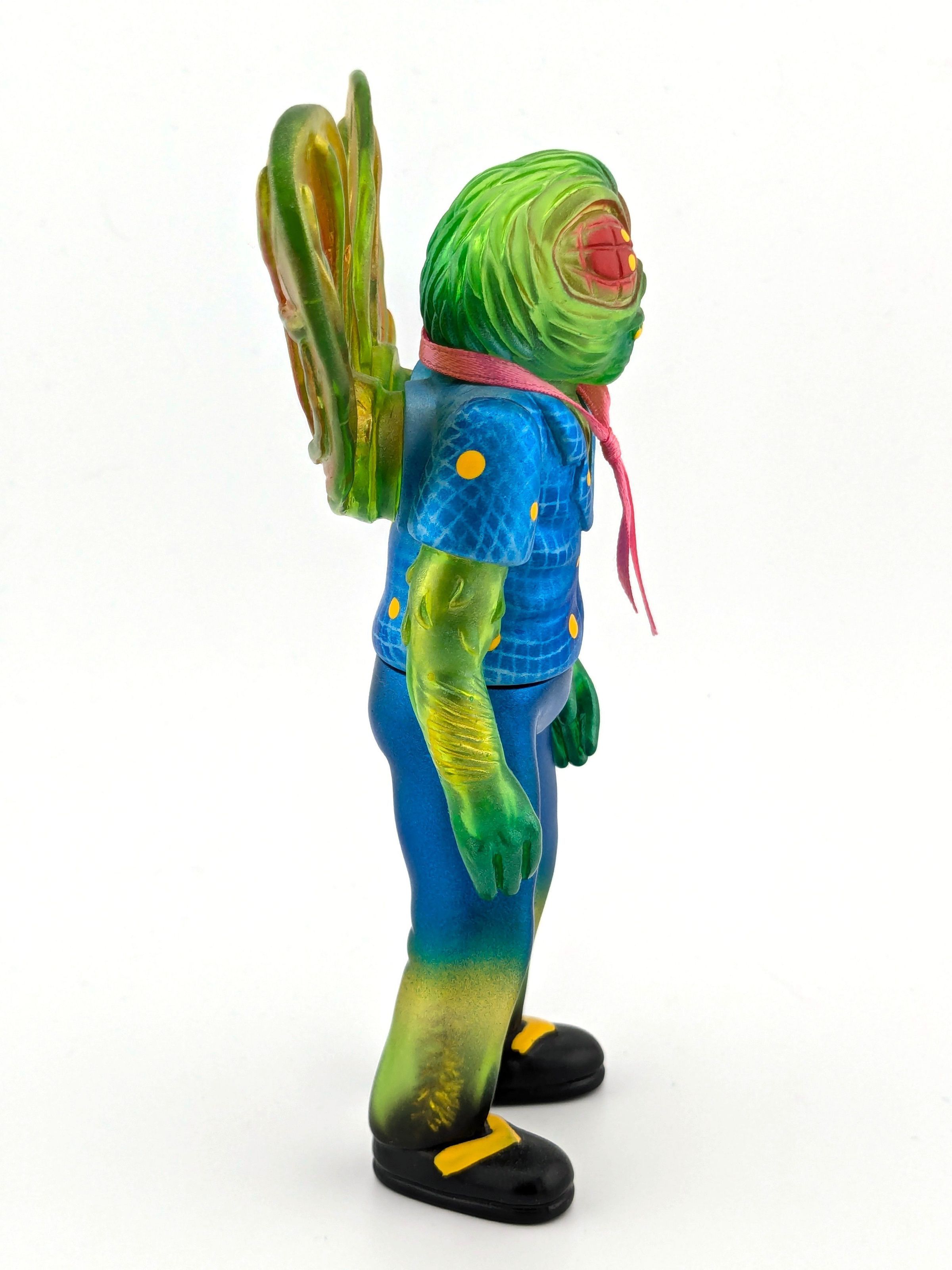 Green vinyl with blue, gold, and red paint
