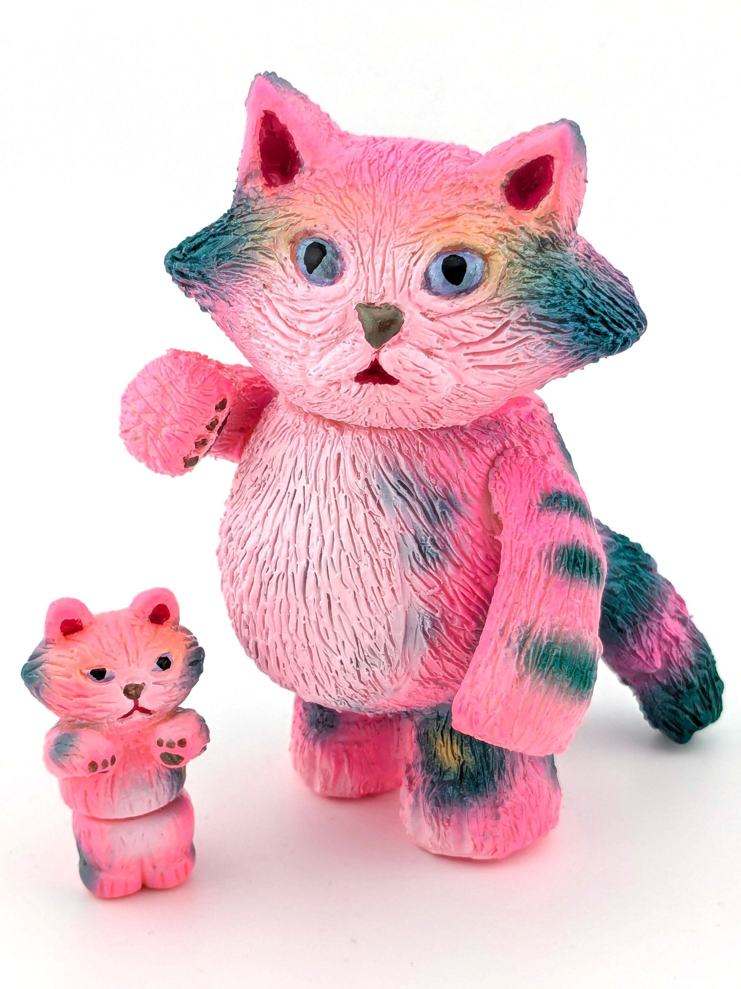Pink vinyl with green, light pink, gold, silver, and black paint.