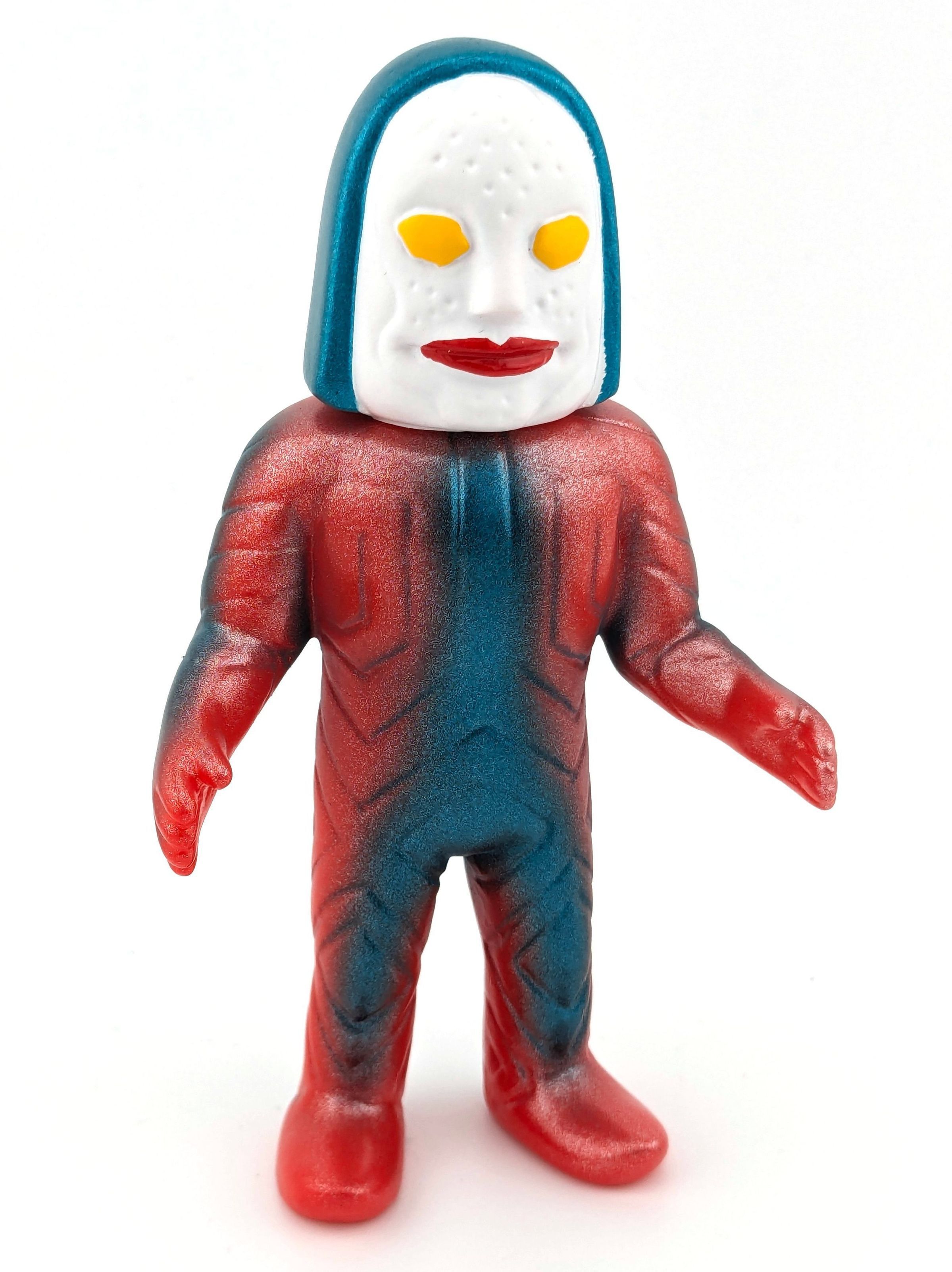 Flesh vinyl with red, metallic blue, white, and yellow paint