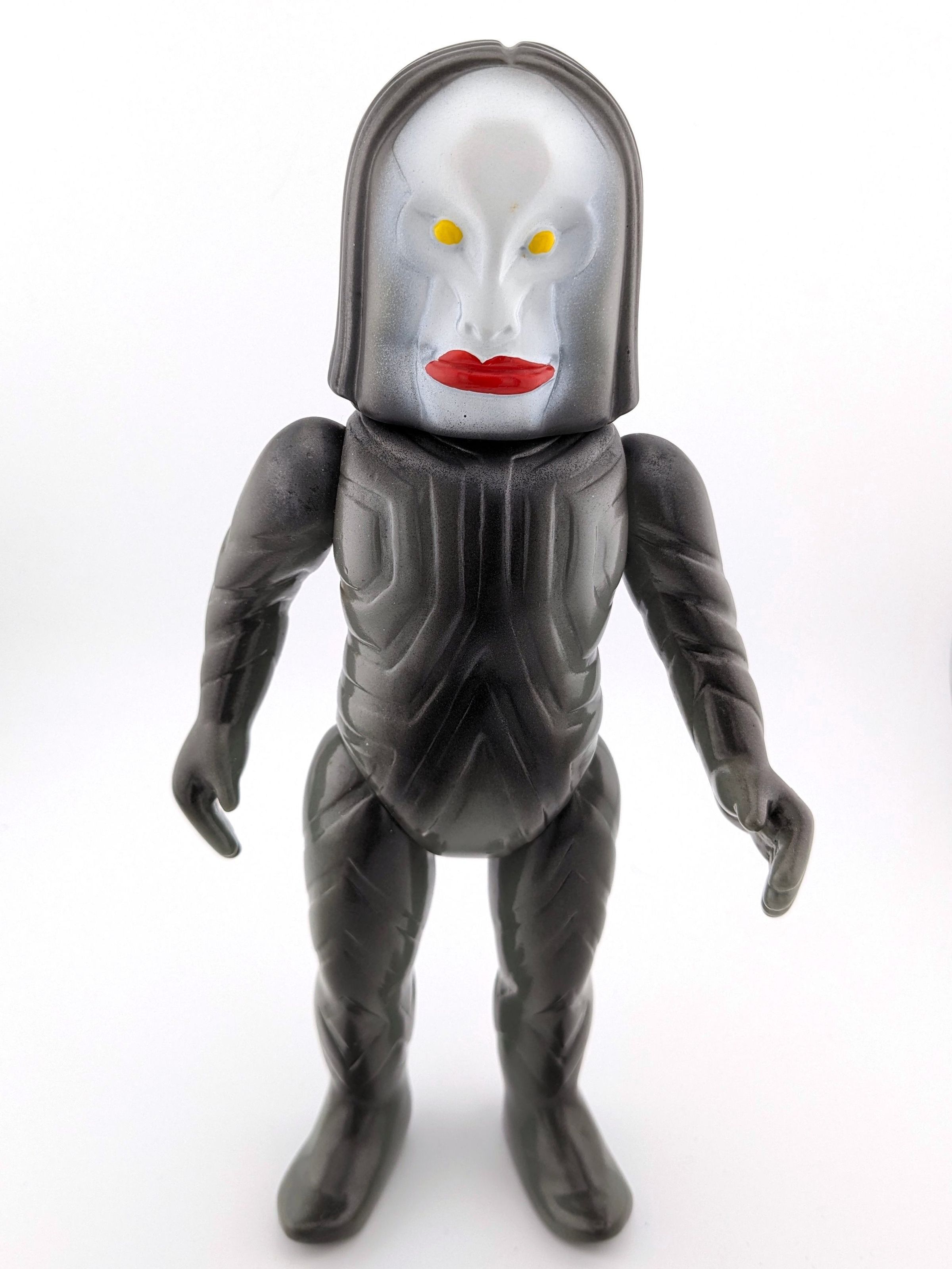 Gray vinyl with black, white, red, and yellow paint