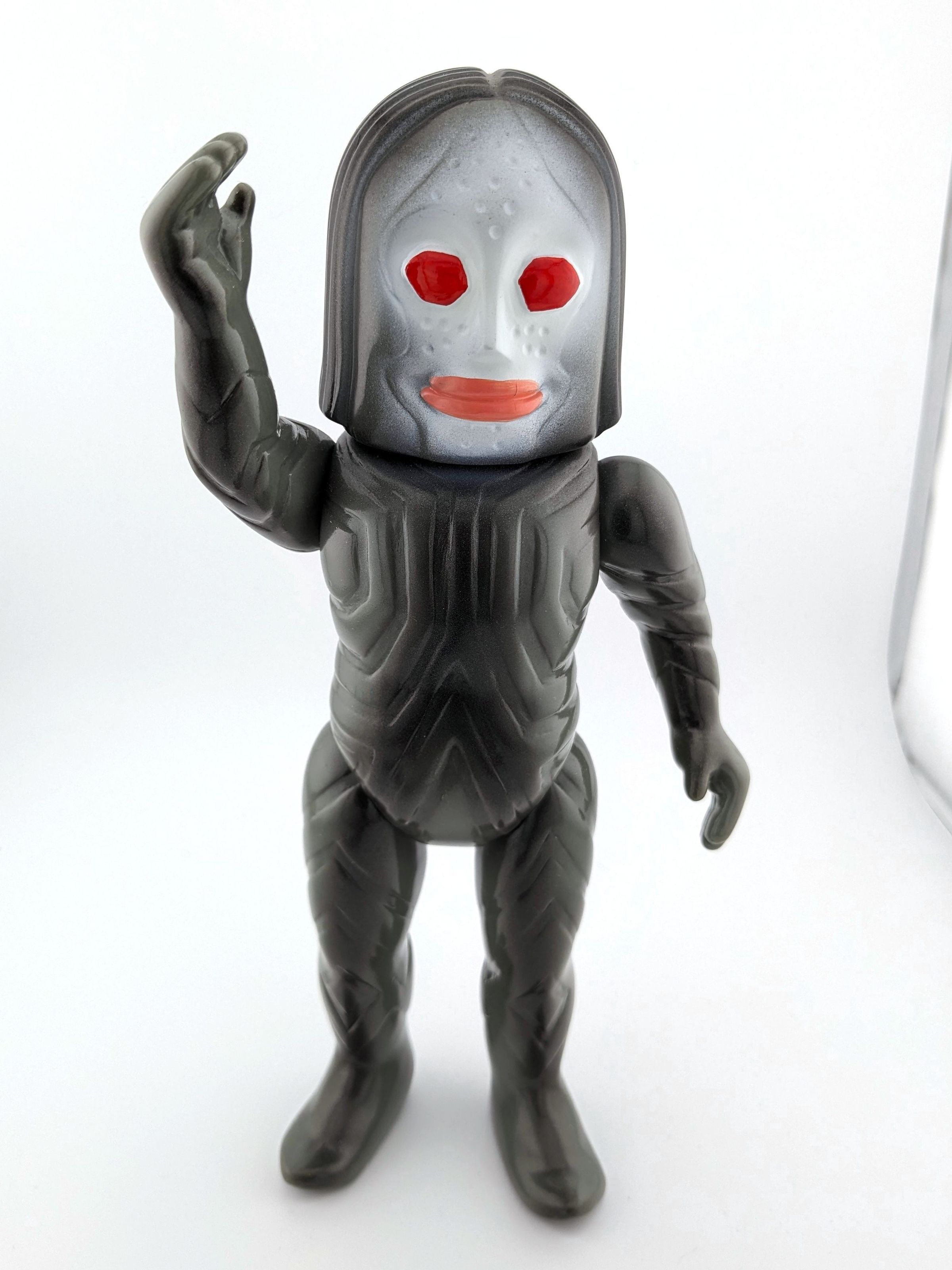 Gray vinyl with black, white, red, and pink paint