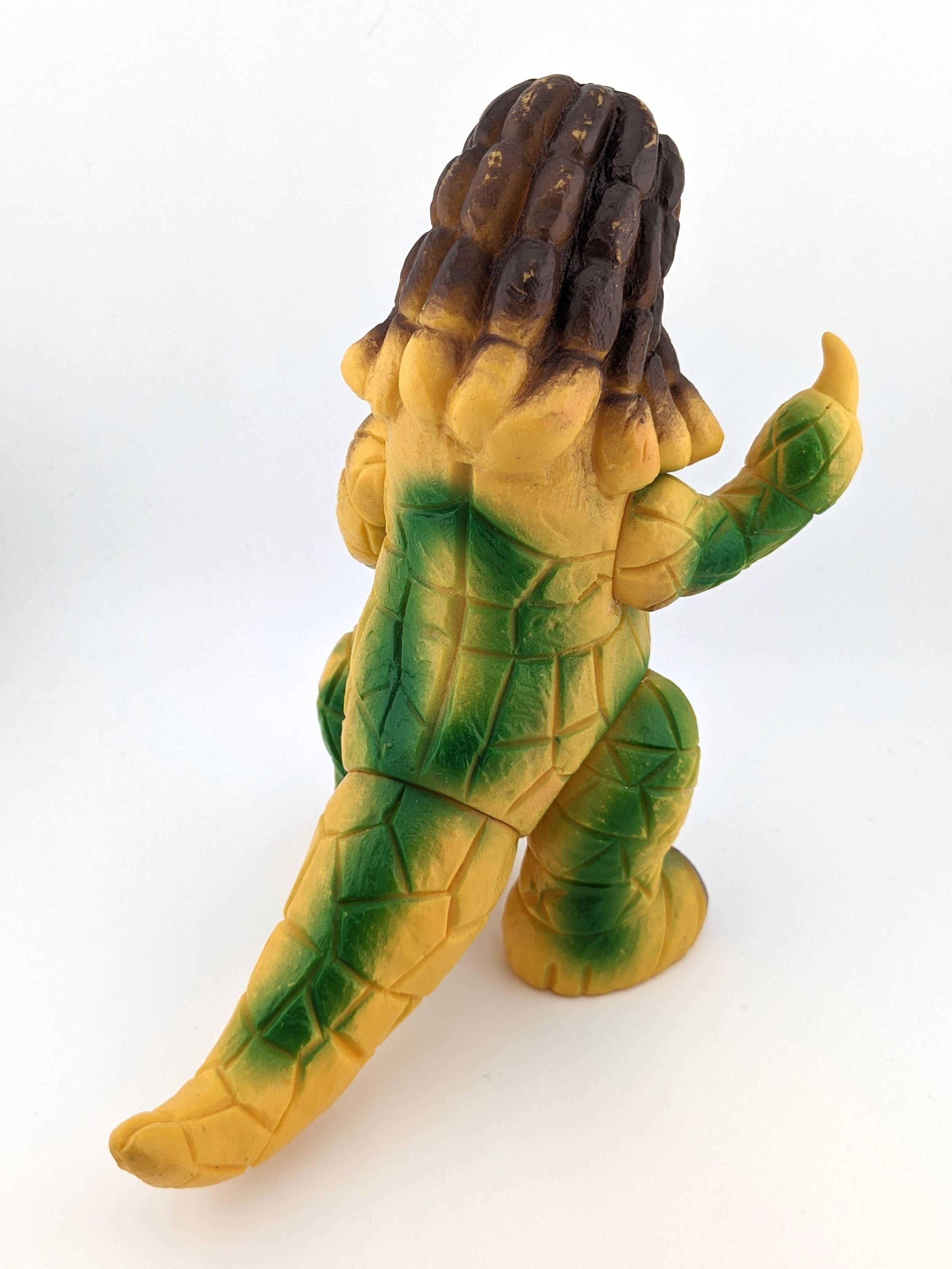 Yellow vinyl with brown, green, red, silver, and black paintMade/Created