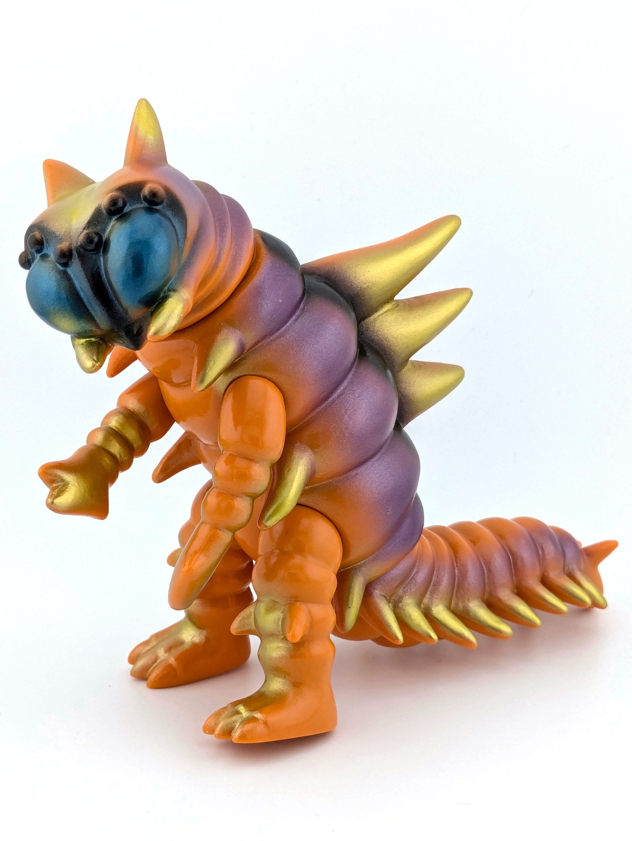 Orange vinyl with black, gold, purple, and blue paintMade/Created