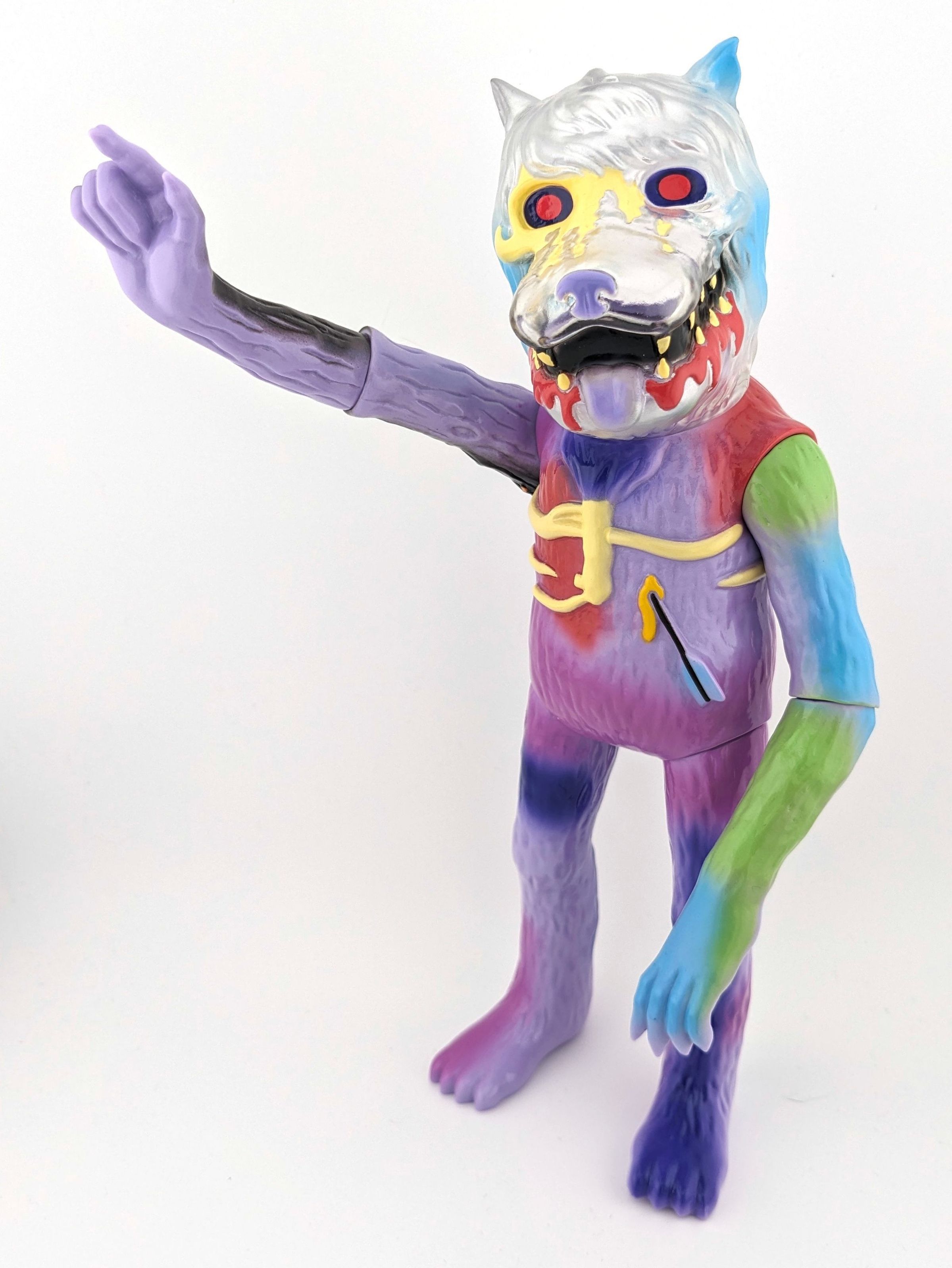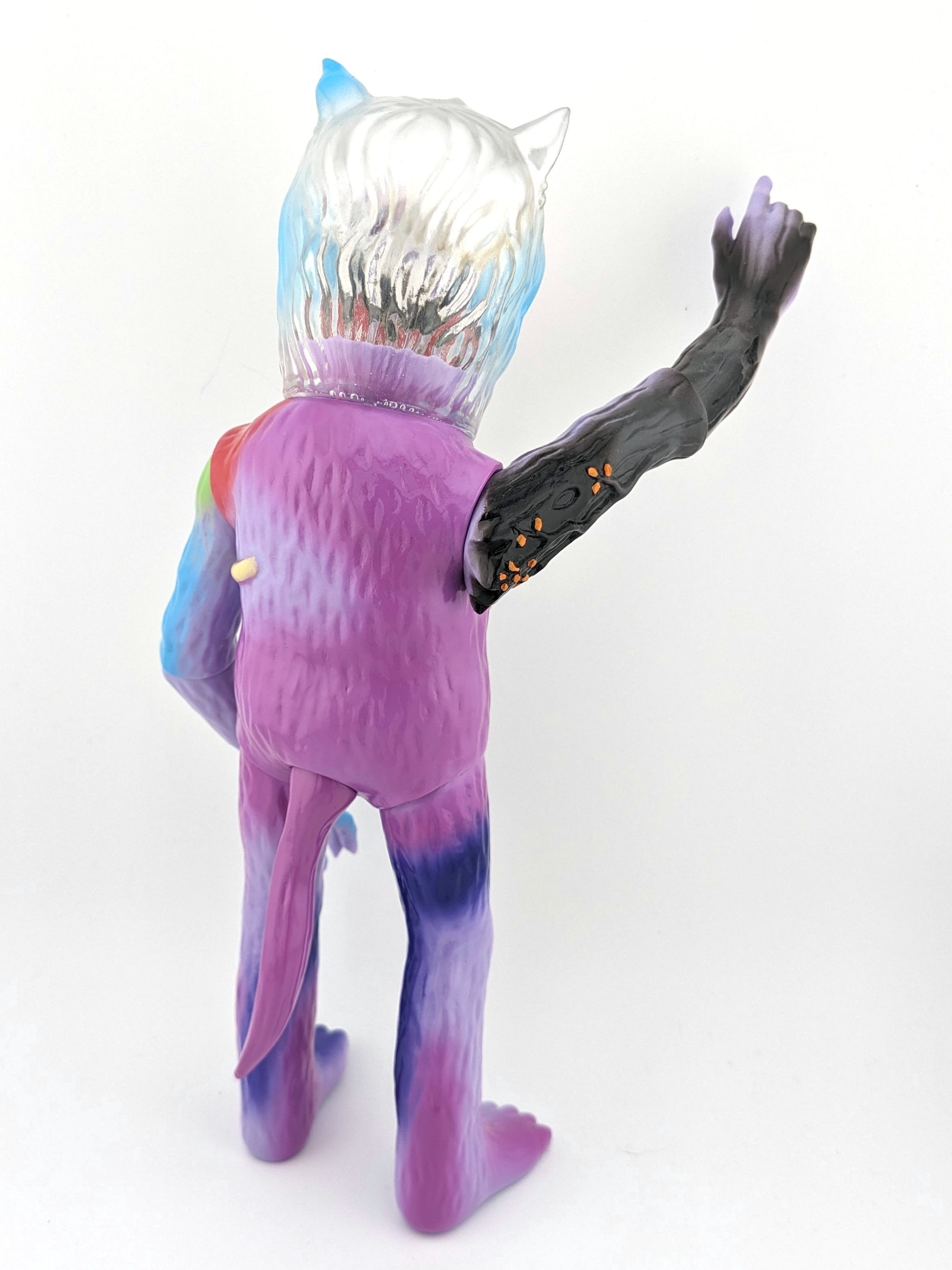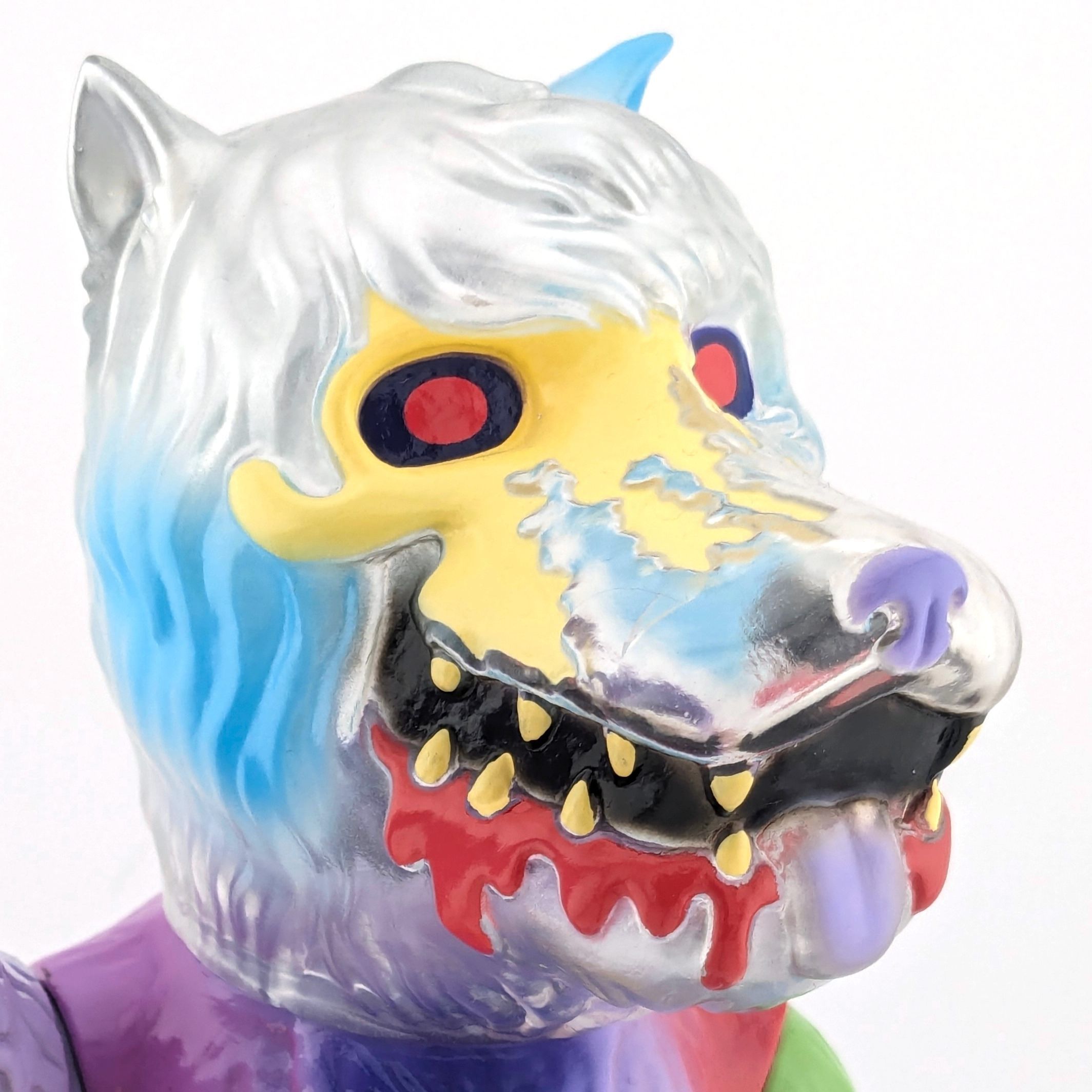 Clear and purple vinyl with silver, cream, black, red, green, blue, and purple paint.