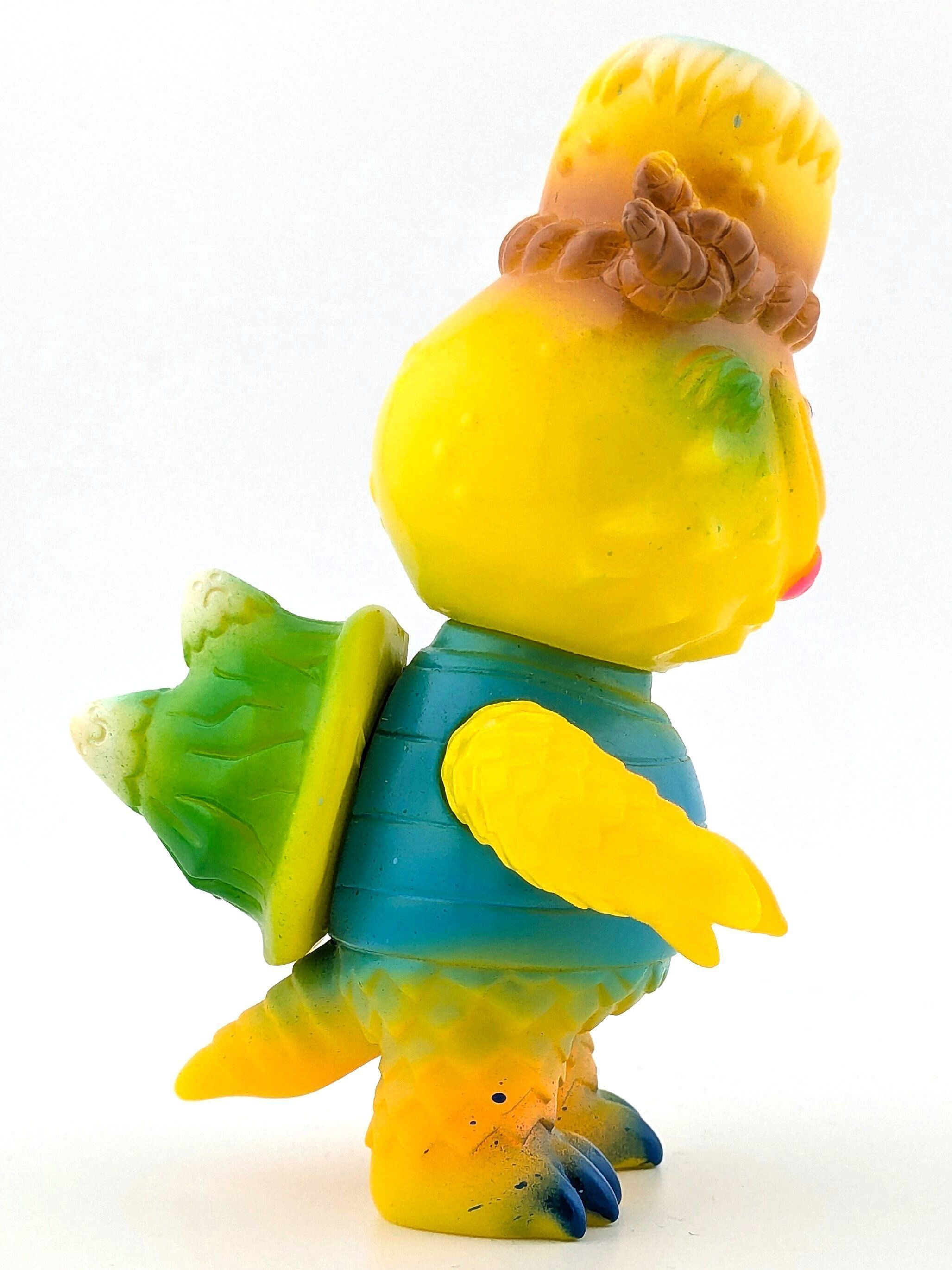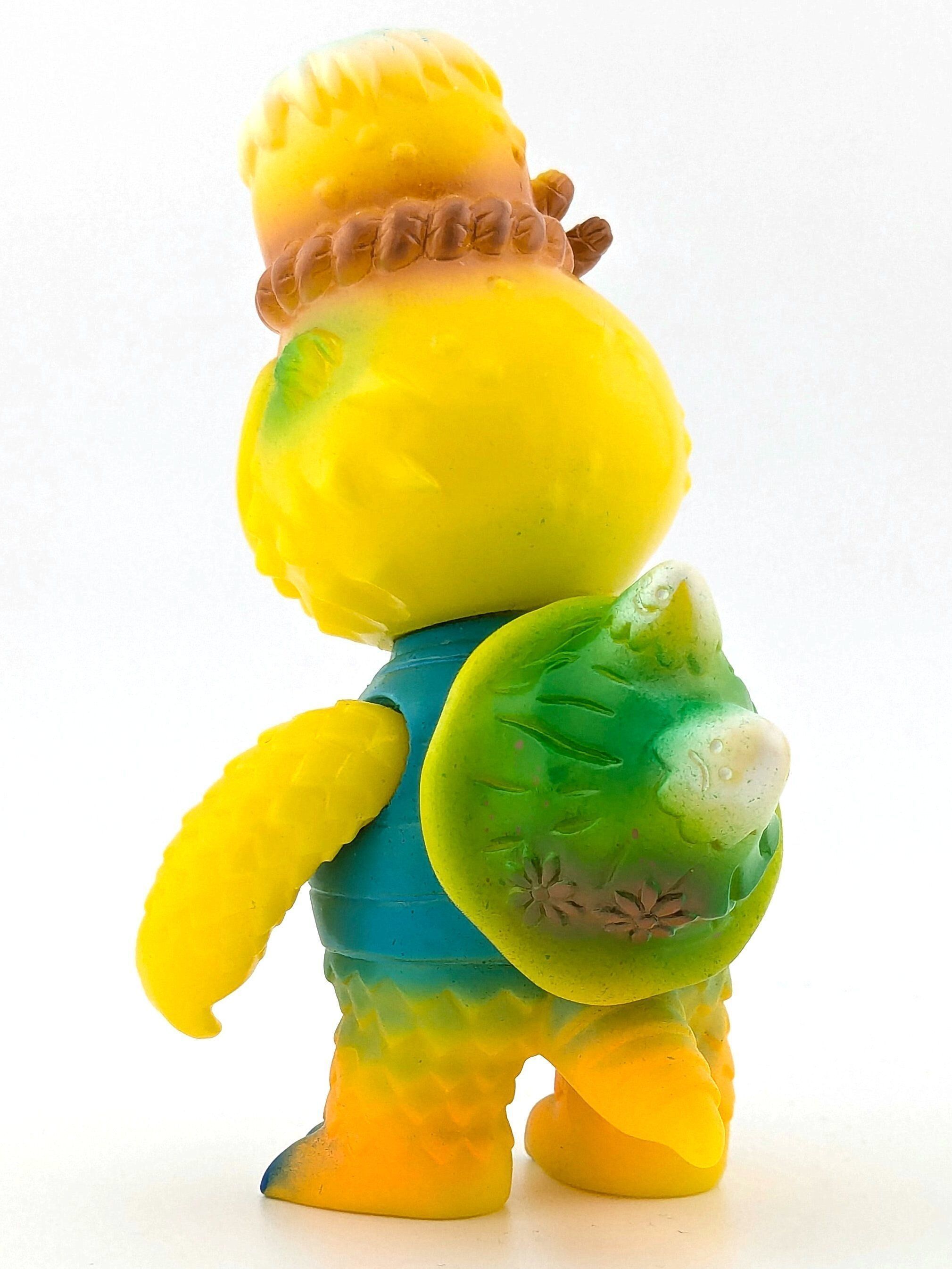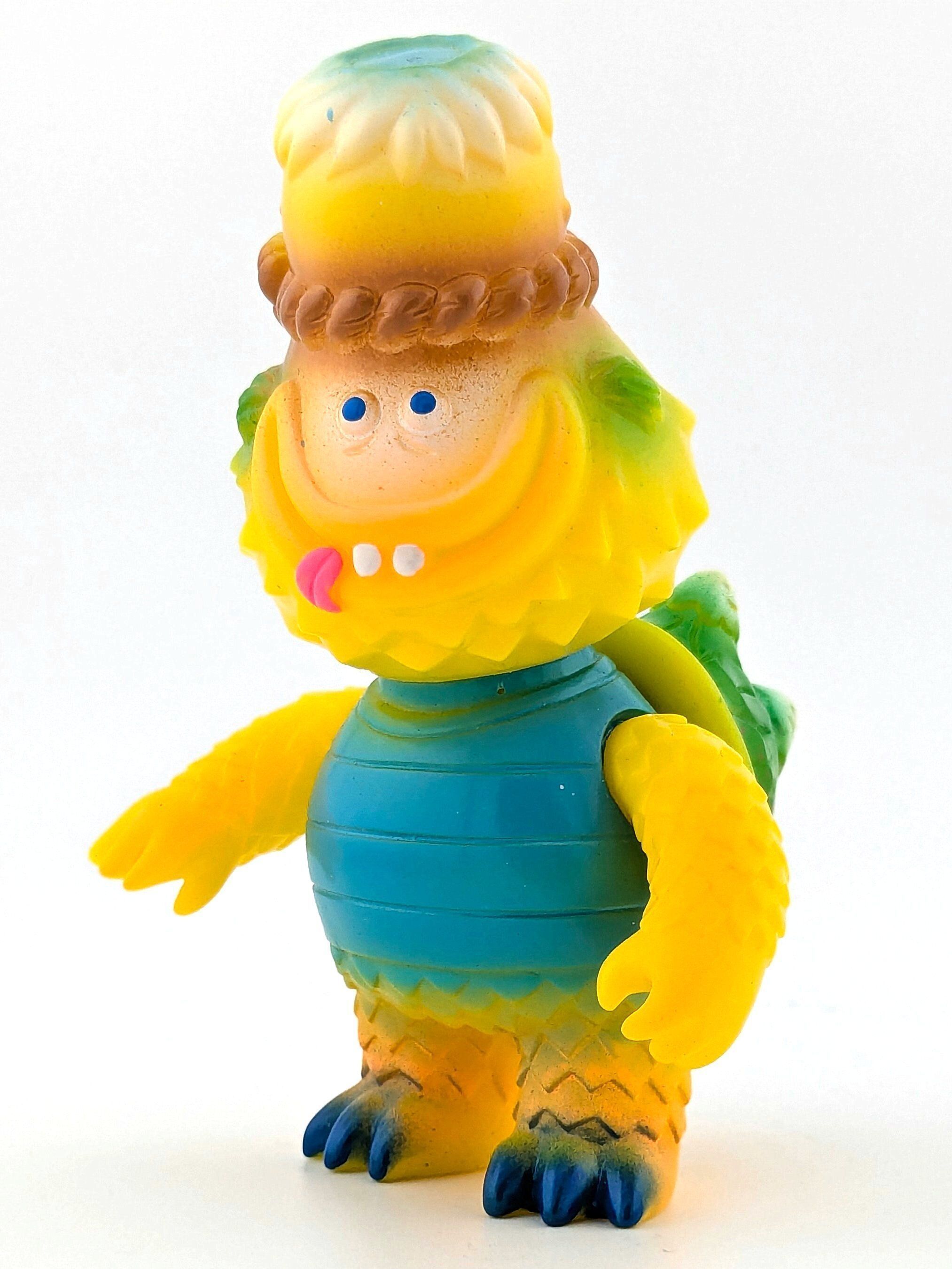 Yellow vinyl with white, turquoise, brown, blue, green and pink paint