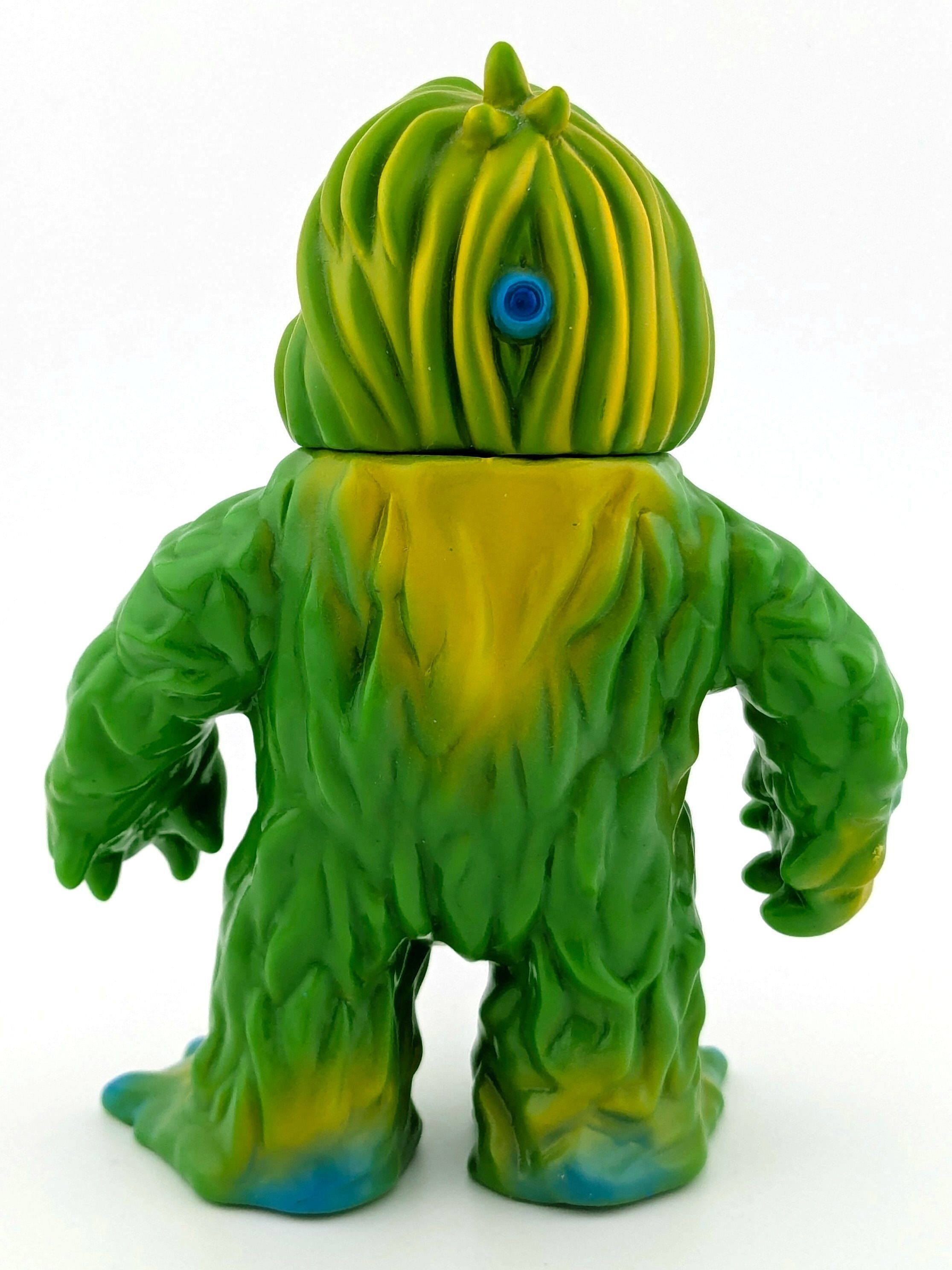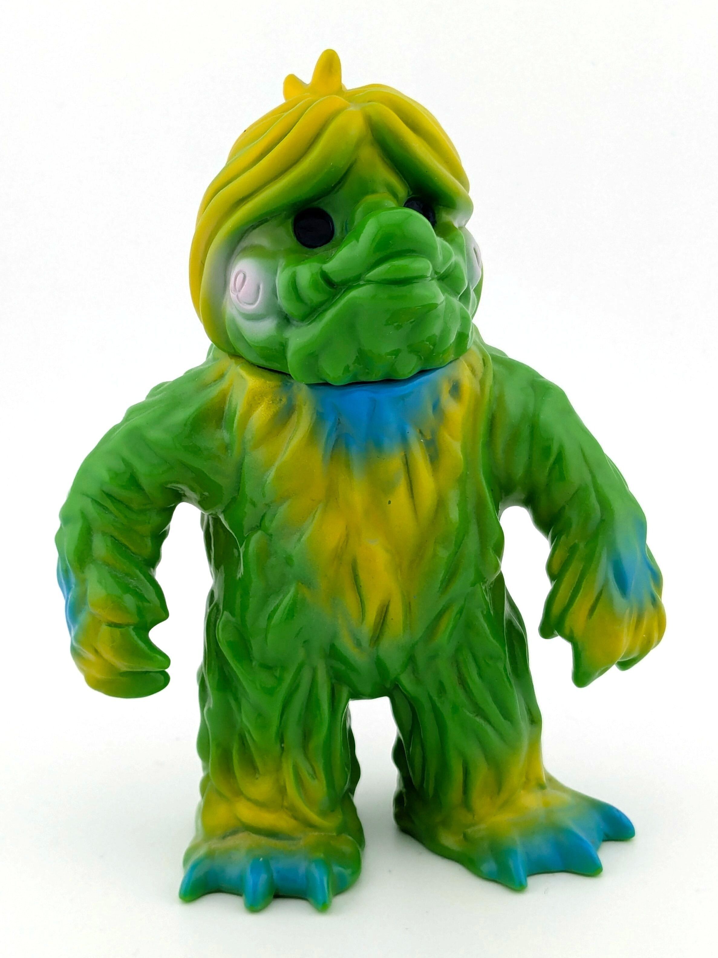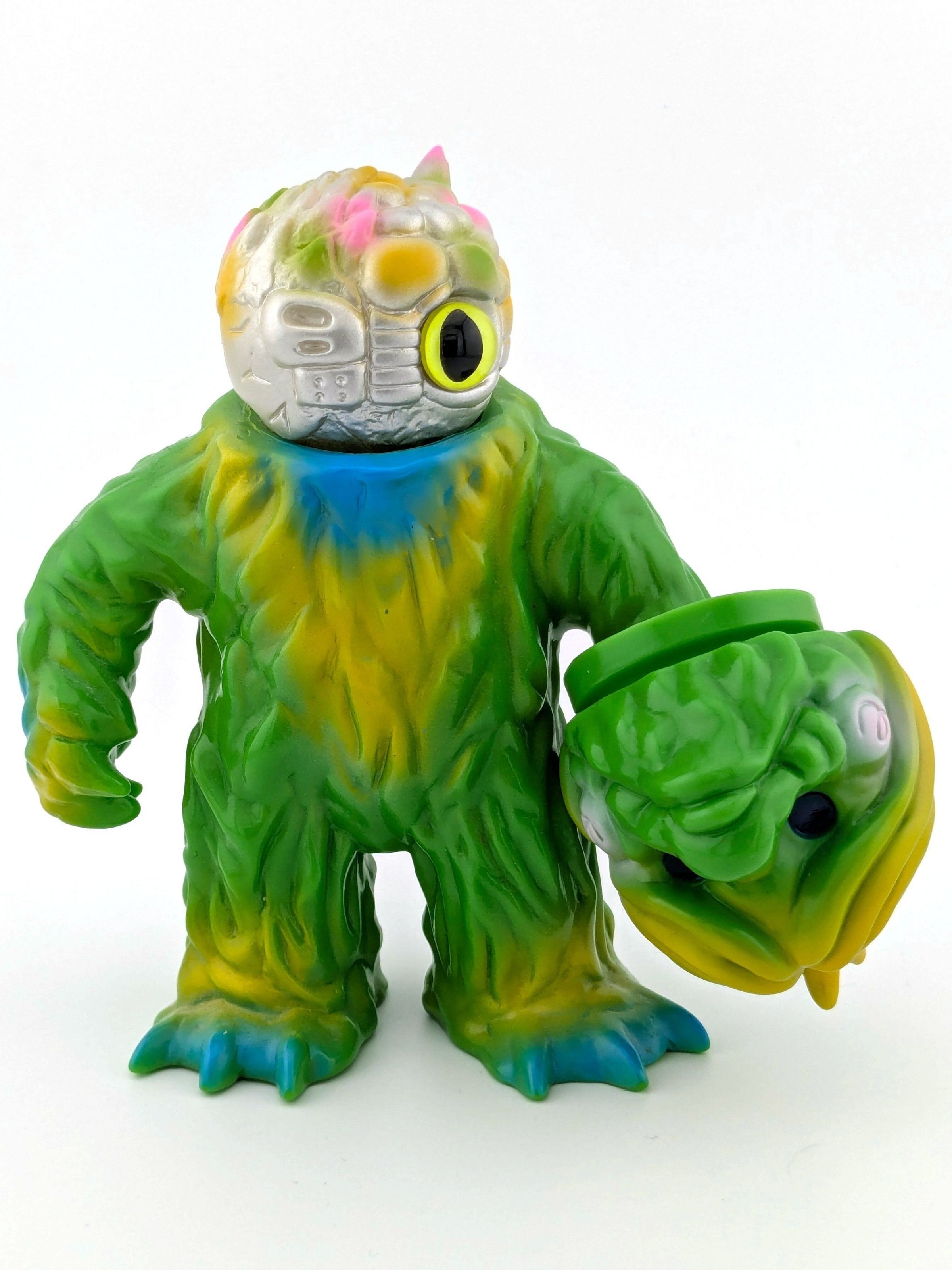 Green vinyl with turquoise, yellow, dark blue, and pink paint