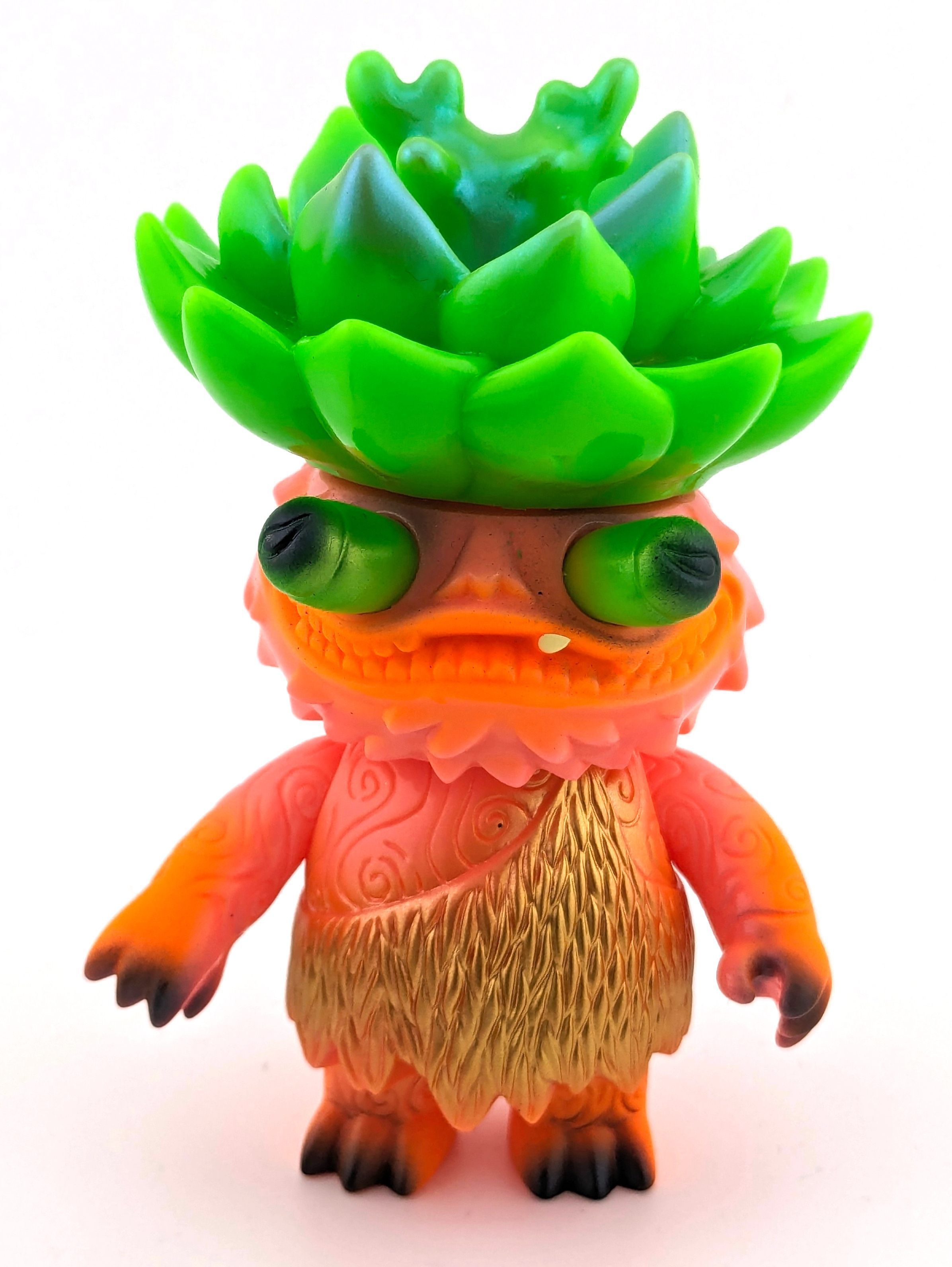 Green and peach vinyl with pearlescent blue, black, white, and gold paint.