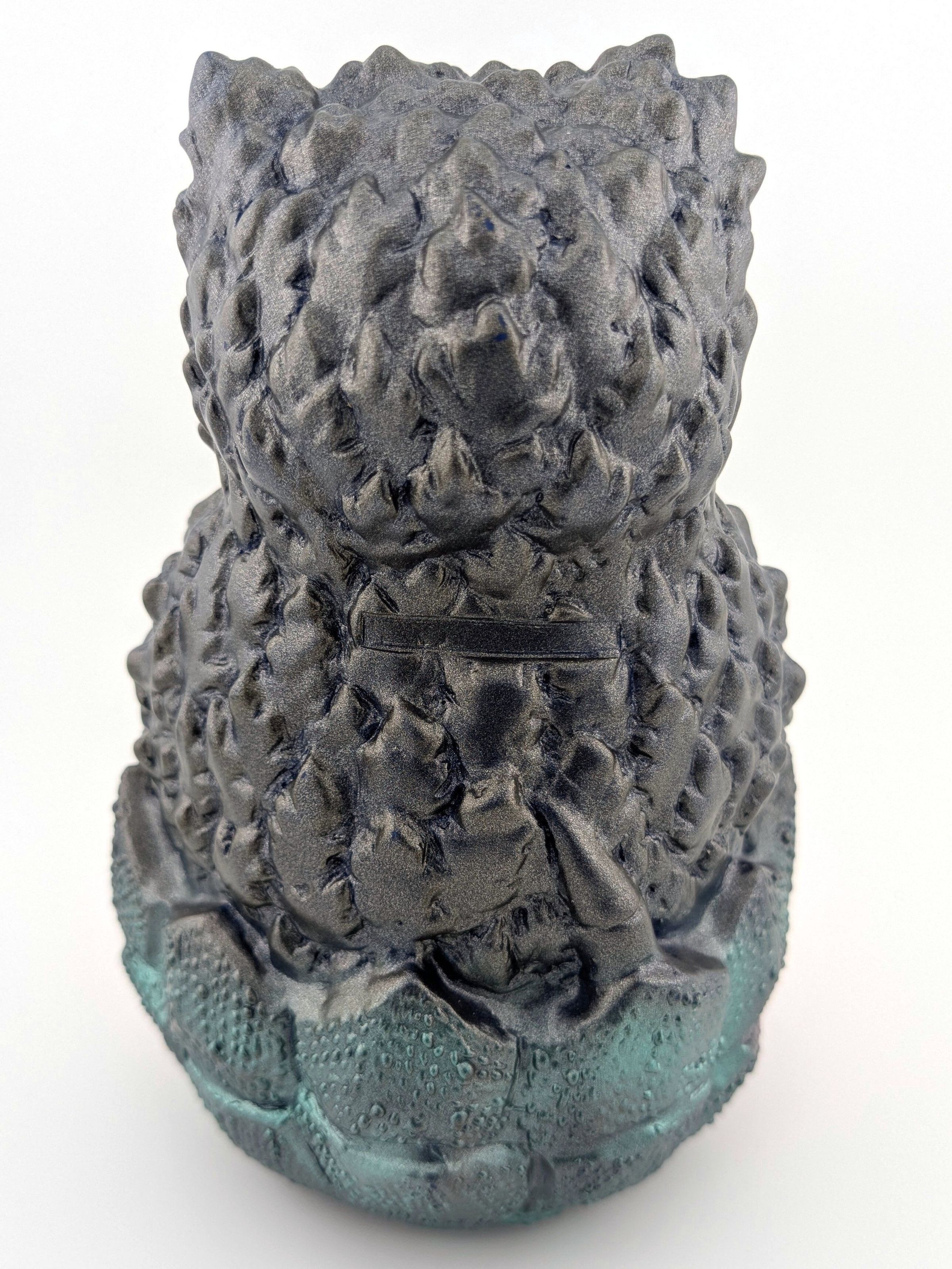 Dark blue vinyl with gray, red, metallic green, and metallic purple paint