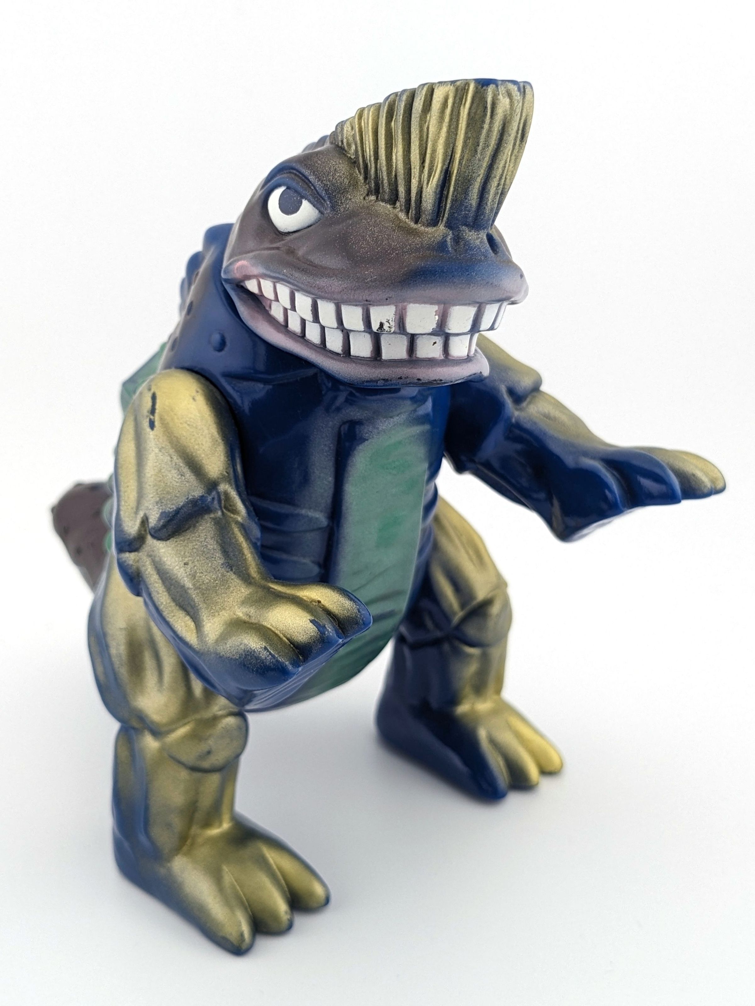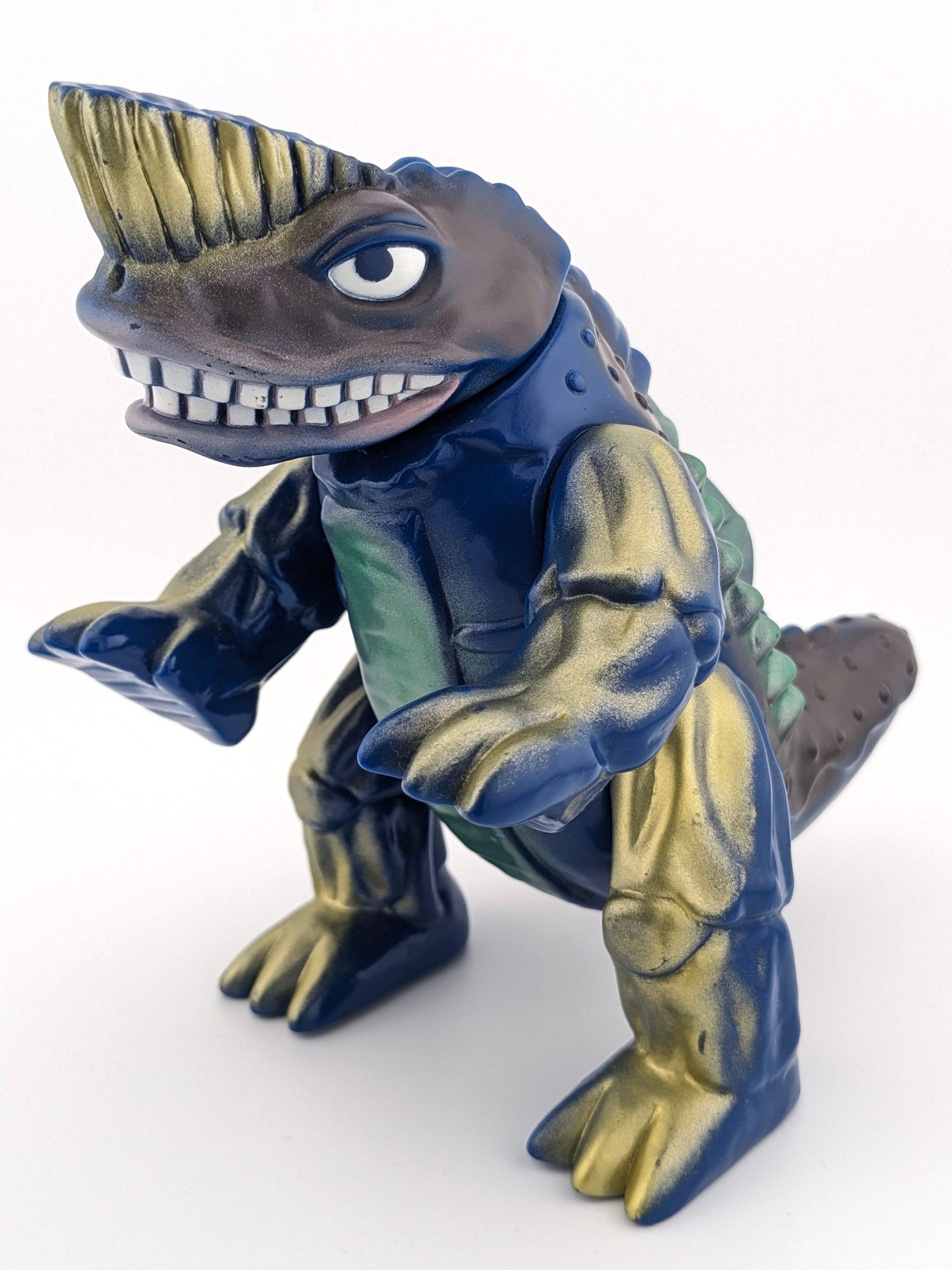 Blue vinyl with gold, green, white, black, and silver paintMade/Created