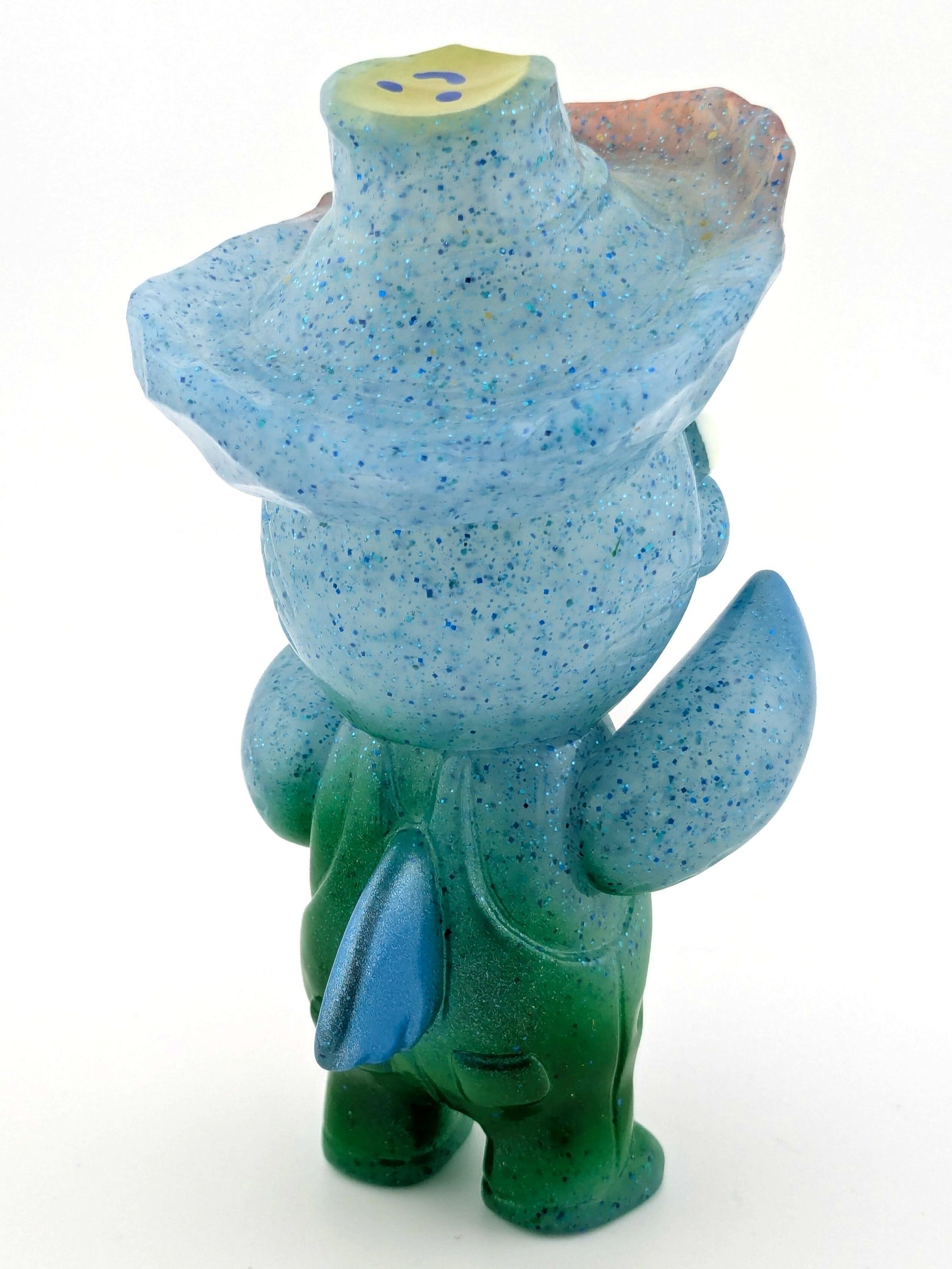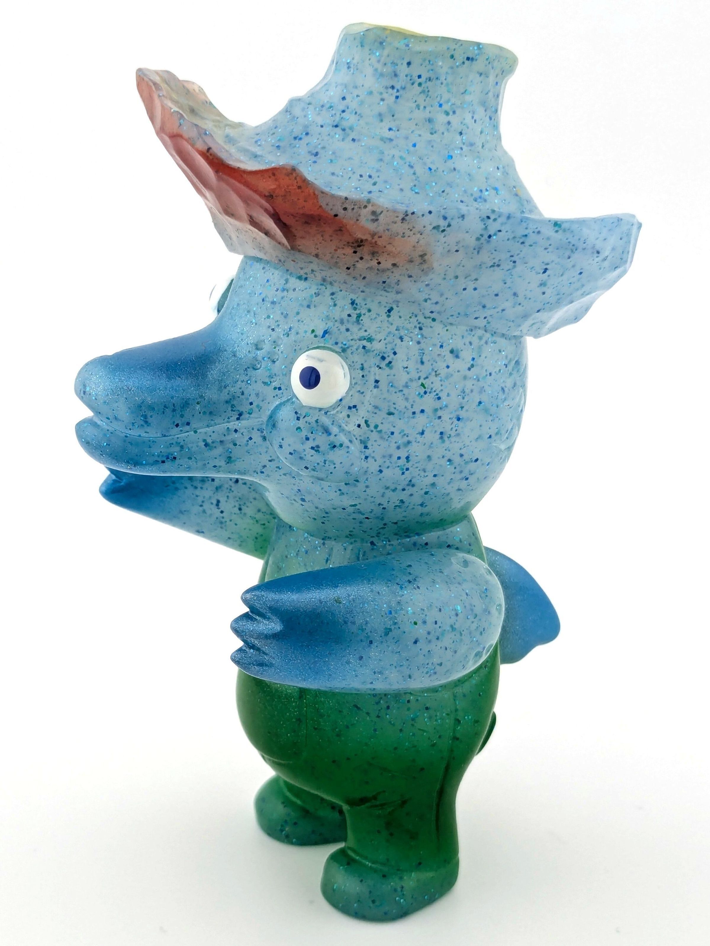 Sparkle blue vinyl with red, gold, blue, green, white, and dark blue paint