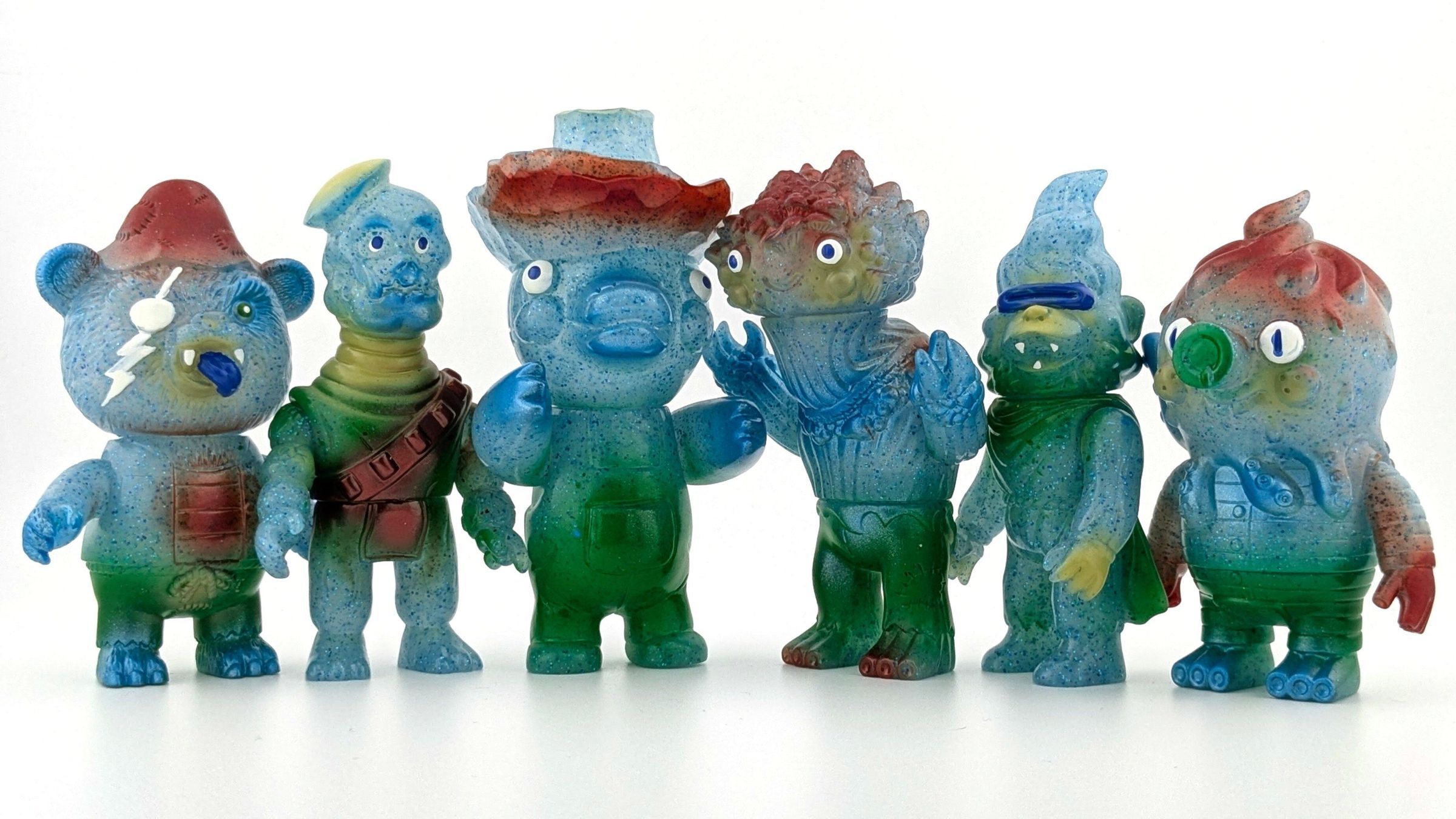 Set of six figures including Thunder Randall, Private Hooligan, Gilly, Morel Snacks, Terry King Bootlegger, and Pajamas Globby