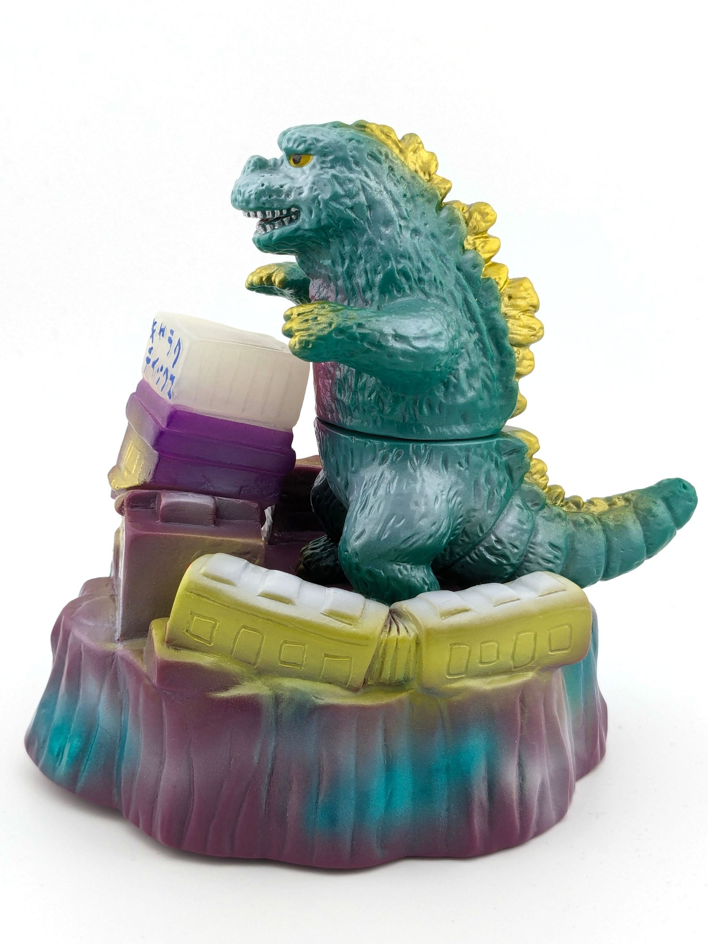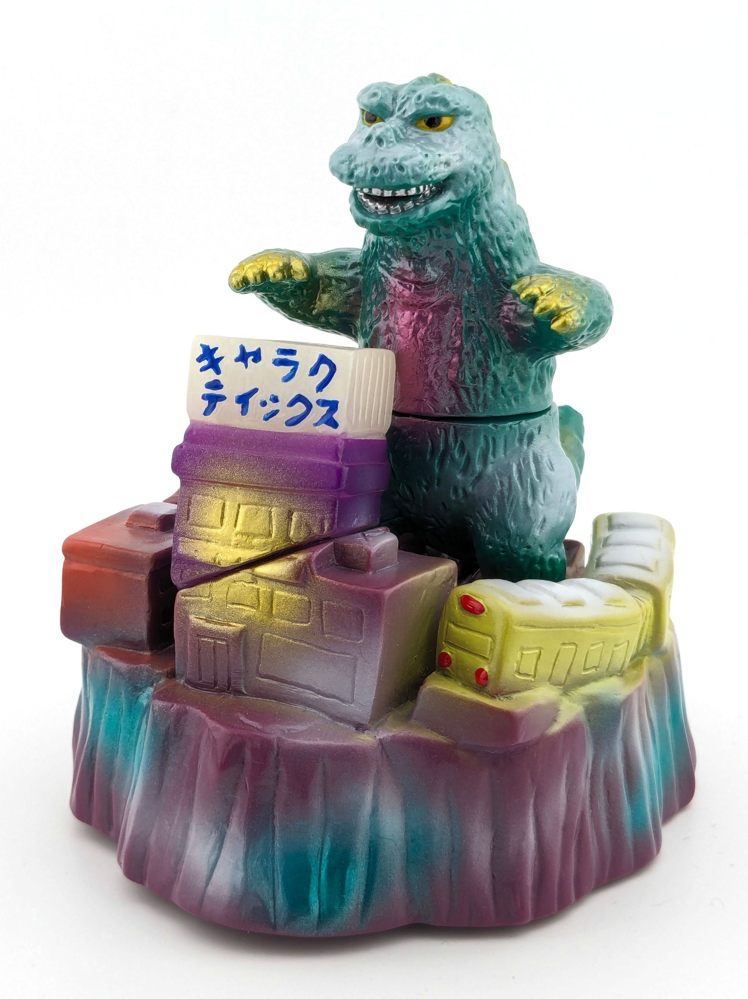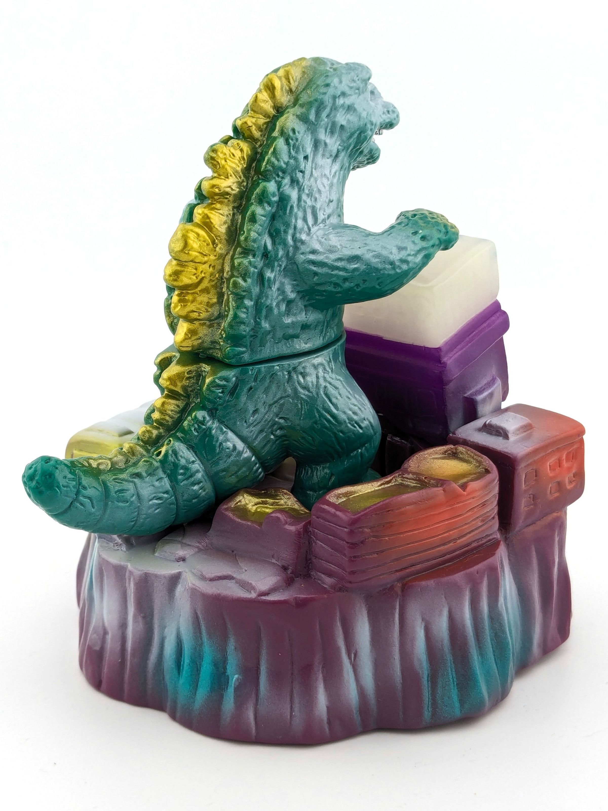 Godzilla: green vinyl with pink, white, and gold paint; nightlife diorama: purple vinyl with green, white, orange, and light green paintMade/Created