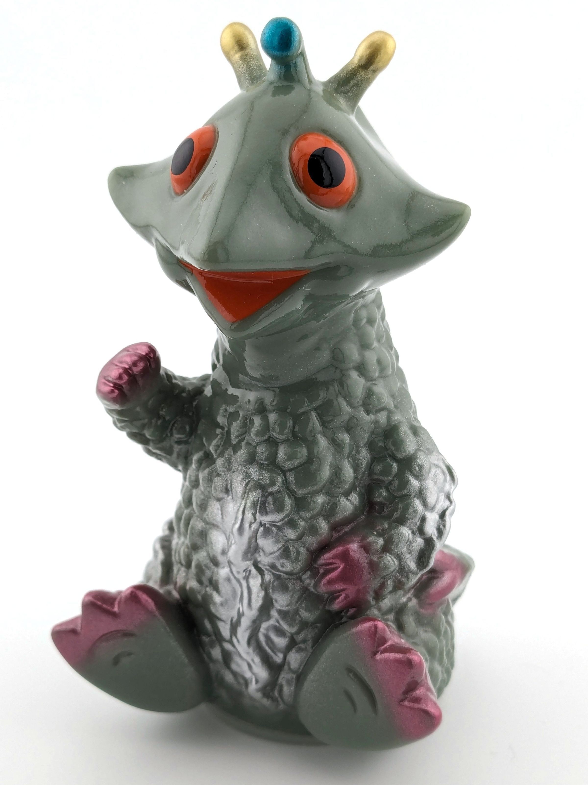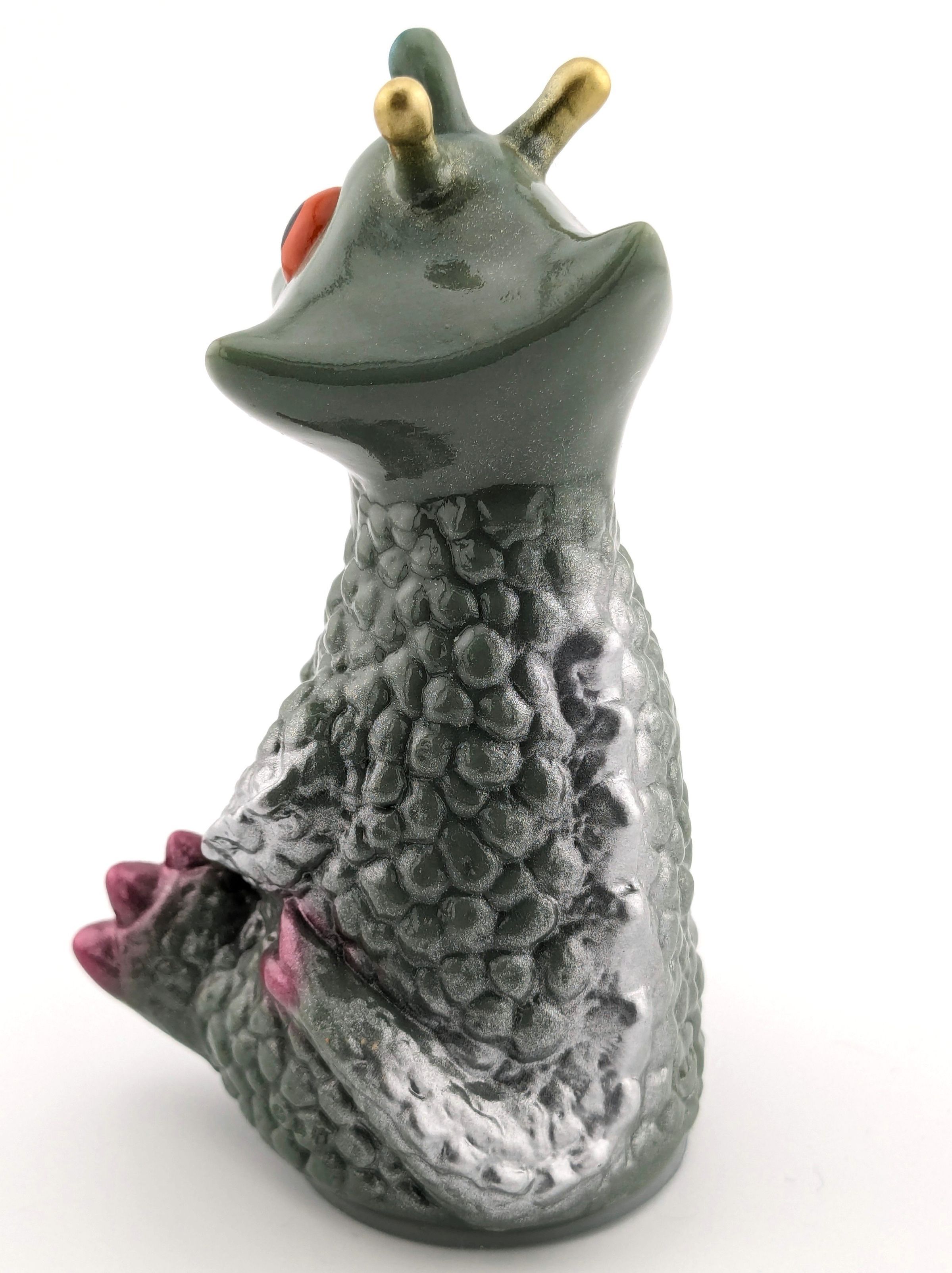 Olive vinyl with pink, silver, gold, and red paintMade/Created