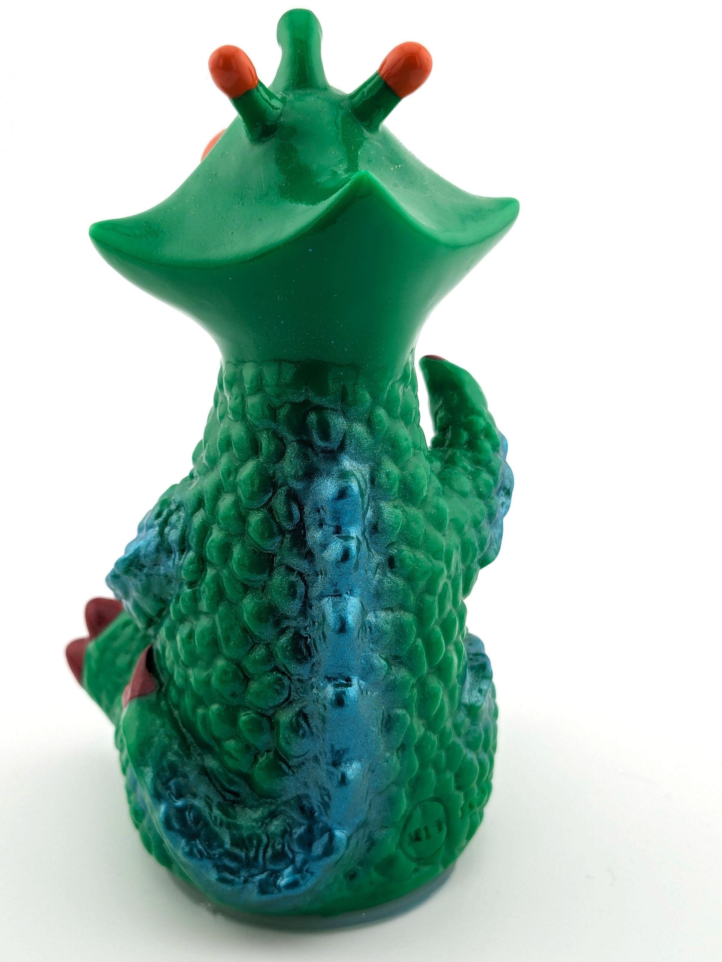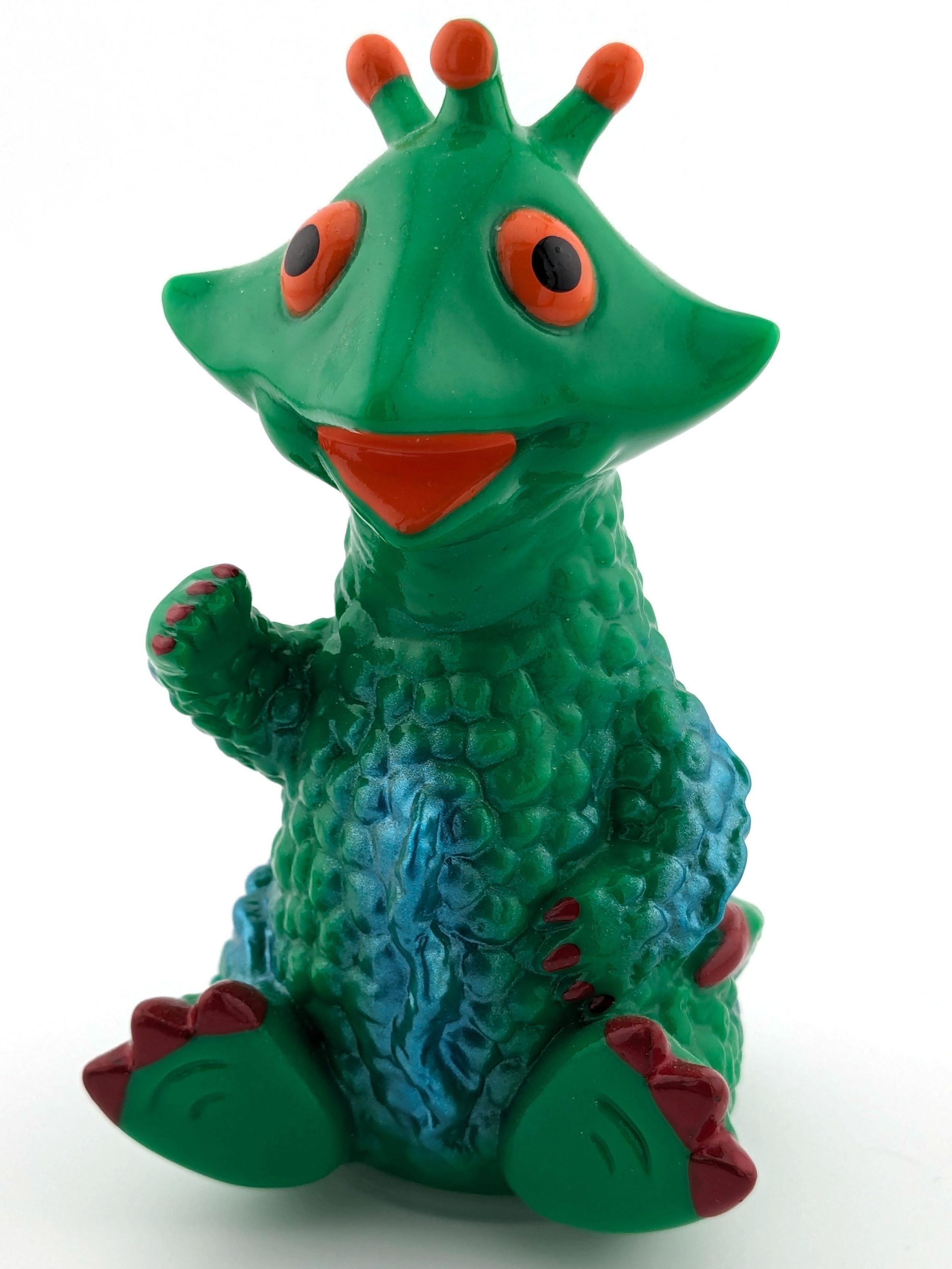 Green vinyl with metallic blue paint and orange detailsMade/Created