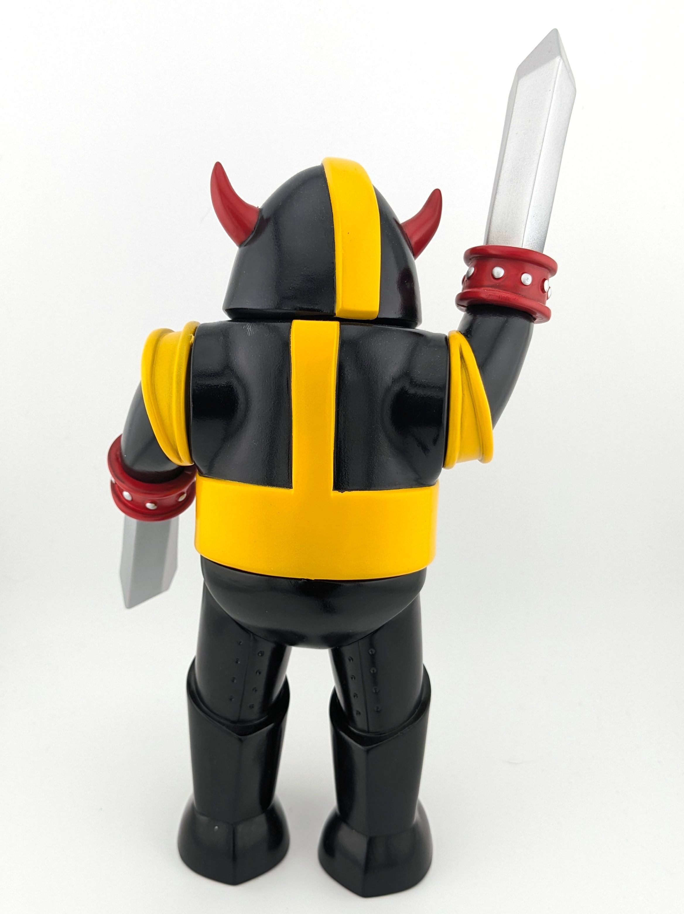 Black vinyl with silver, red, and yellow paint. With decal.