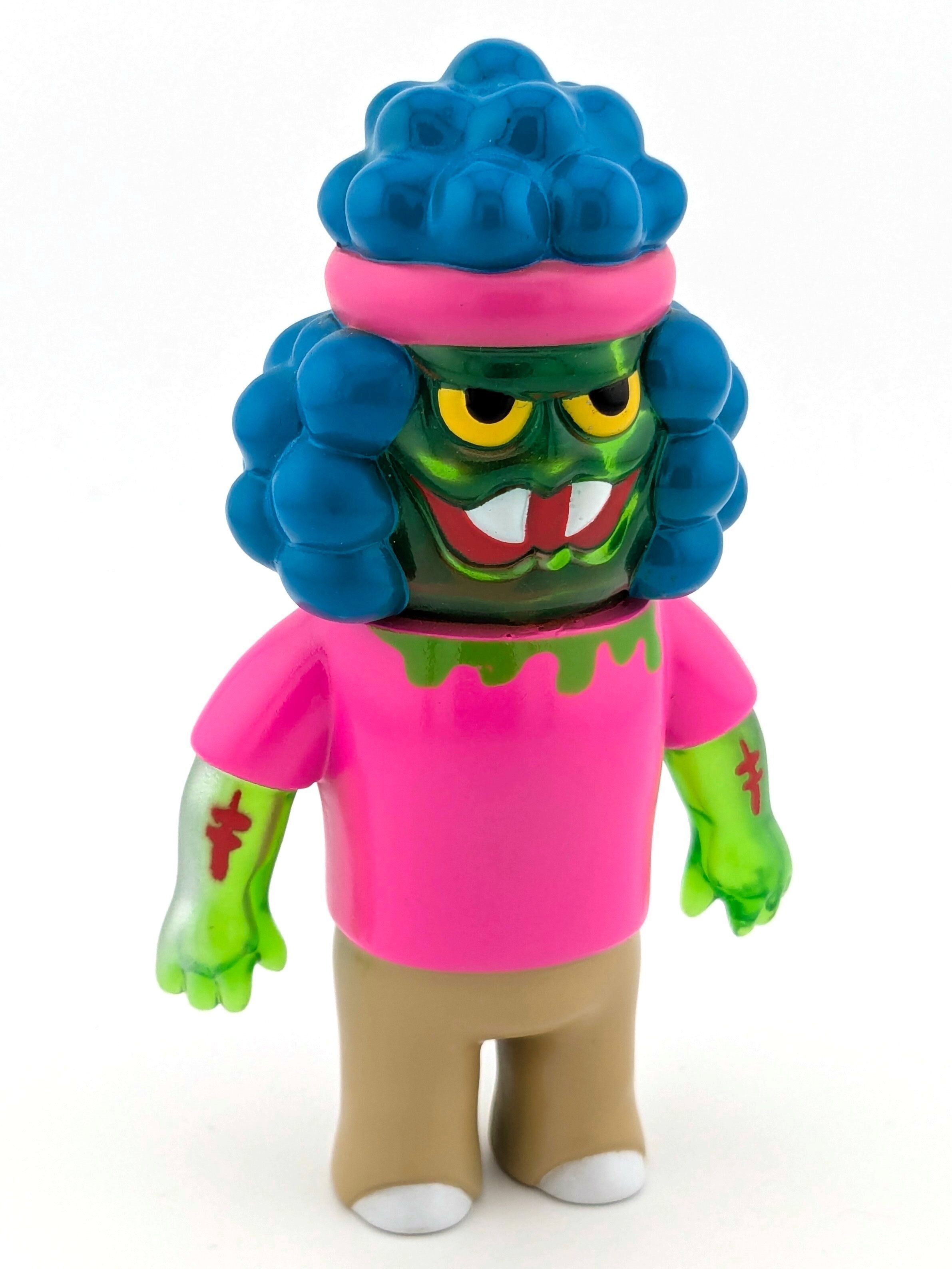 Trans green vinyl with pink, blue, tan, and green paint