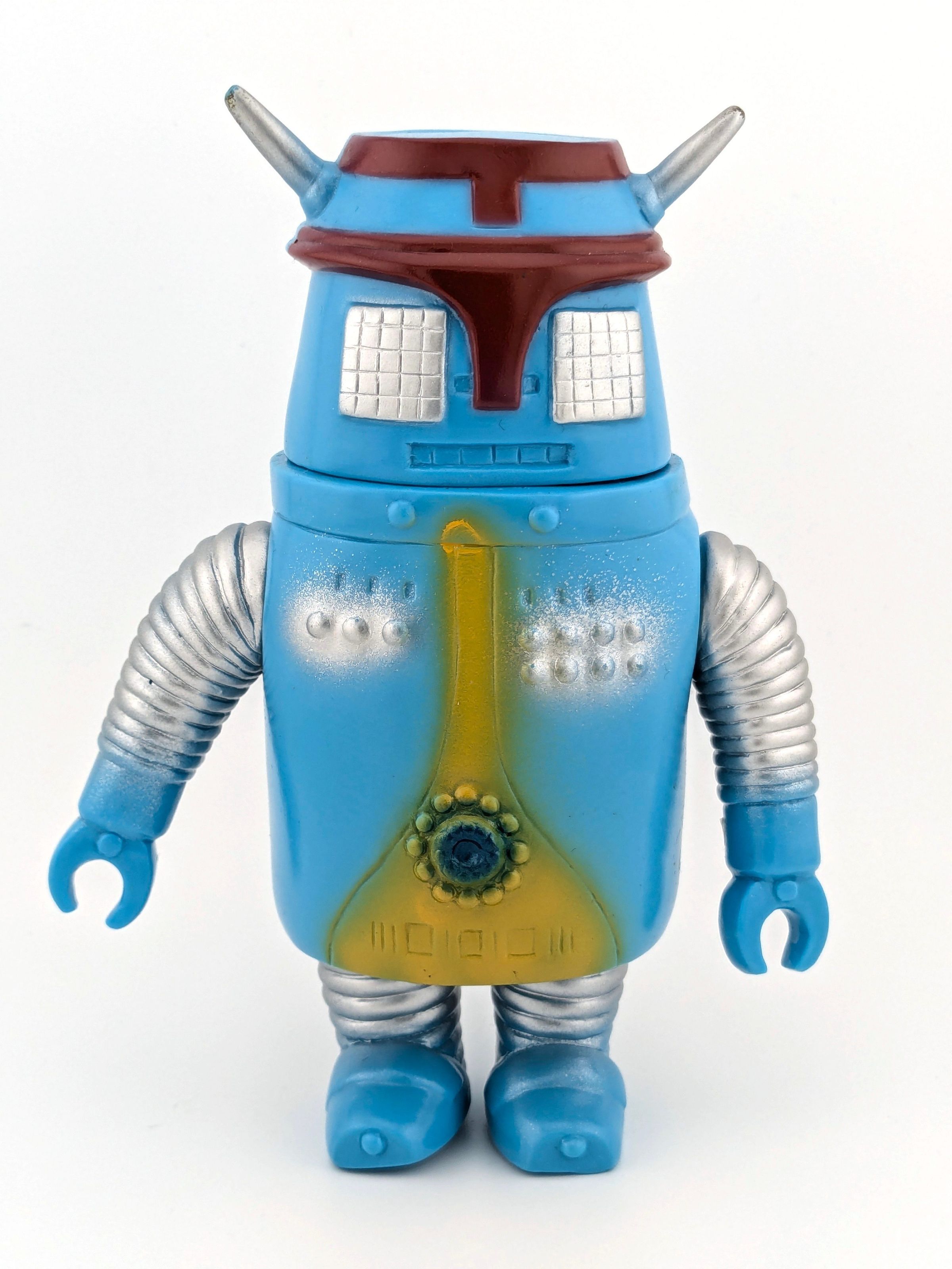 Light blue vinyl with silver, yellow, and red paintMade/Created