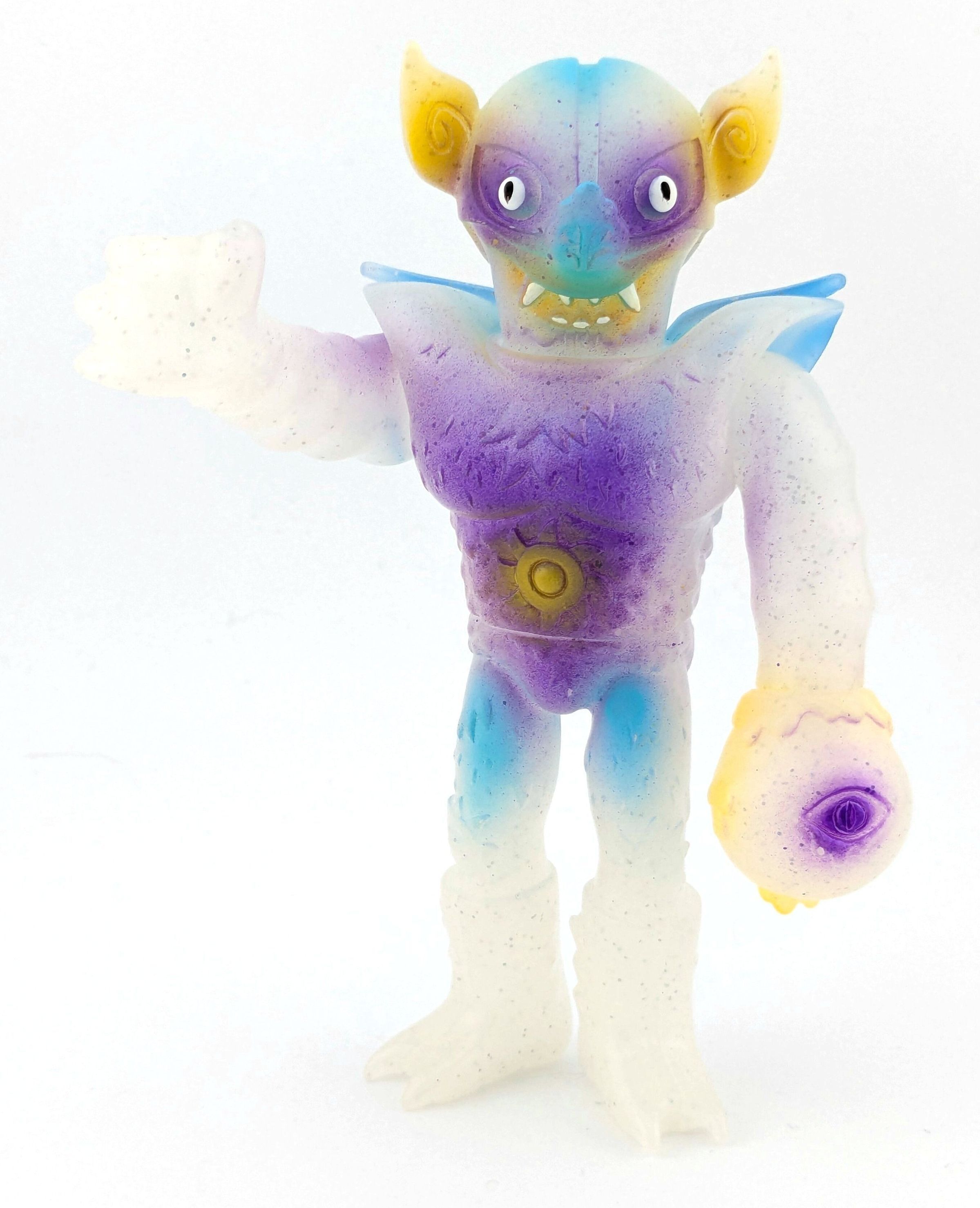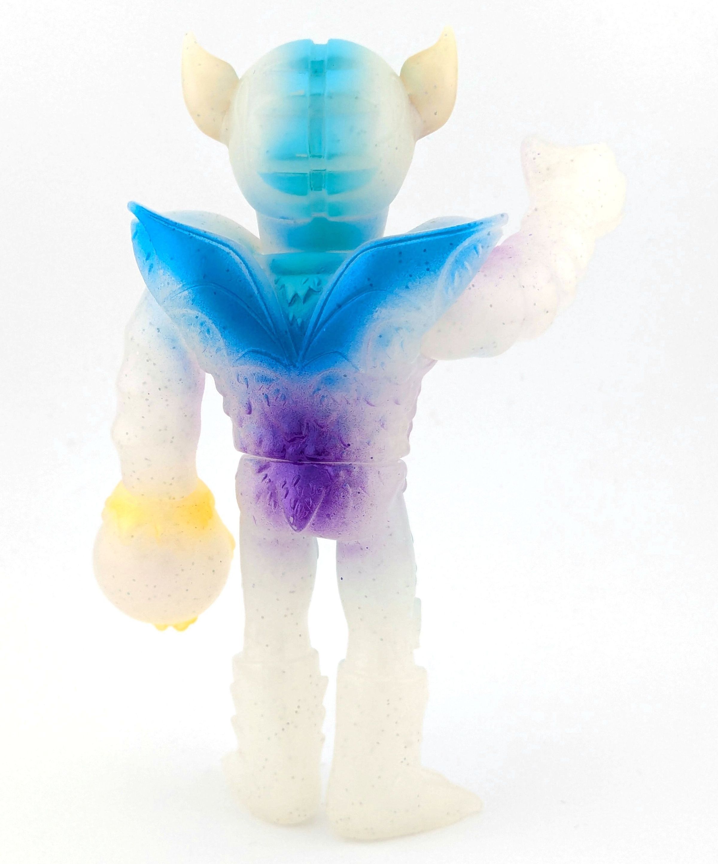 Milky white lame vinyl with purple, blue, and yellow paint
