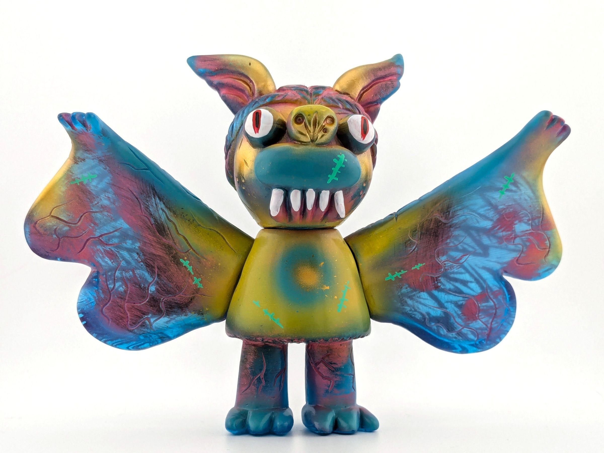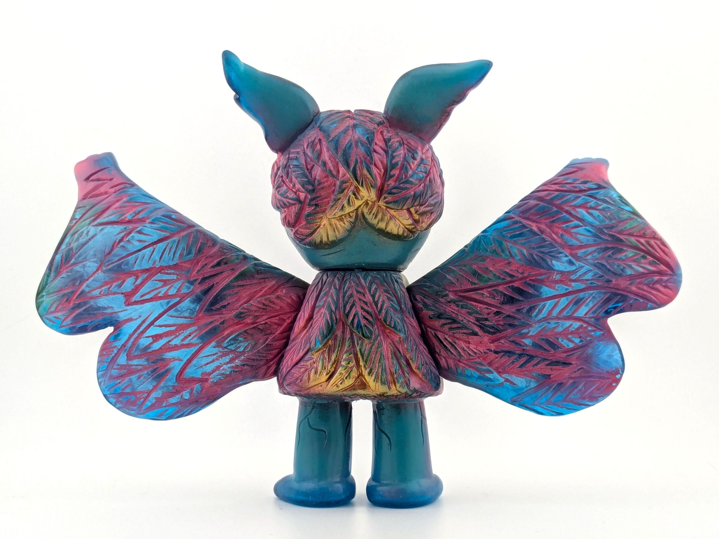Trans blue vinyl with pink, yellow, gold, turquoise, light blue, white, black, and red paint