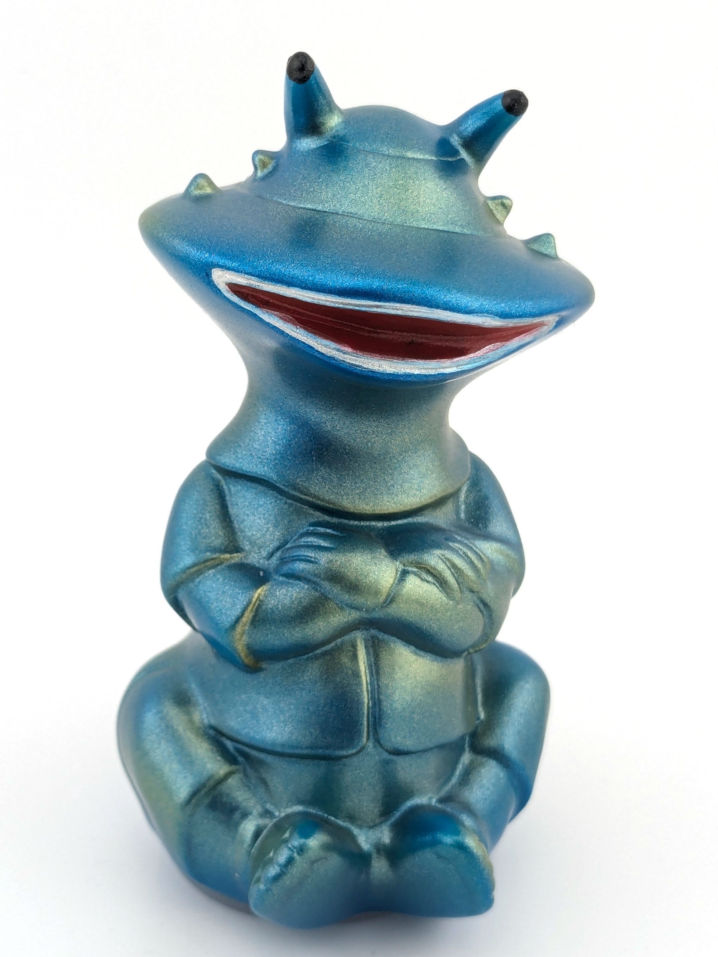 Flesh vinyl overpainted with blue, red, silver, black, and metallic green paintMade/Created