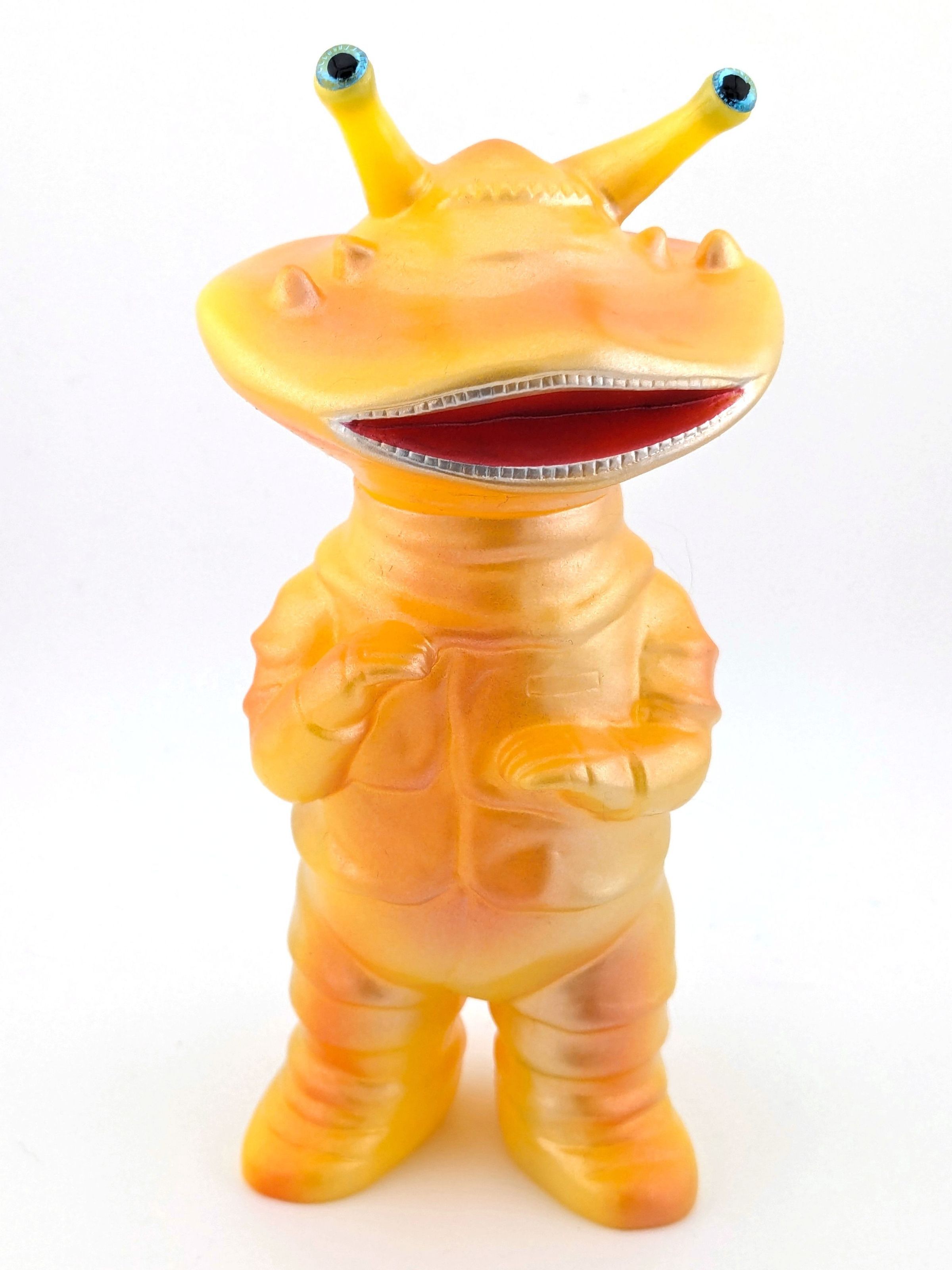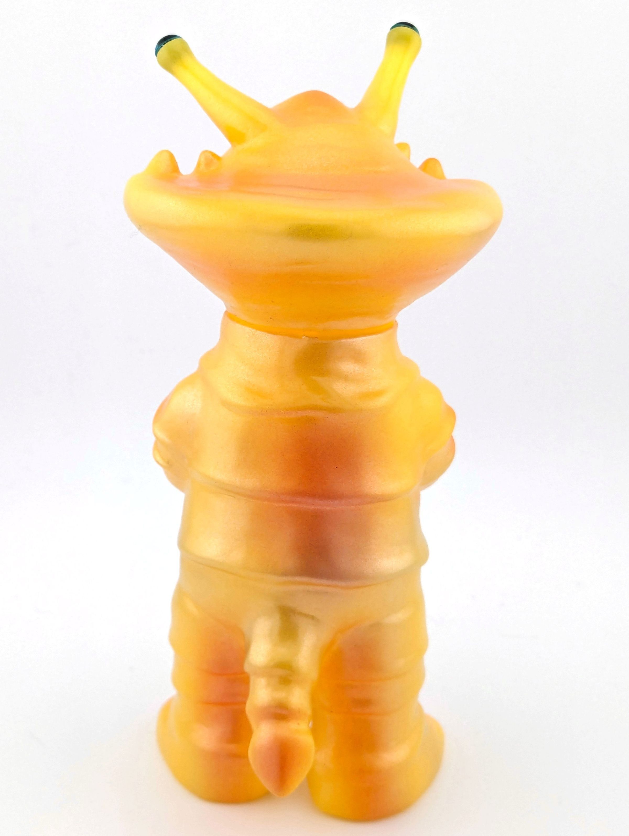 Yellow vinyl with orange, red, and silver paint