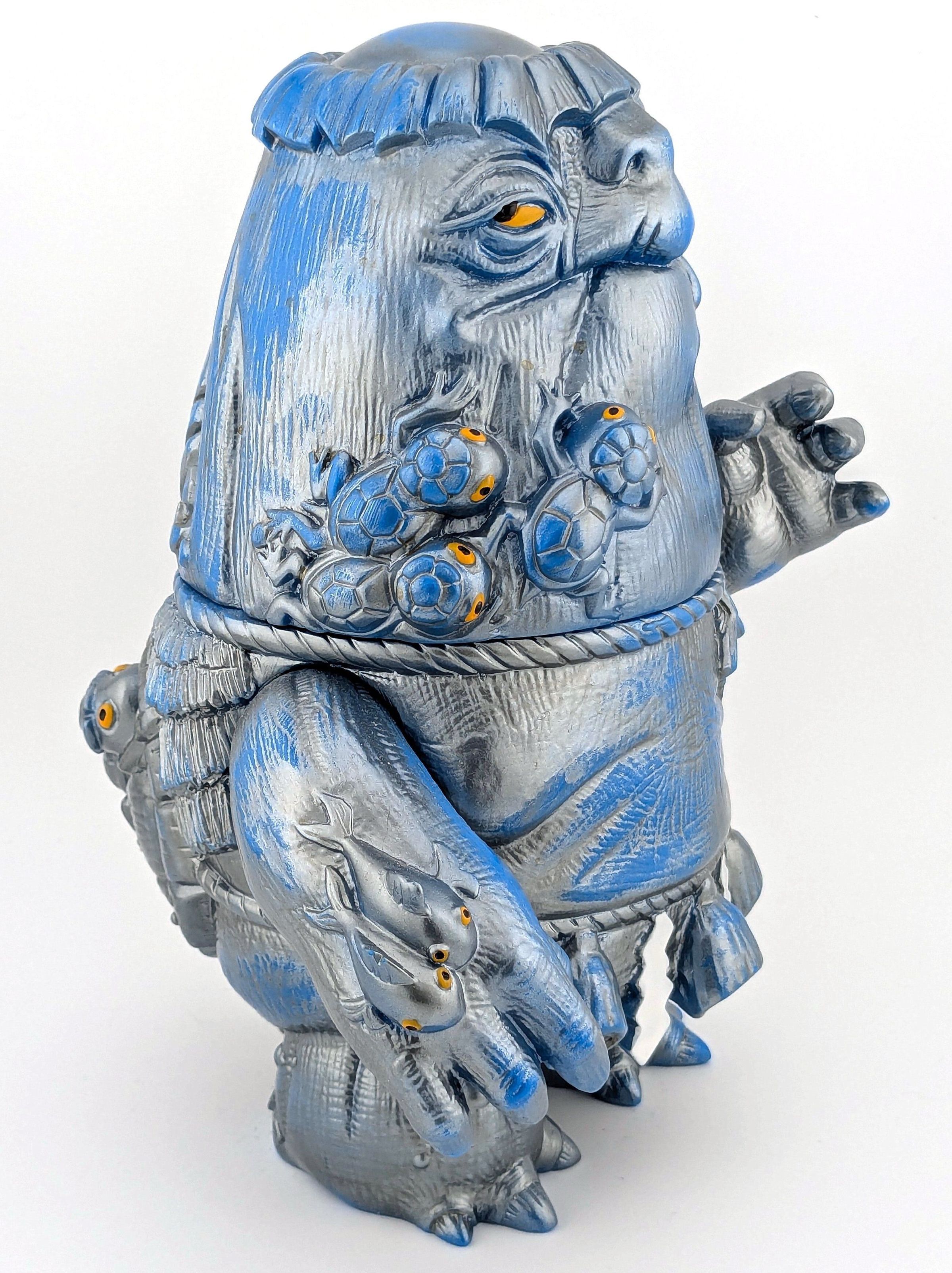 Blue vinyl with silver, yellow, black and white paintMade/Created