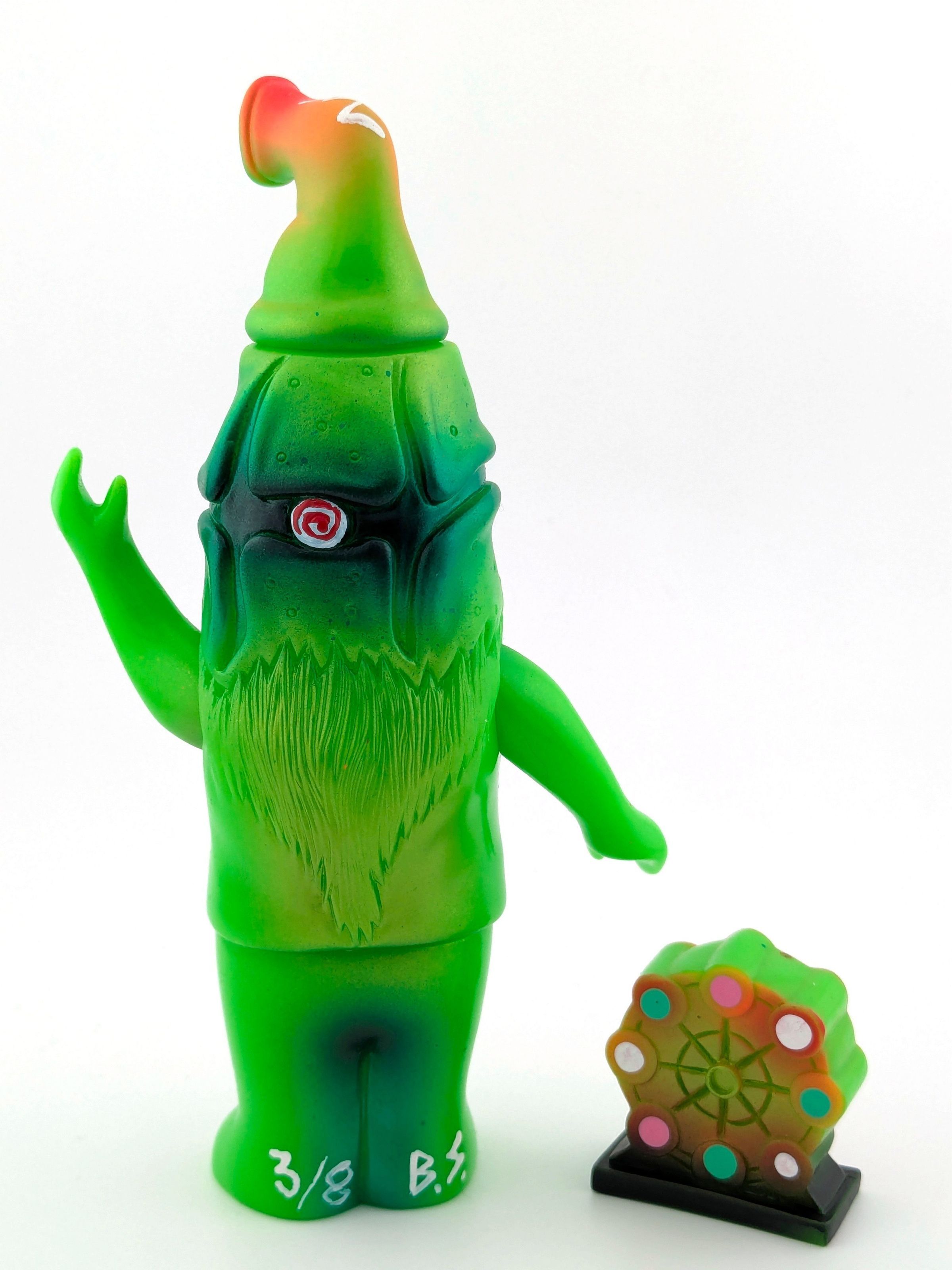 Lime green vinyl with pink, orange, white, red, black, gold, and dark green paint