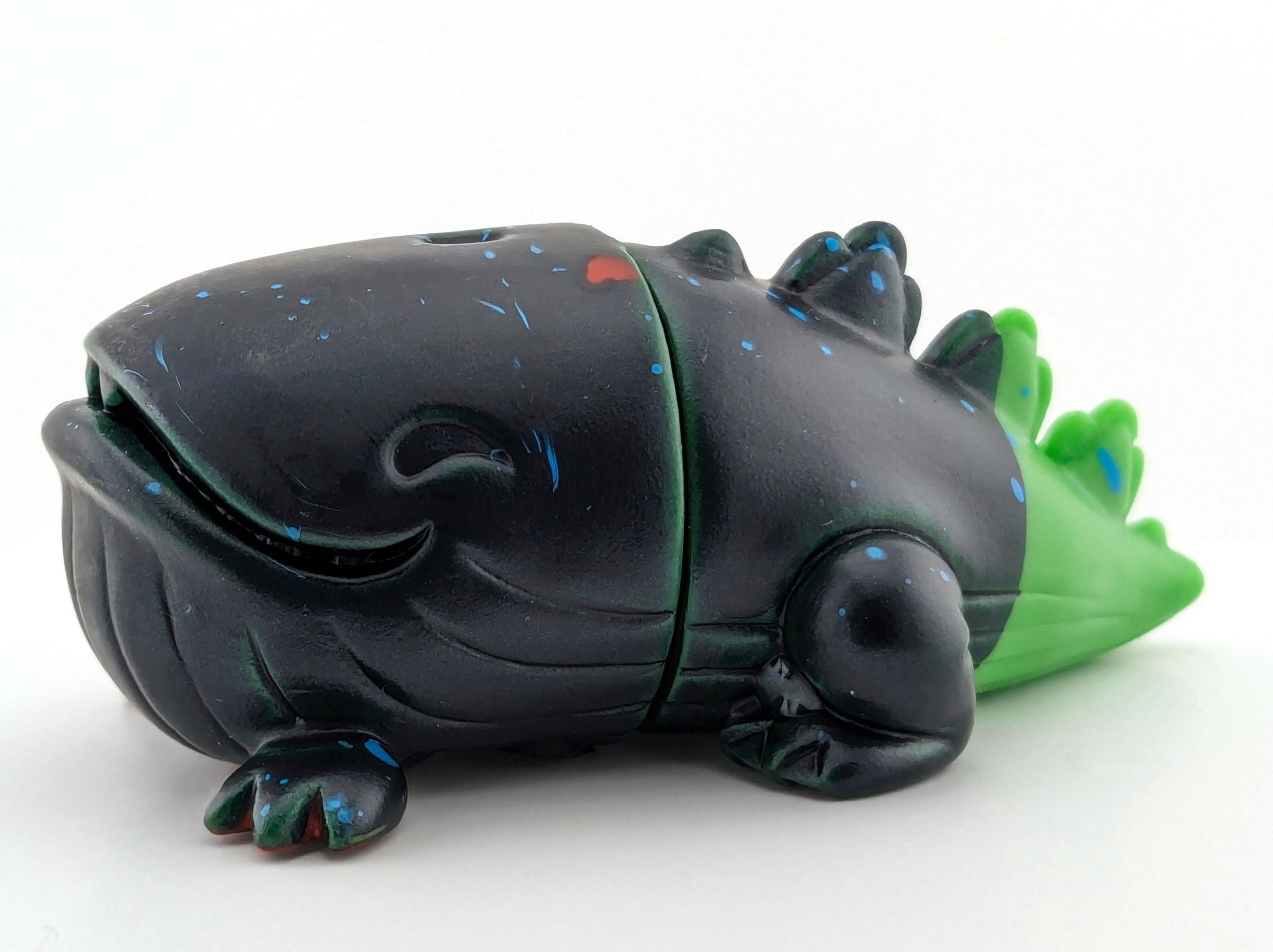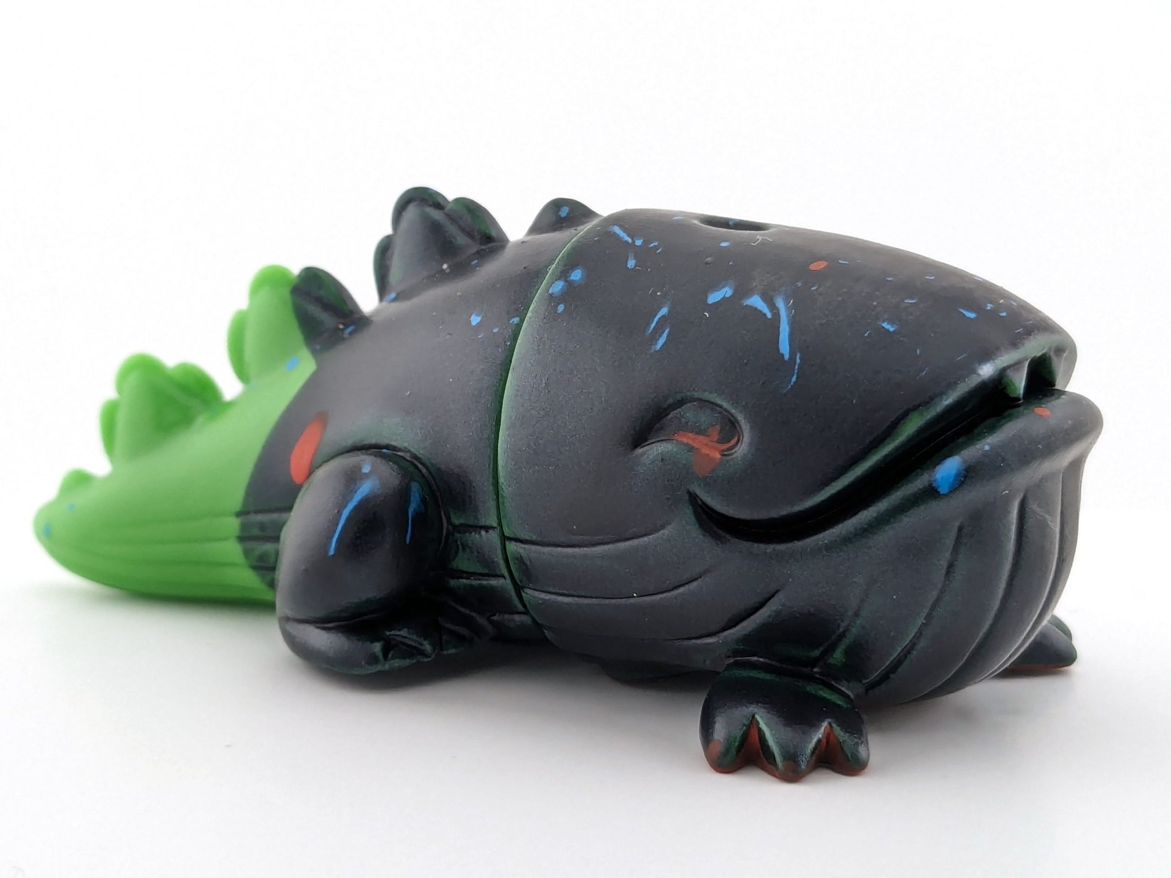 Green vinyl with black, red, and blue paint