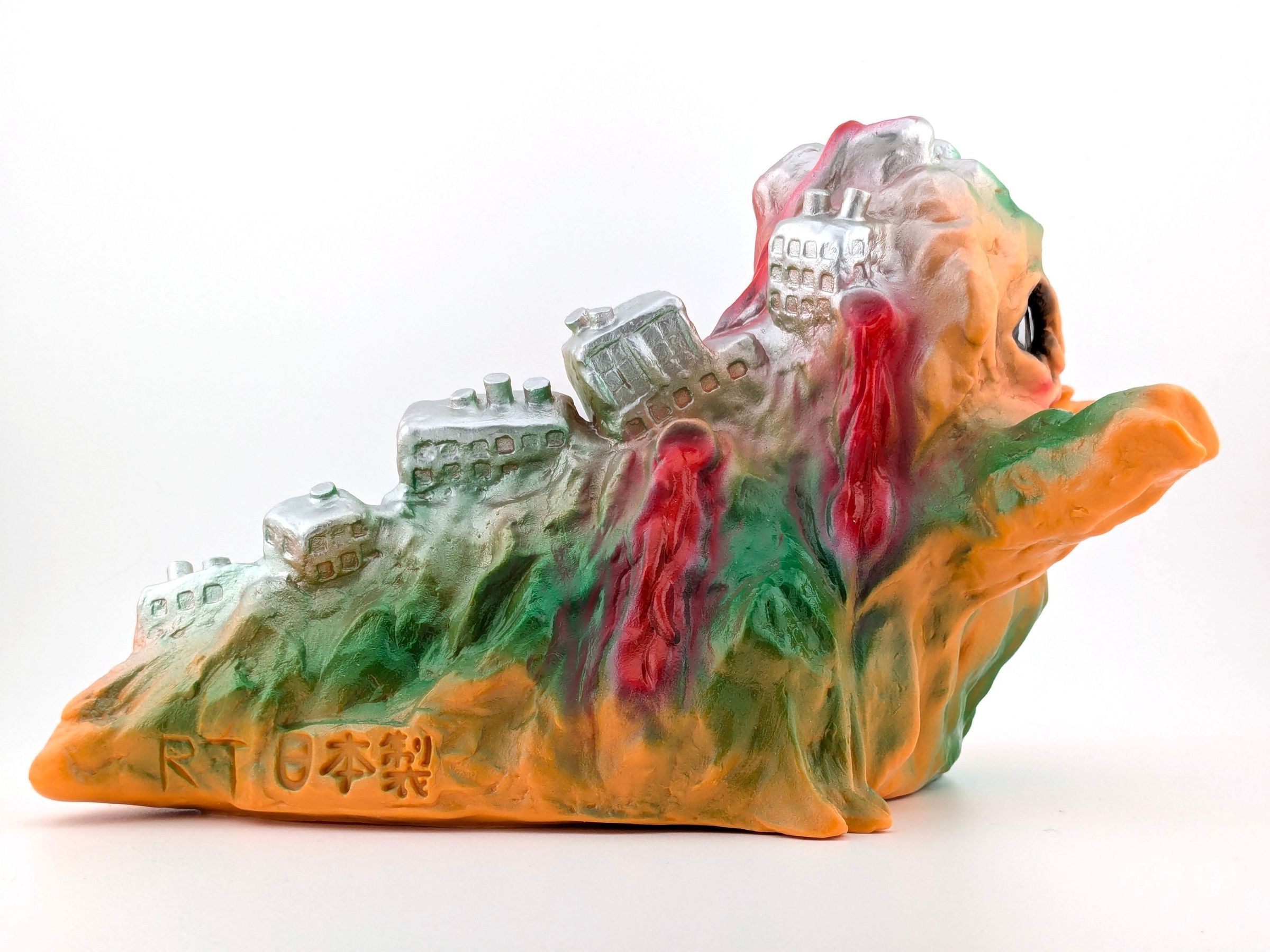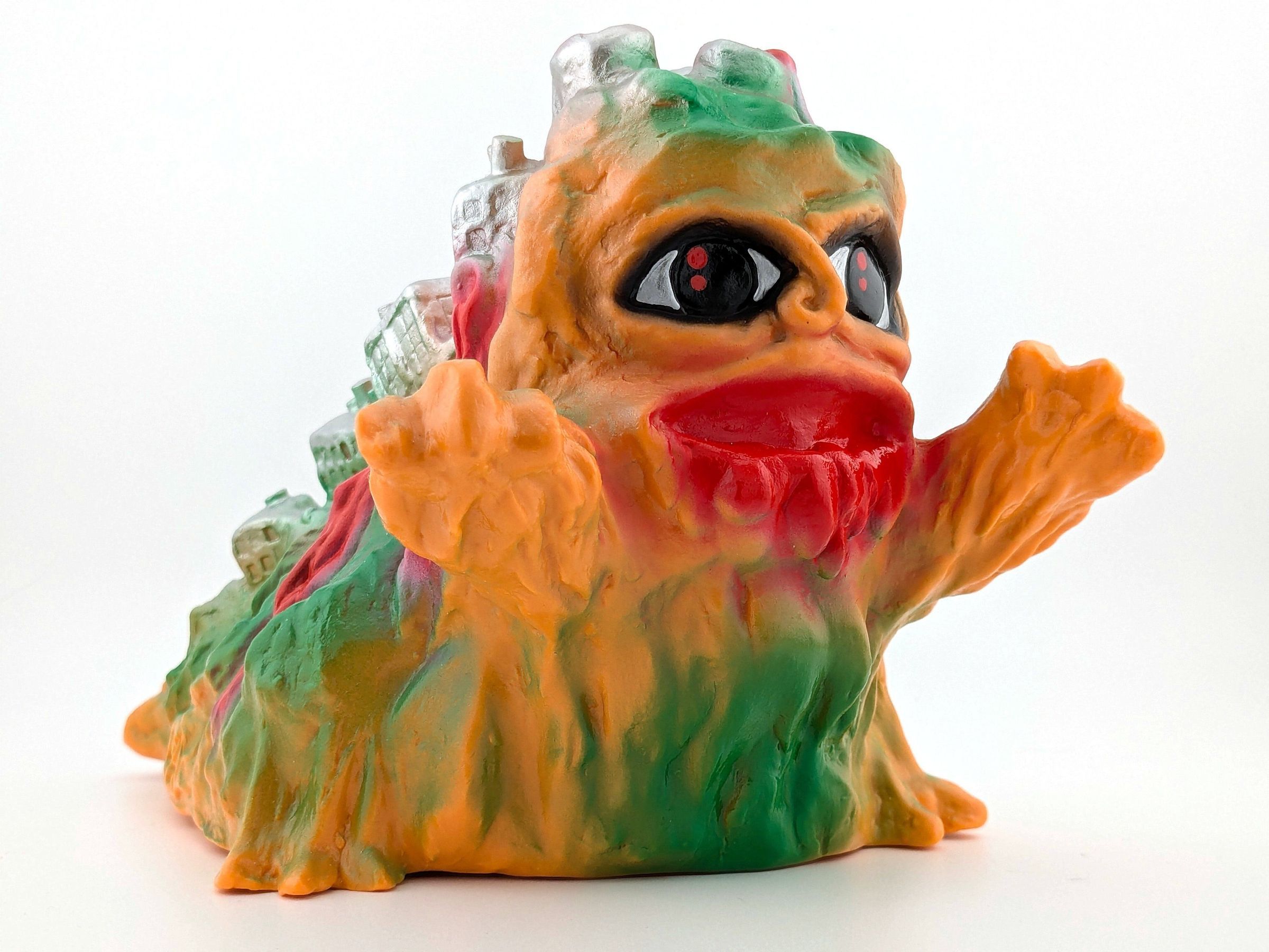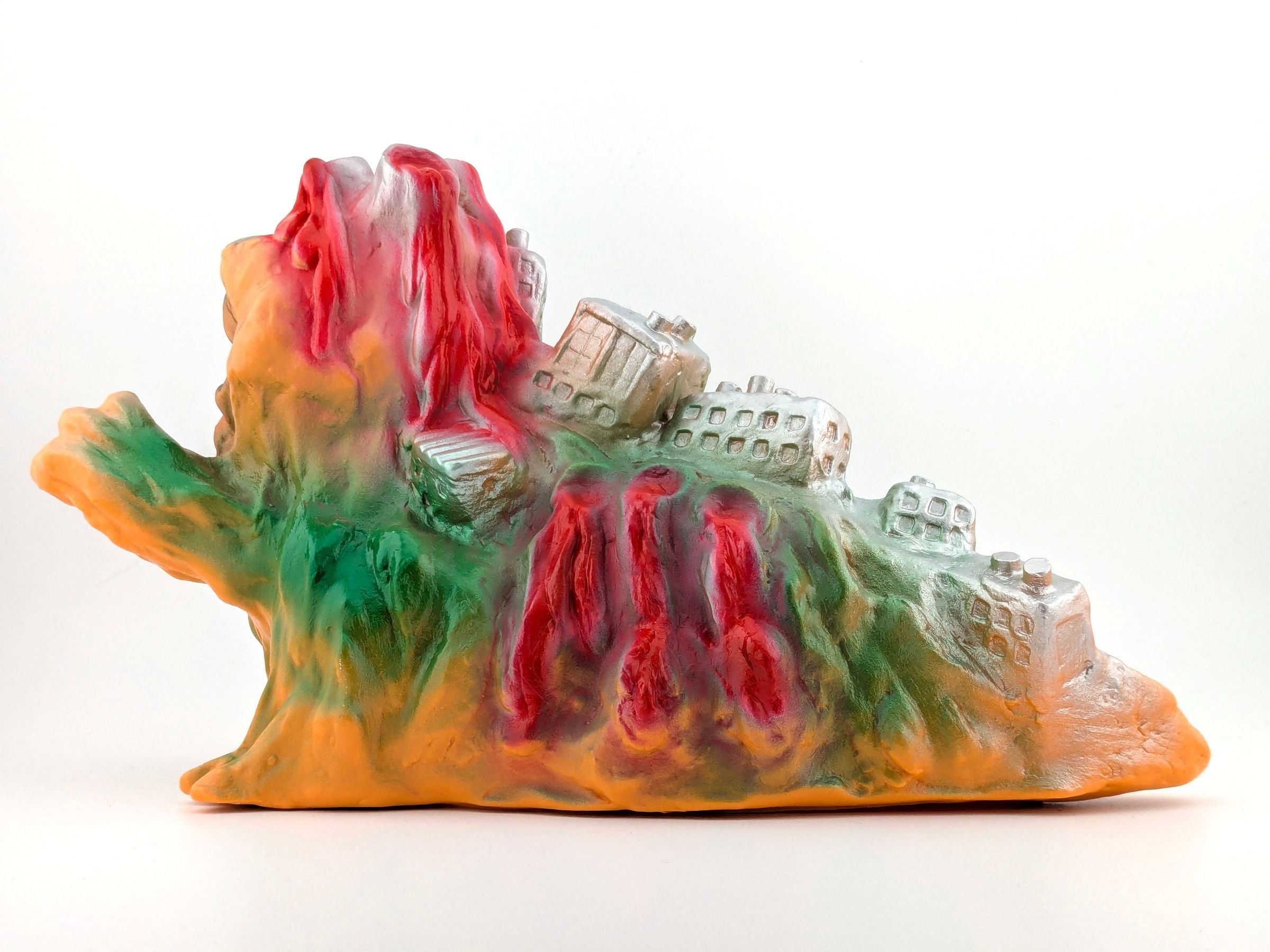 Orange squishy vinyl with red, green, silver, and black paintMade/Created