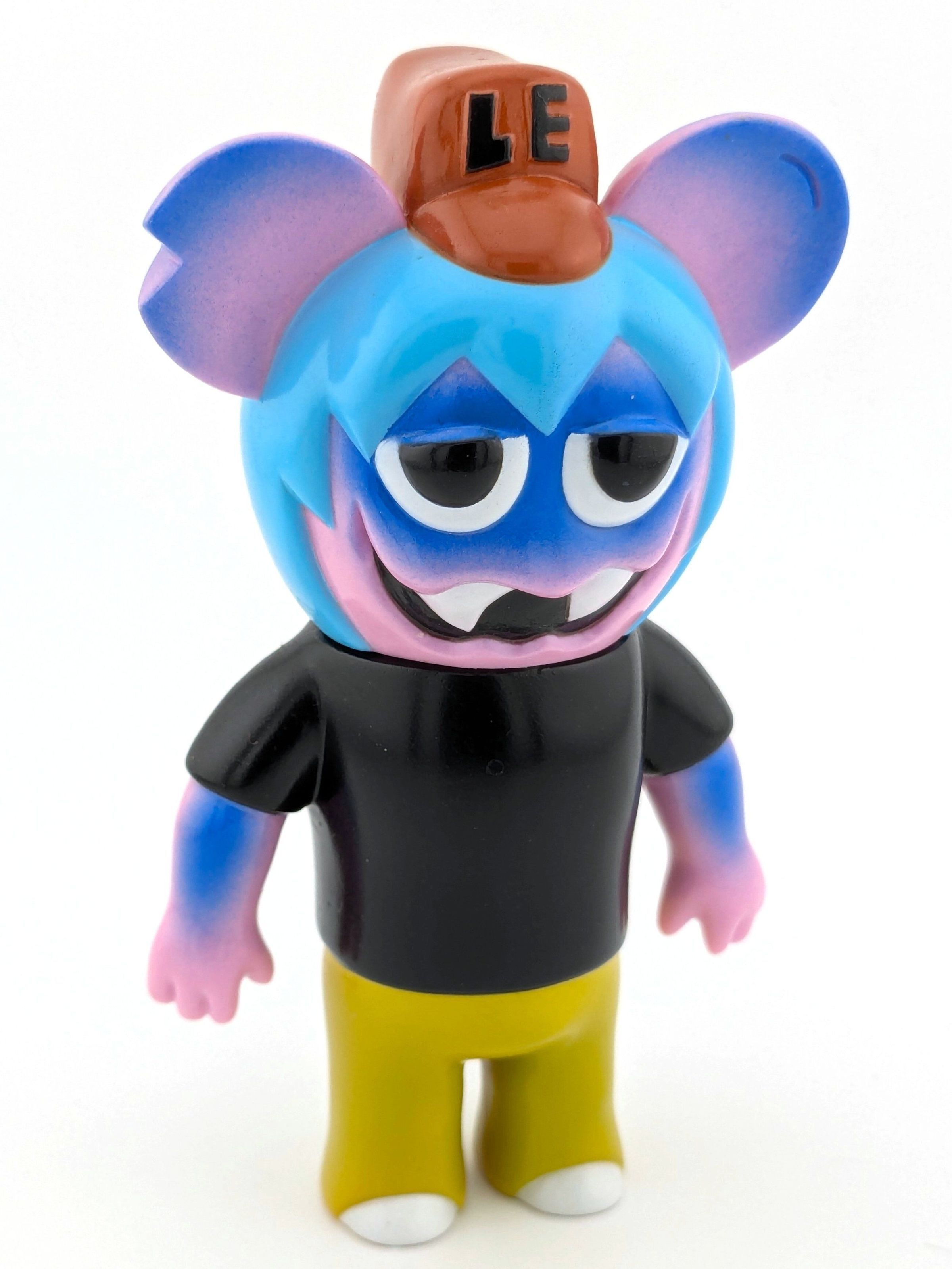 Fleshy brown color vinyl with blue, brown, black and more paint.