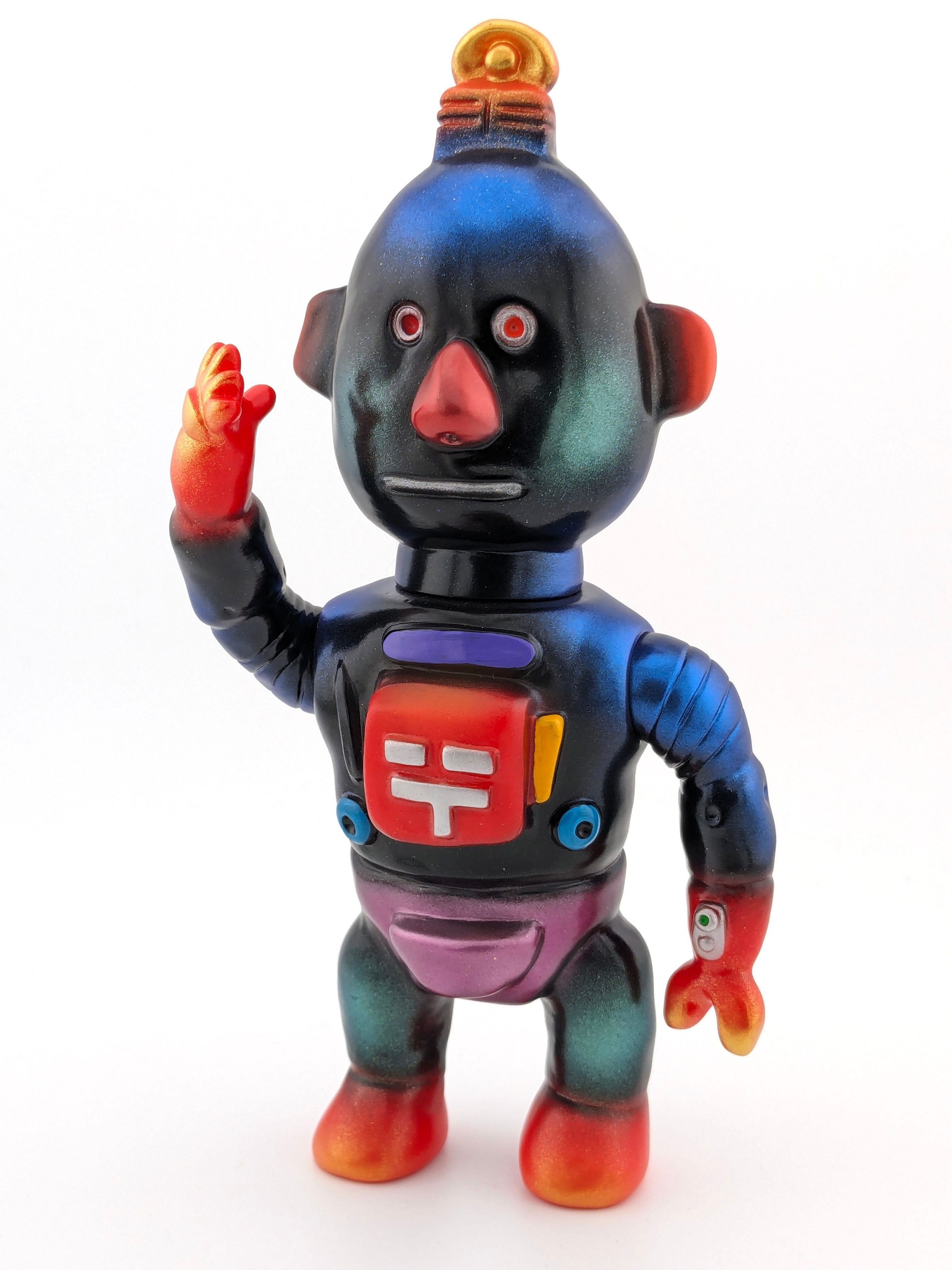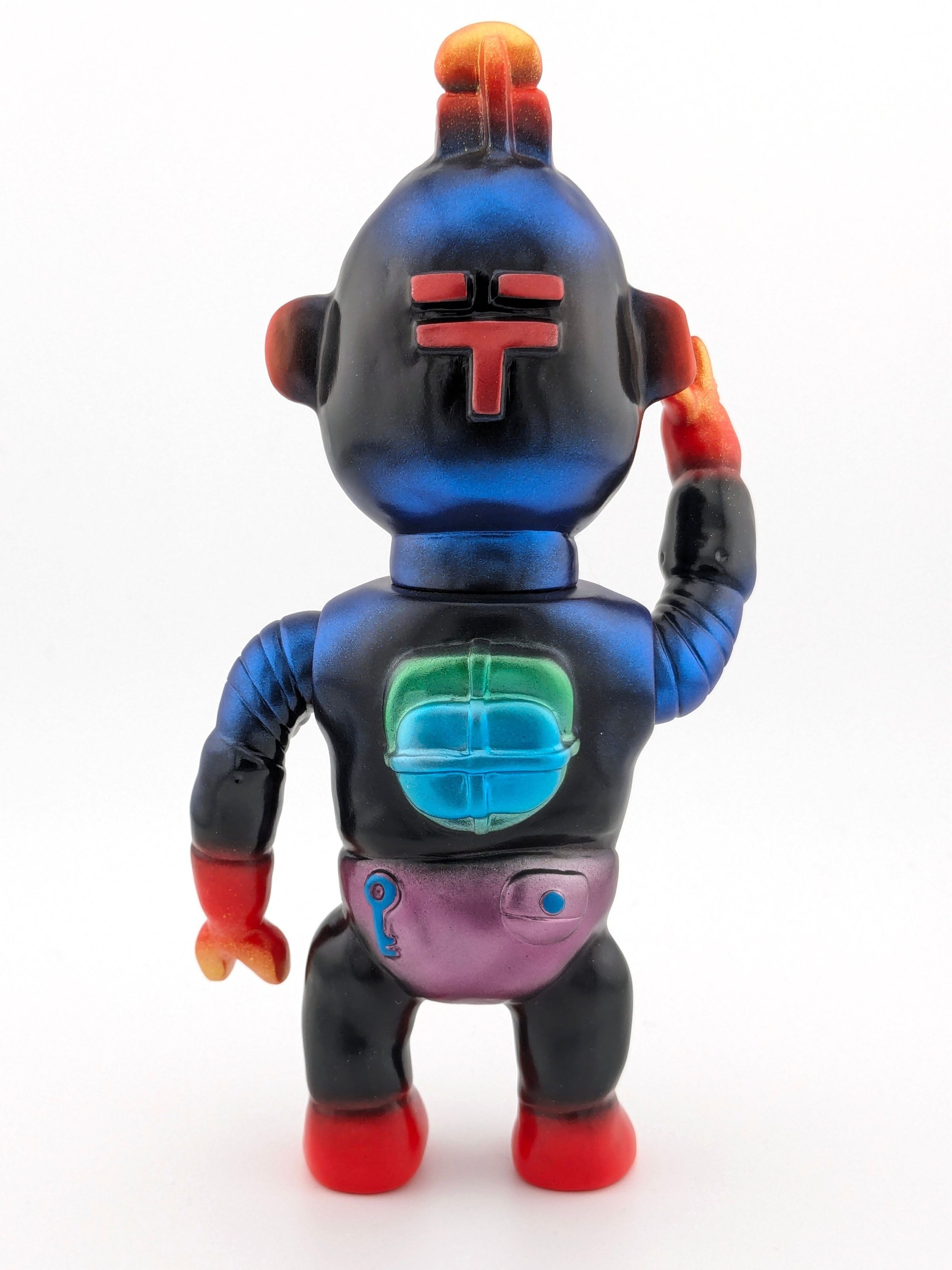 Red vinyl with gold, silver, black, blue, green, purple, and yellow paint