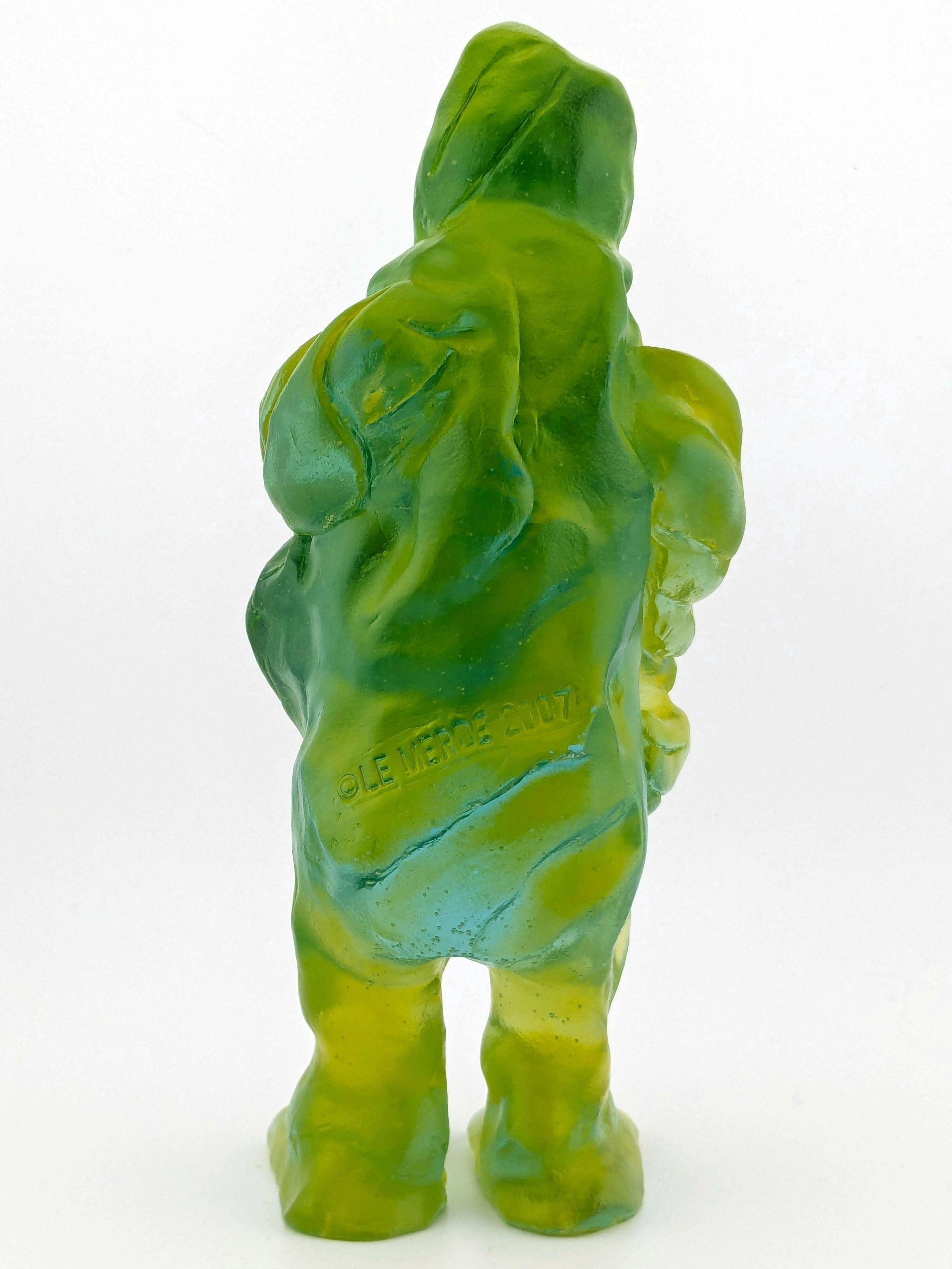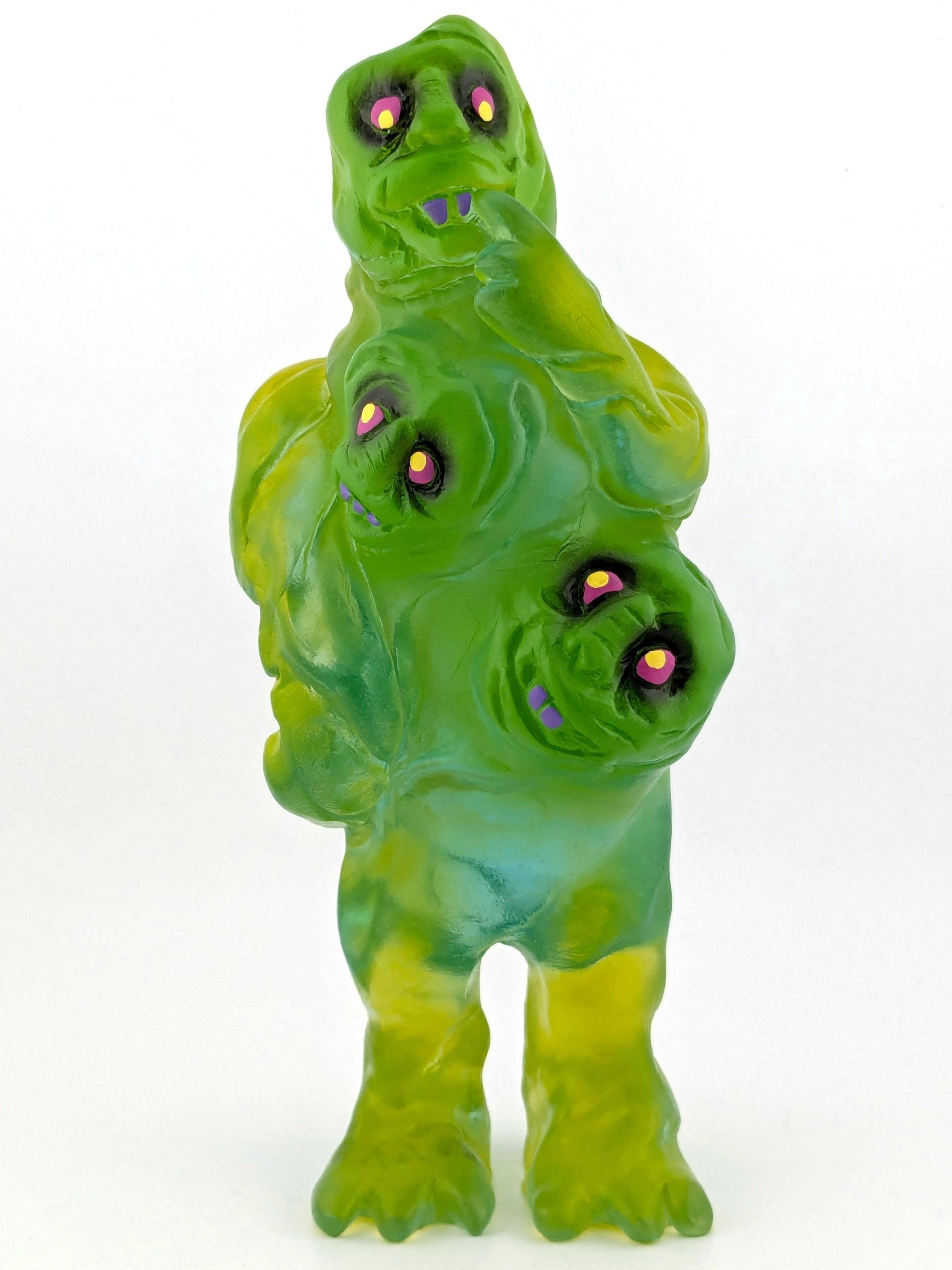 Trans green resin with green, black, pink, and yellow paint