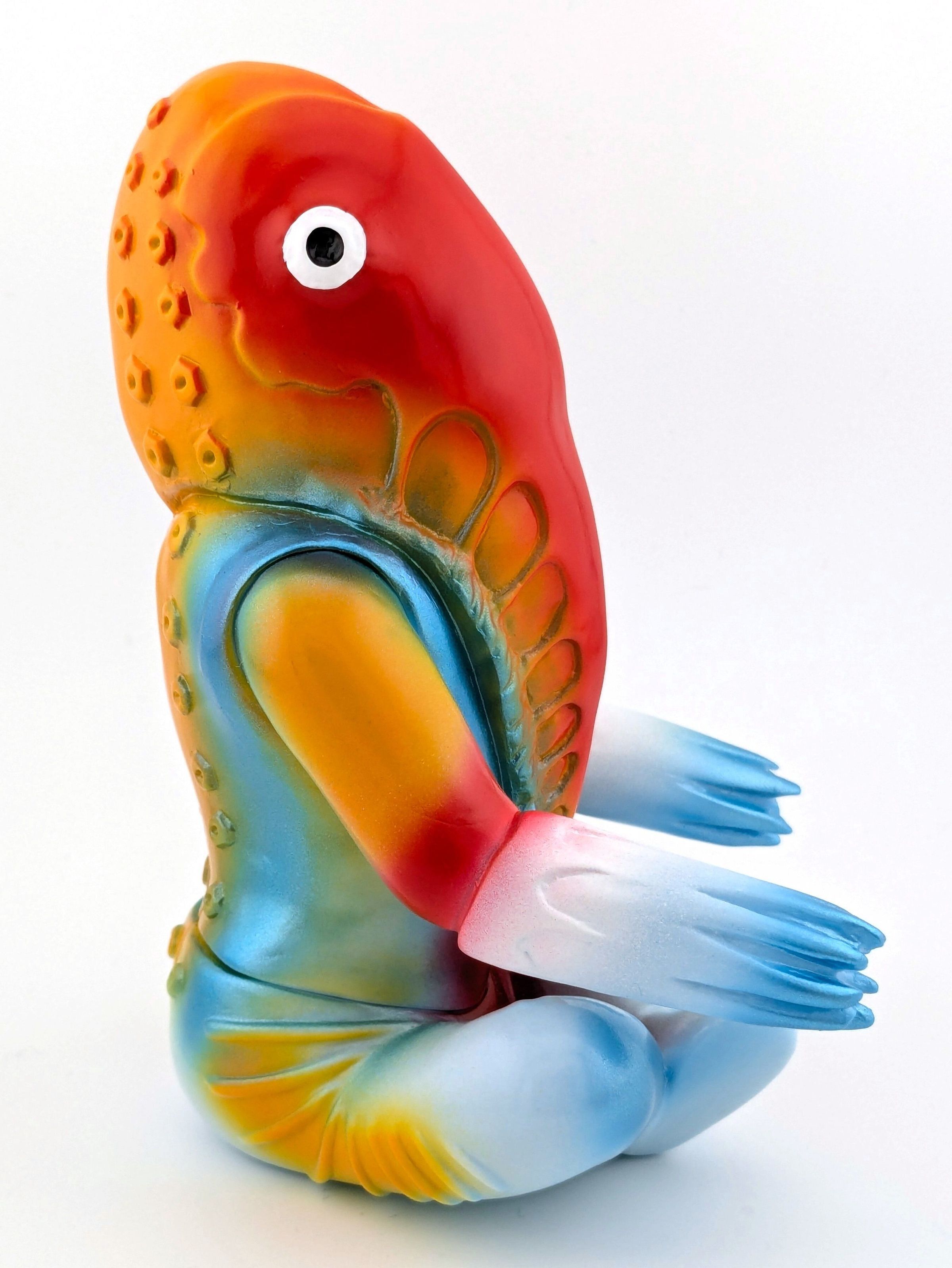 Pale blue vinyl with red, yellow, white, and metallic blue paintMade/Created