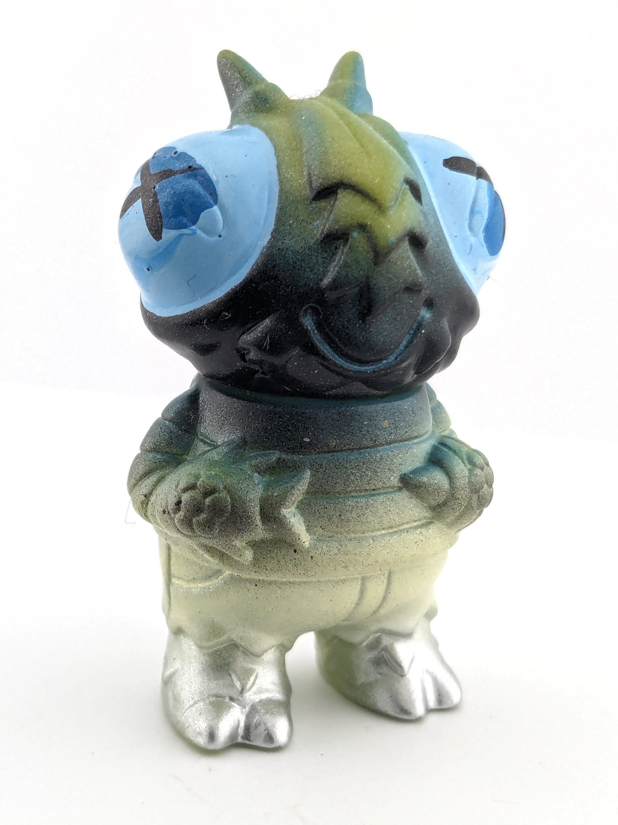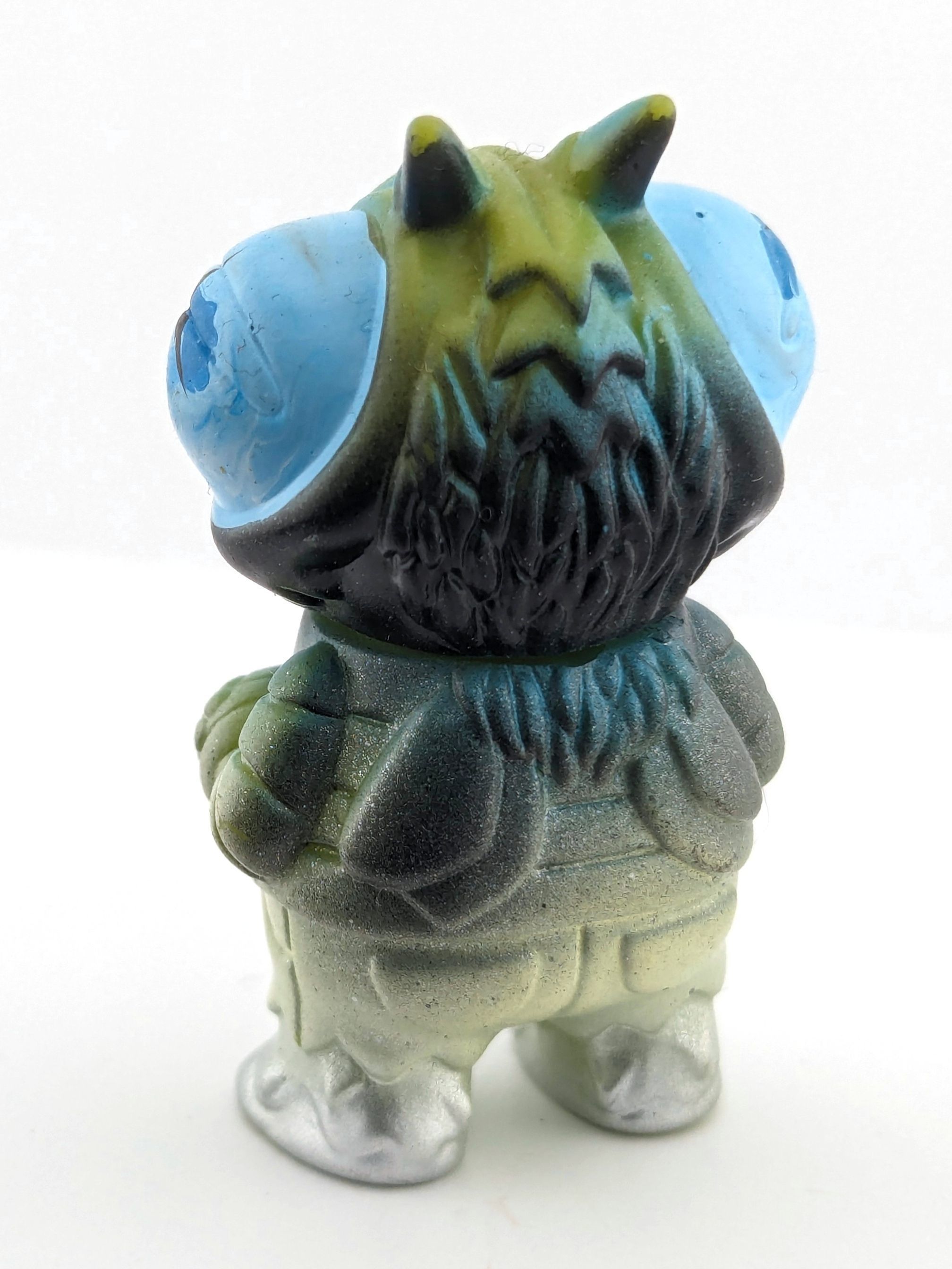 Green vinyl with light blue, blue, black, white, and silver paint