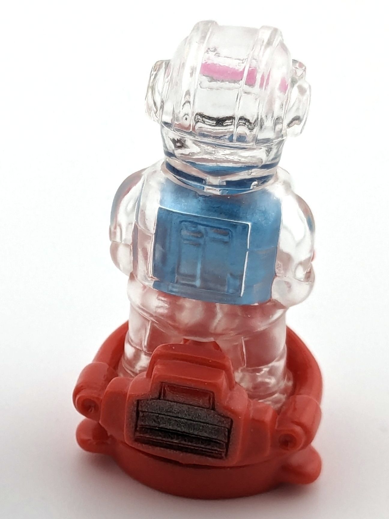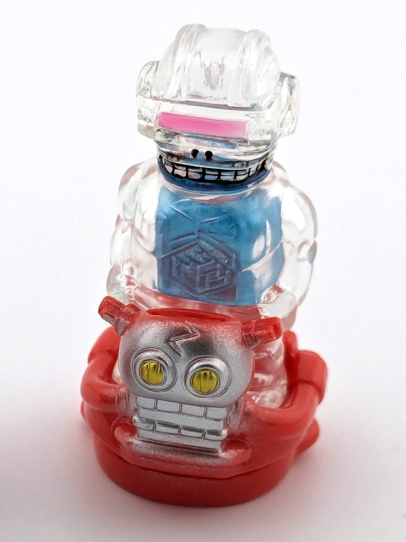Clear and red vinyl with metallic blue, silver, red, and black paint