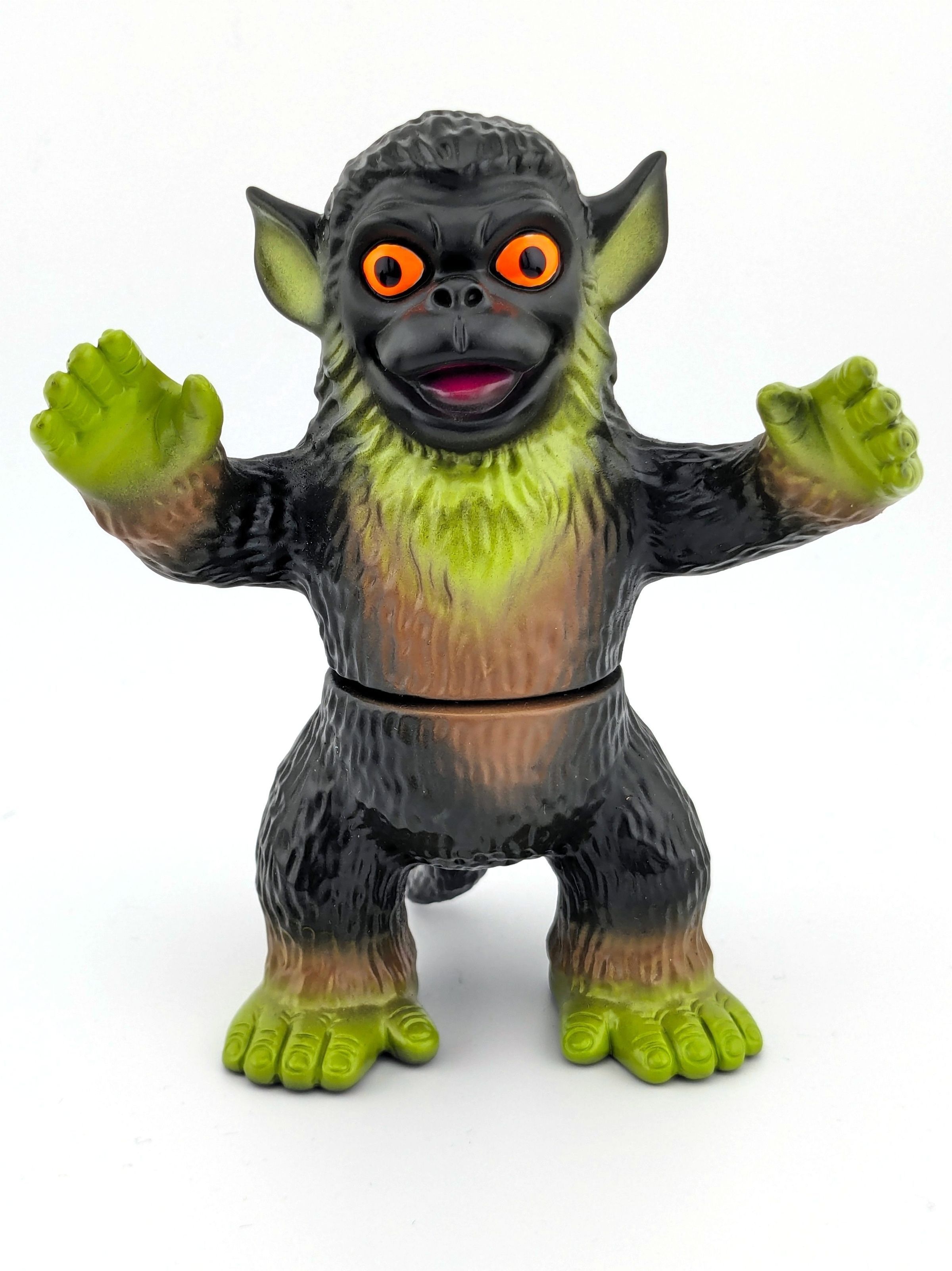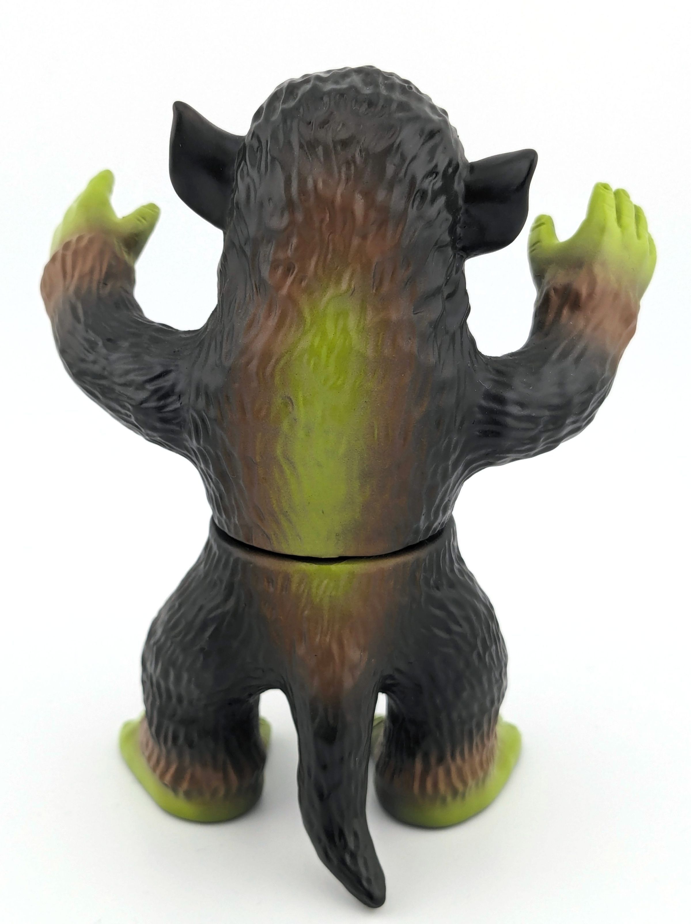 Brown vinyl with light brown, green, and fluorescent orange paint