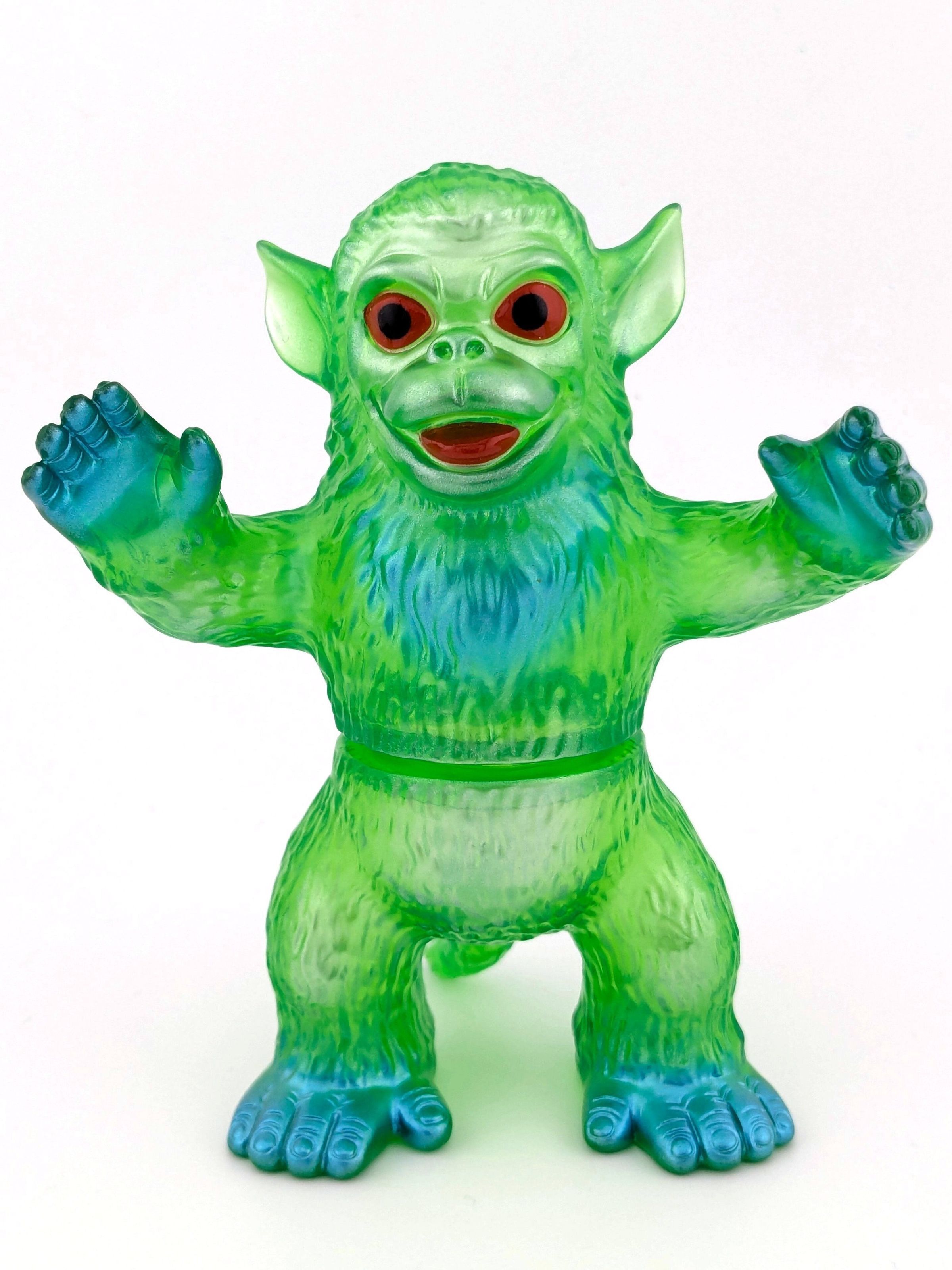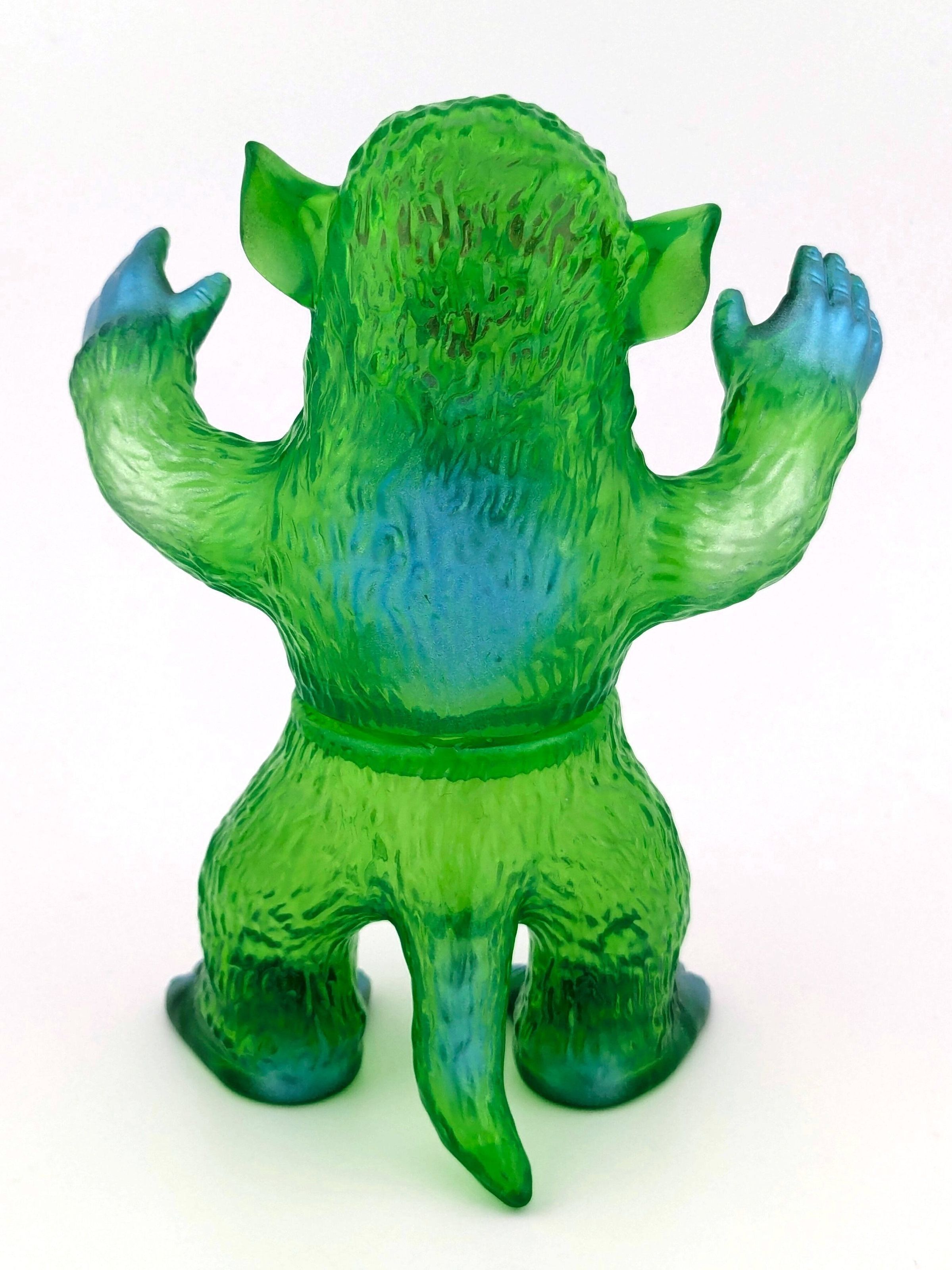 Trans green vinyl with metallic blue, silver, and red paint