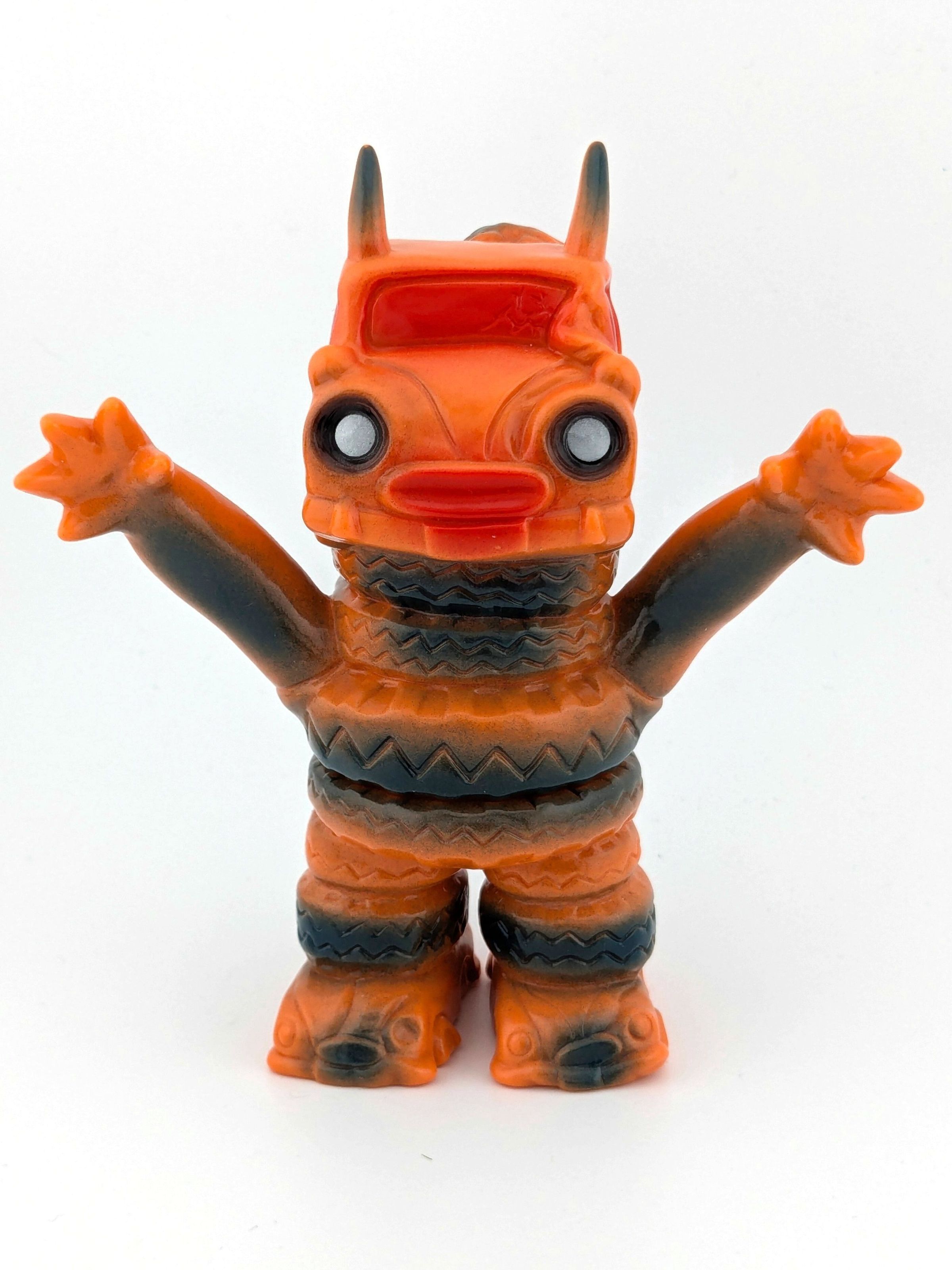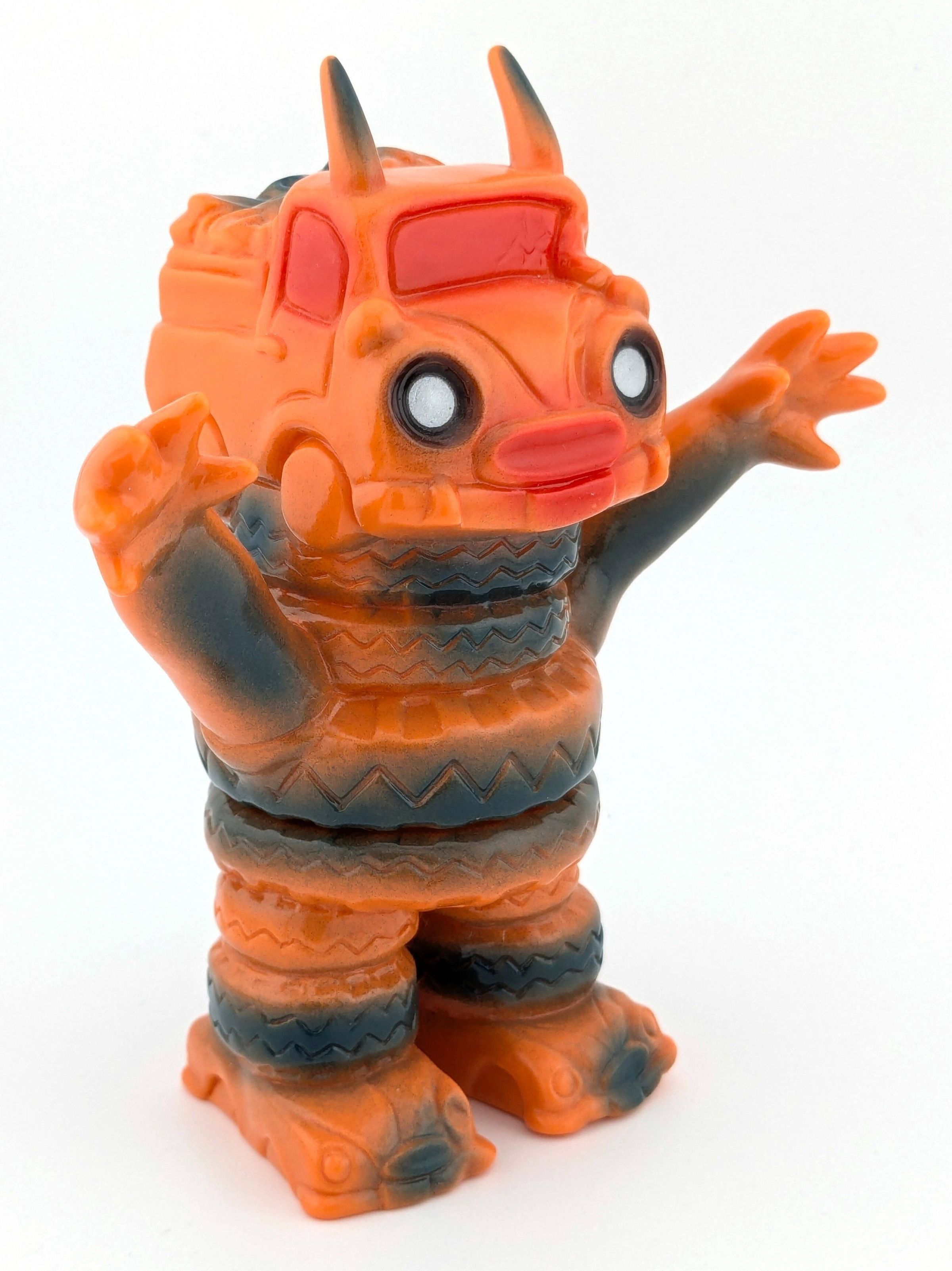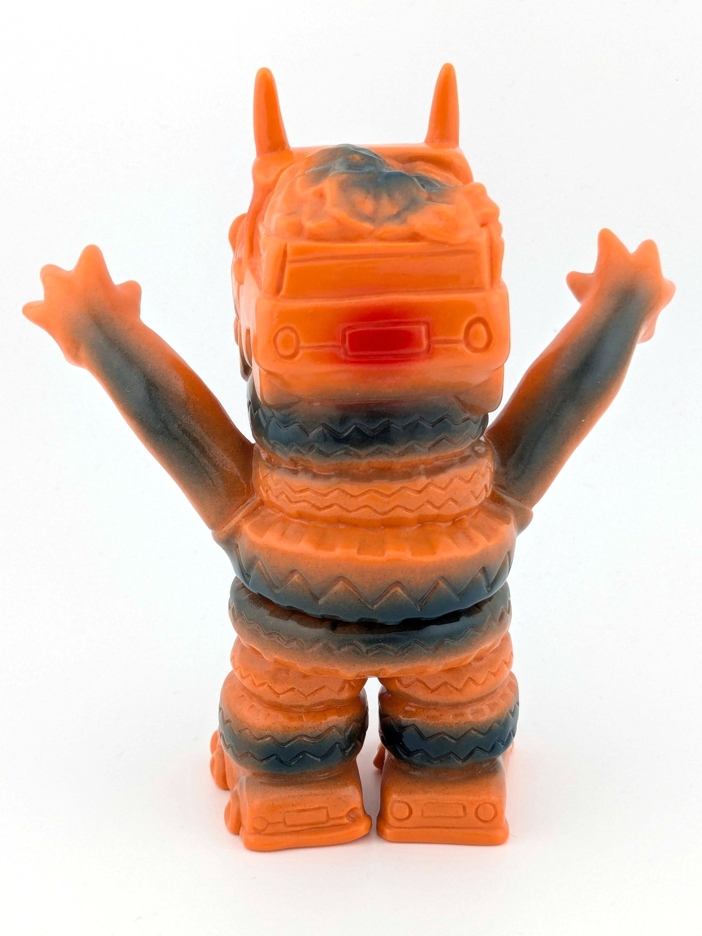 Orange vinyl with blue, red, black, and silver paint