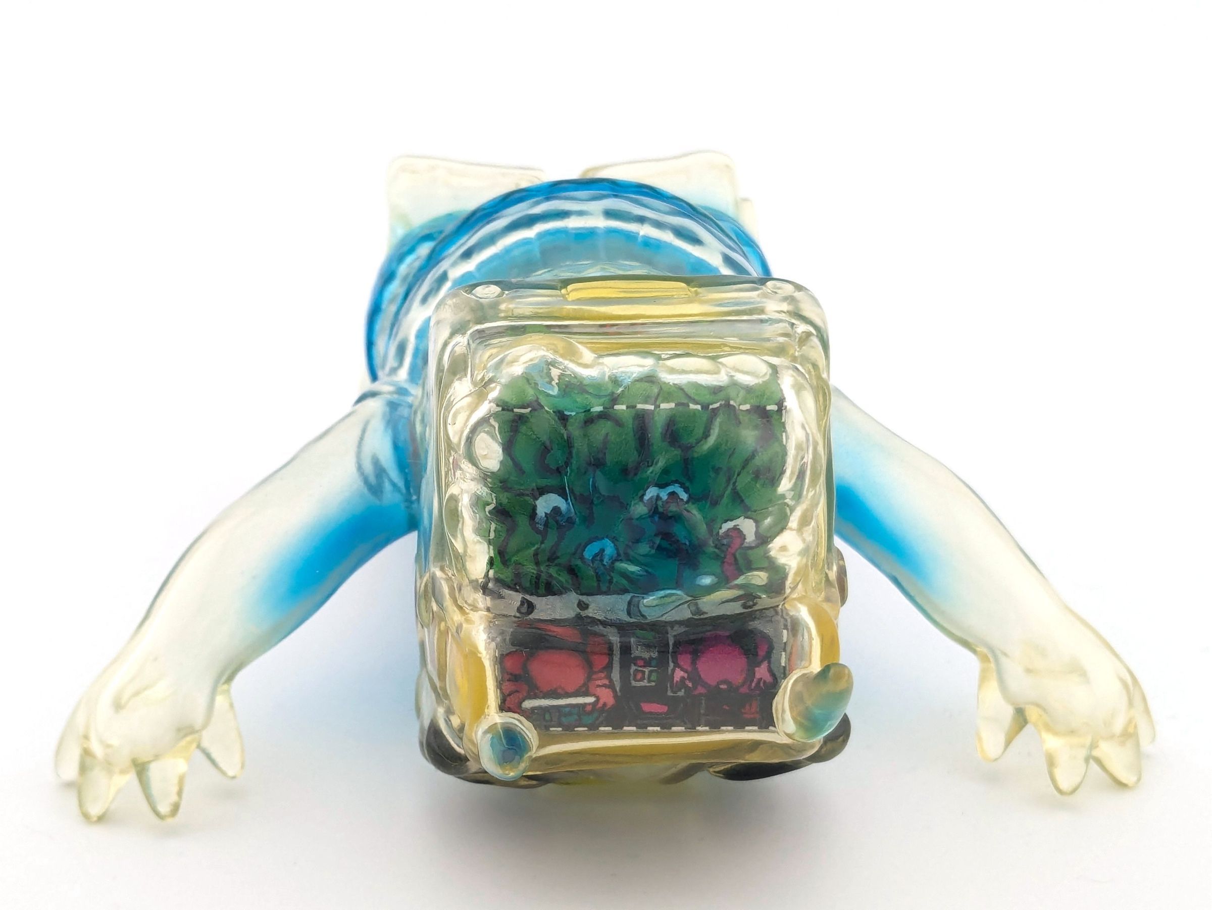 Clear vinyl with trans blue and yellow paint; paper guts insert