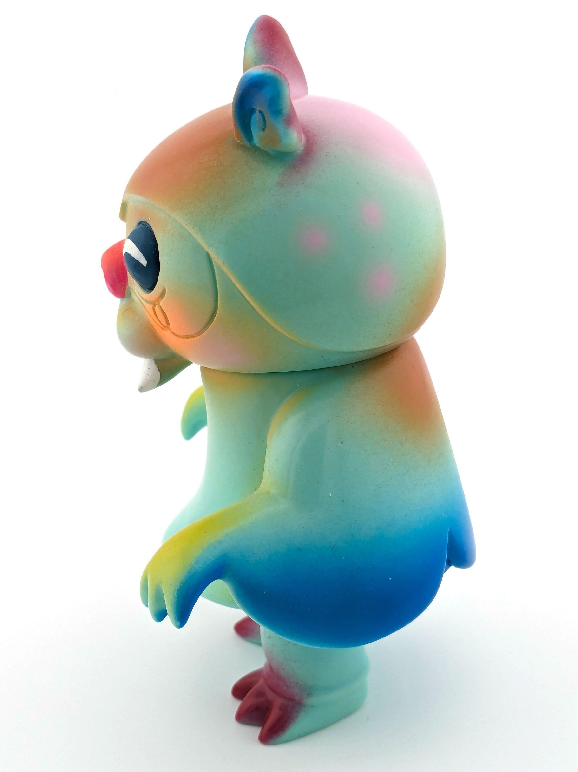 Light blue vinyl with red, yellow, orange, pink, blue, brown, and white paintMade/Created