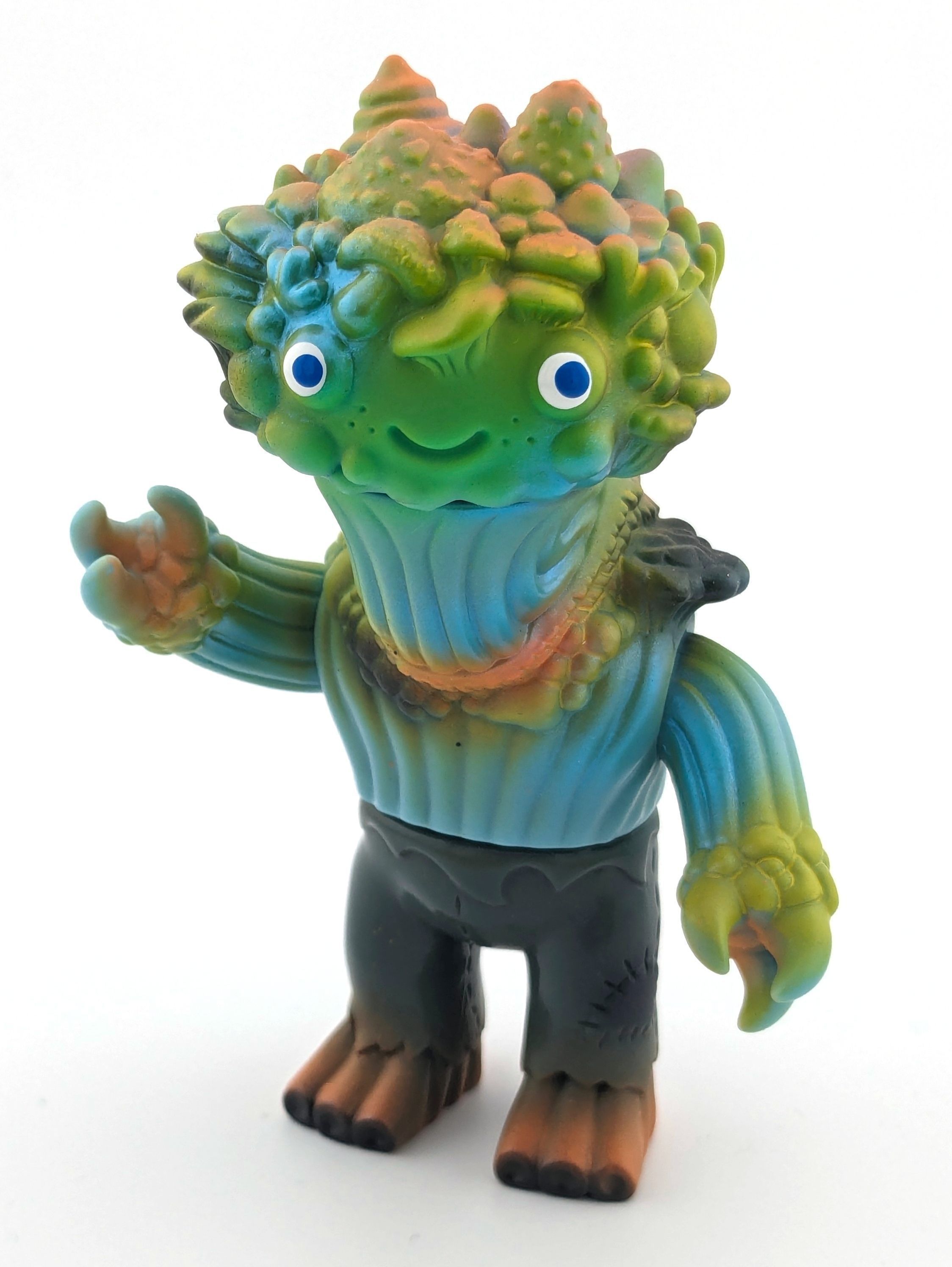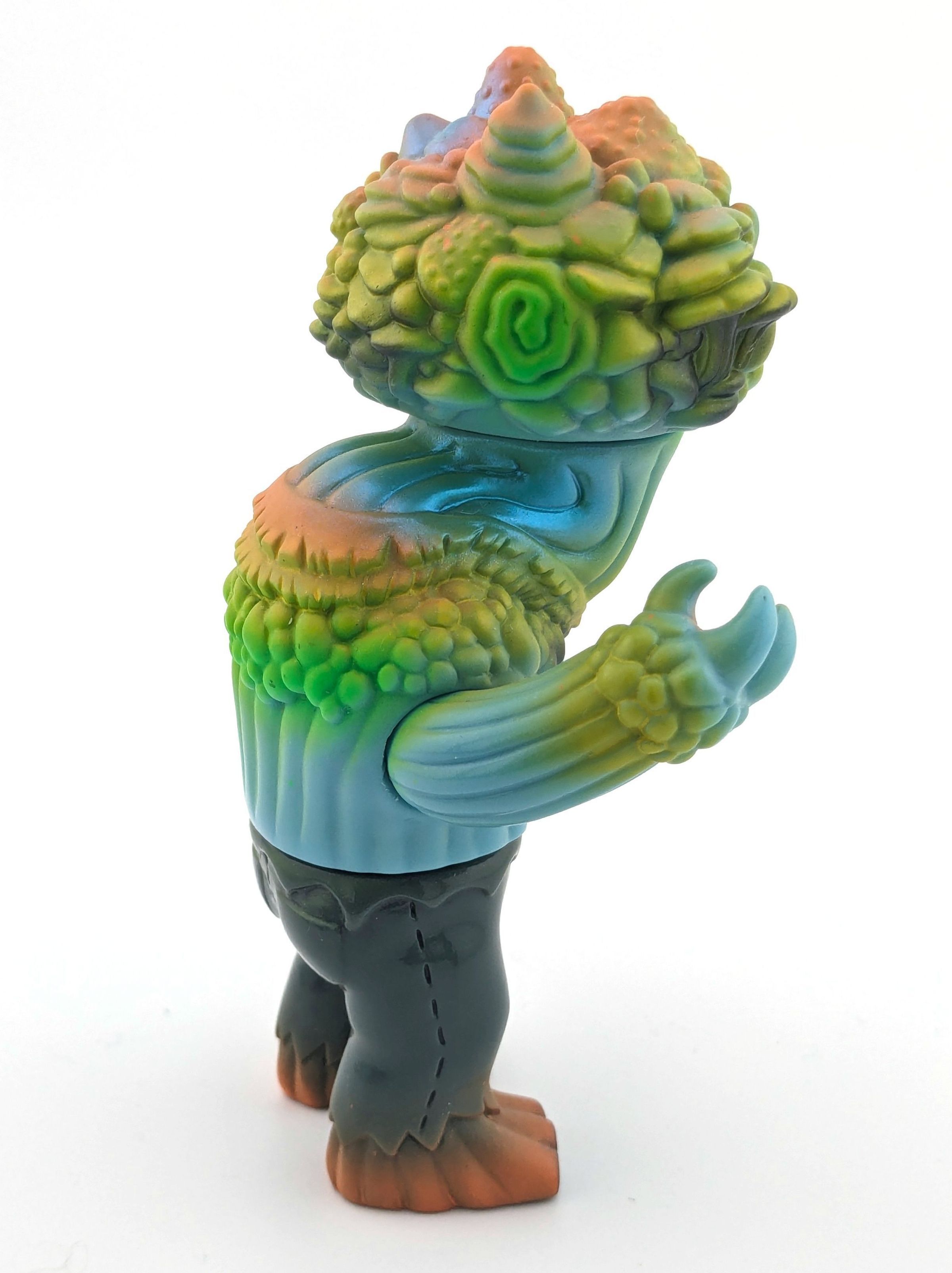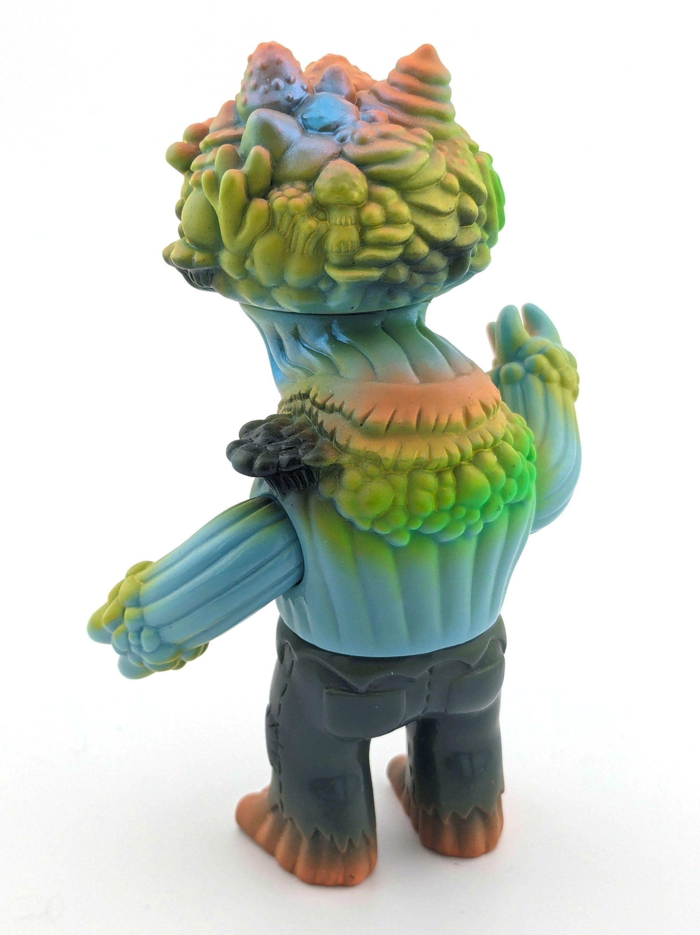 Light blue vinyl with peach, green, fluro green, metallic blue, gray, and white paint