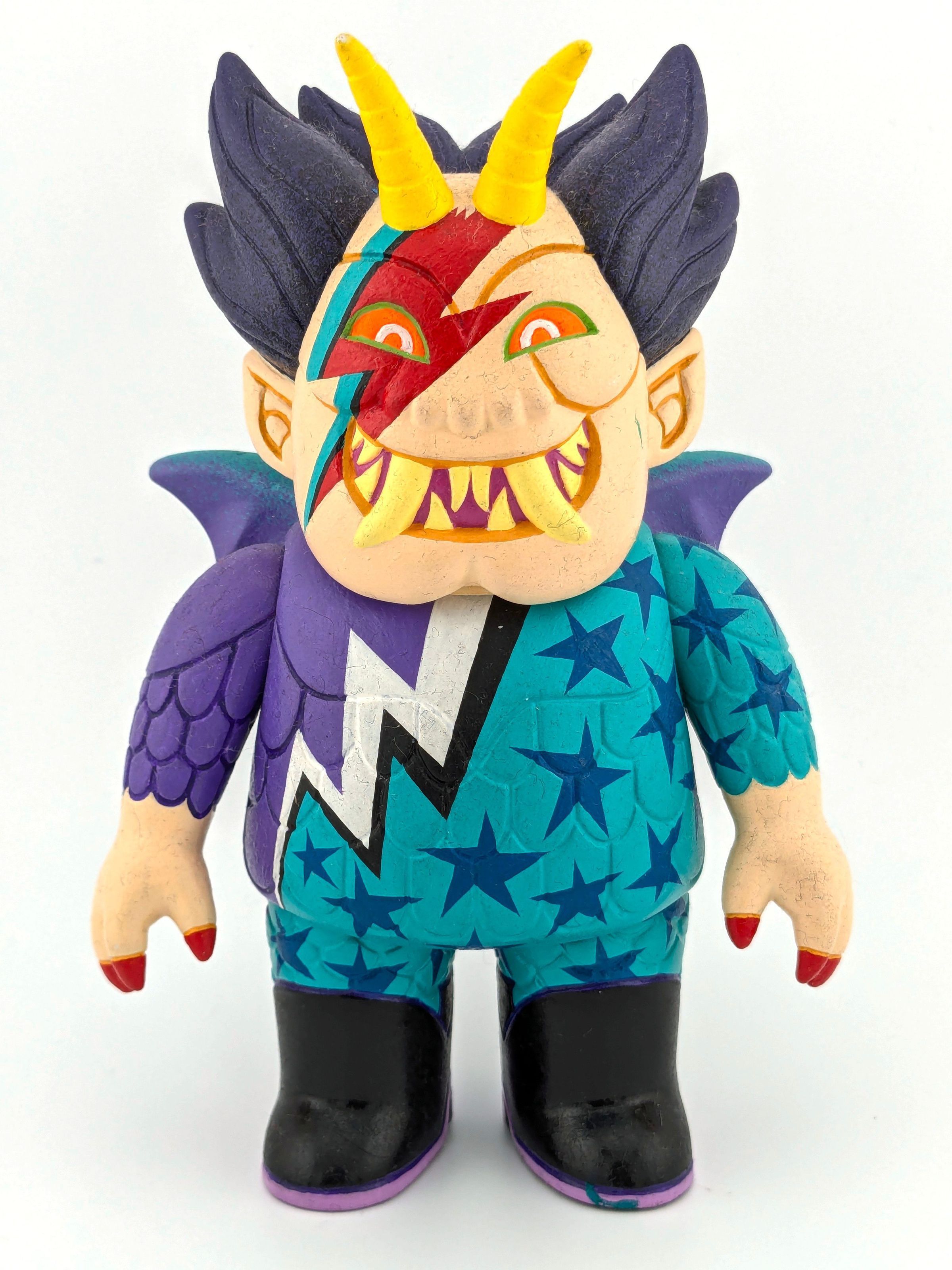Unknown vinyl with flesh, purple, teal, blue, black, white, red, yellow, red, and fluro orange paint