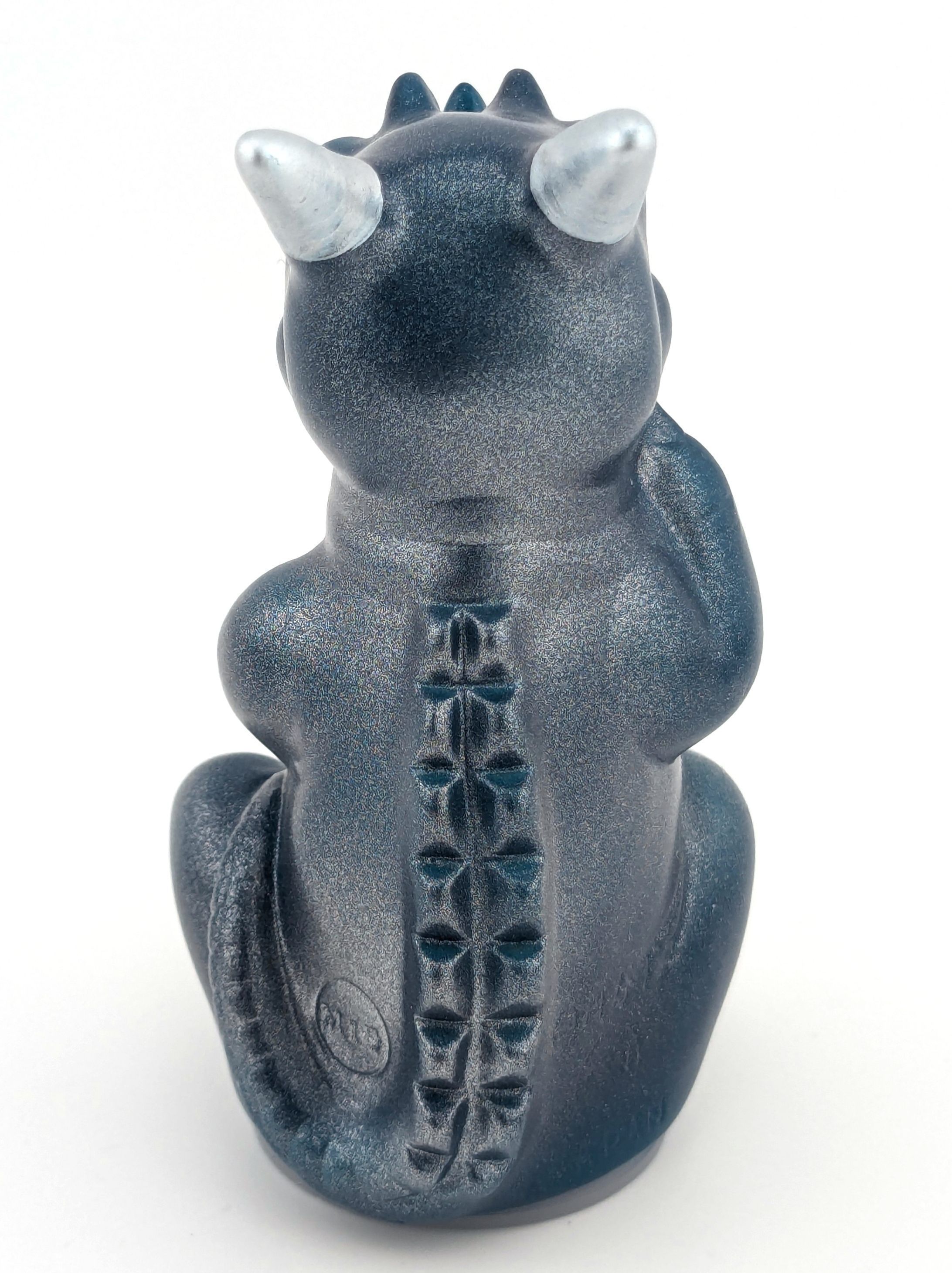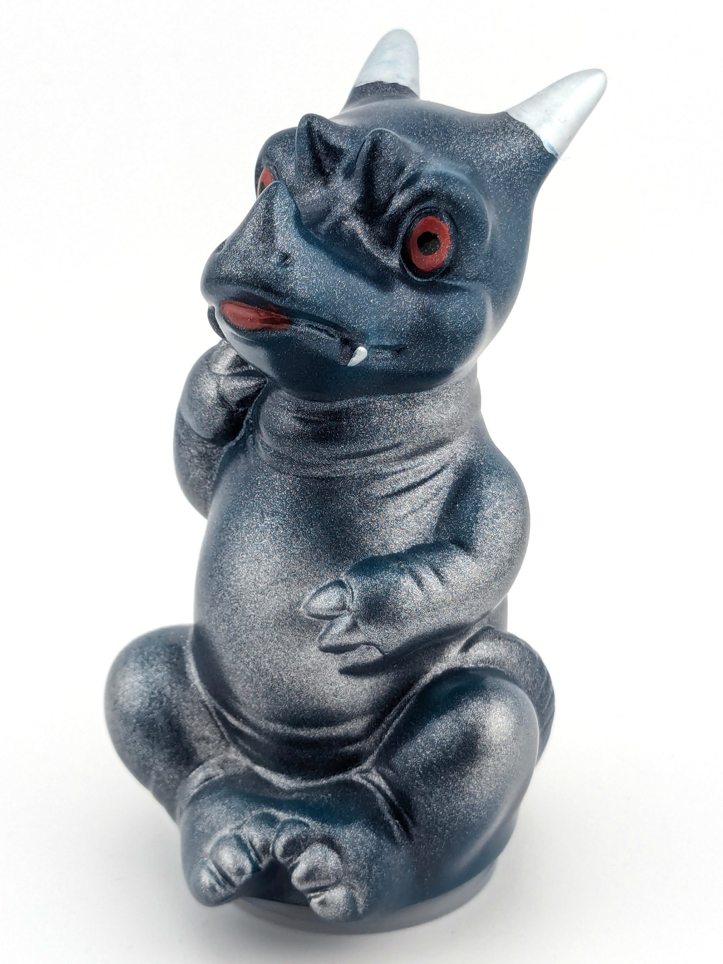 Flesh vinyl overpainted with dark blue, red, black, and silver paint