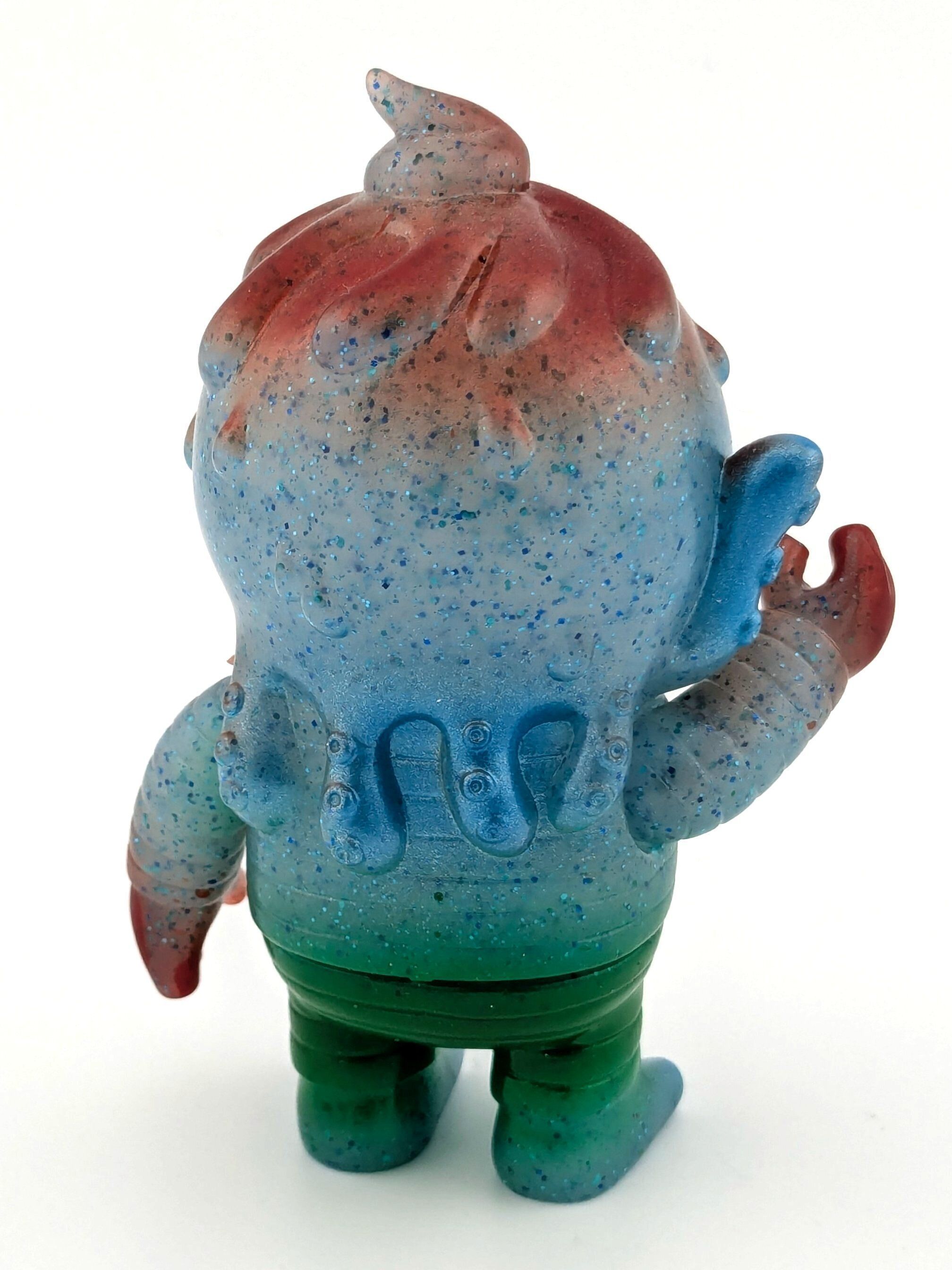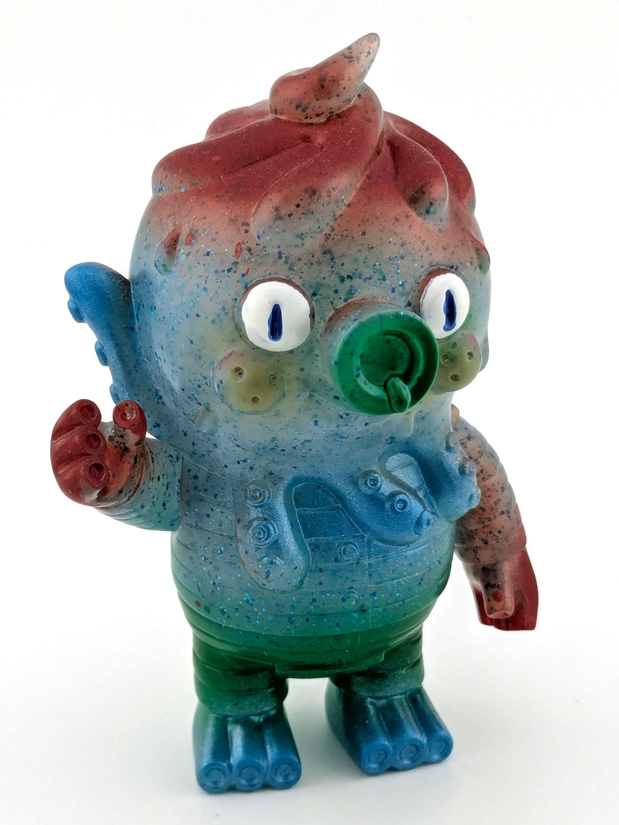 Sparkle blue vinyl with red, gold, blue, green, white, and dark blue paint