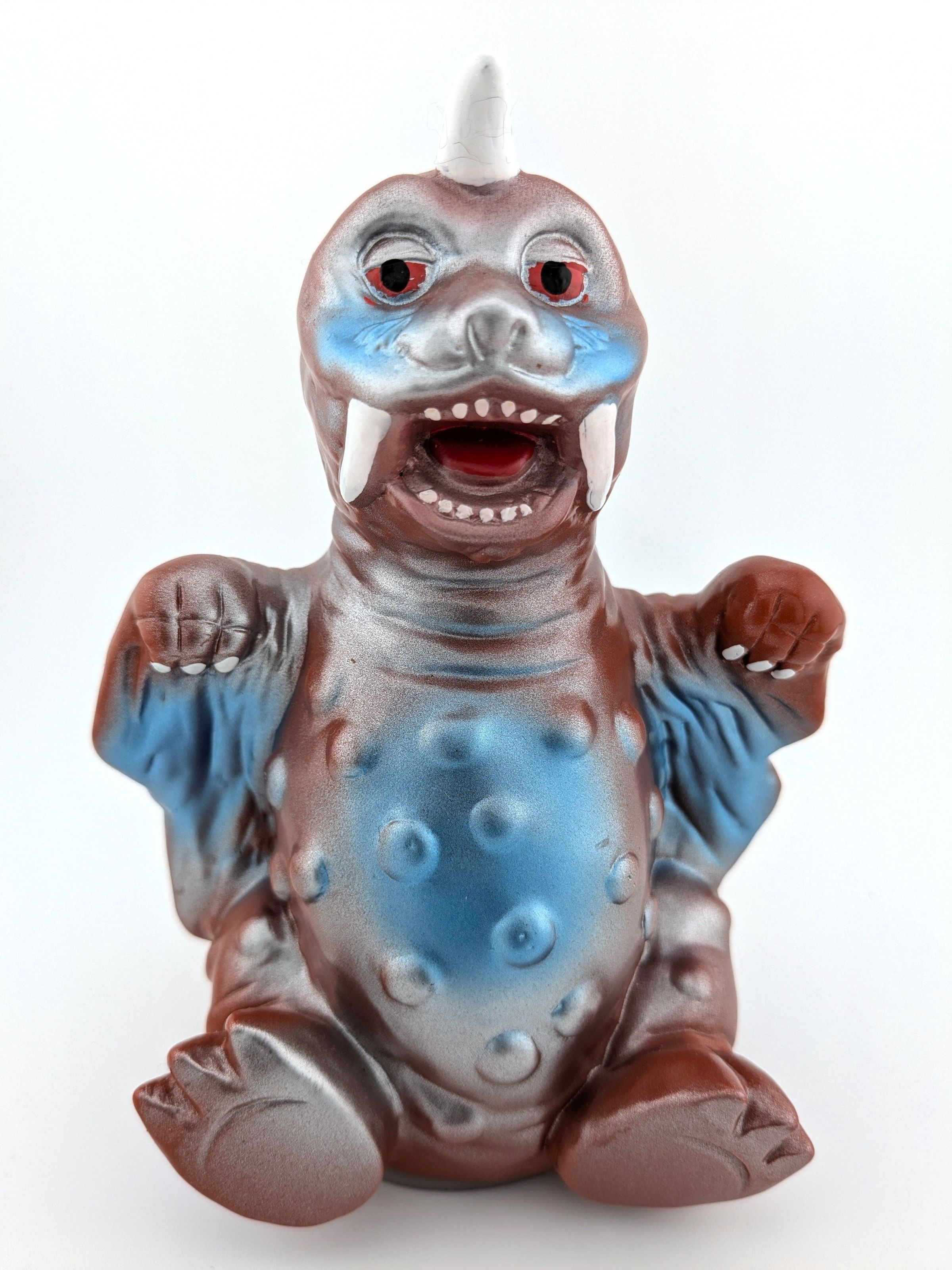Tea vinyl with blue, silver, white, red and black paint