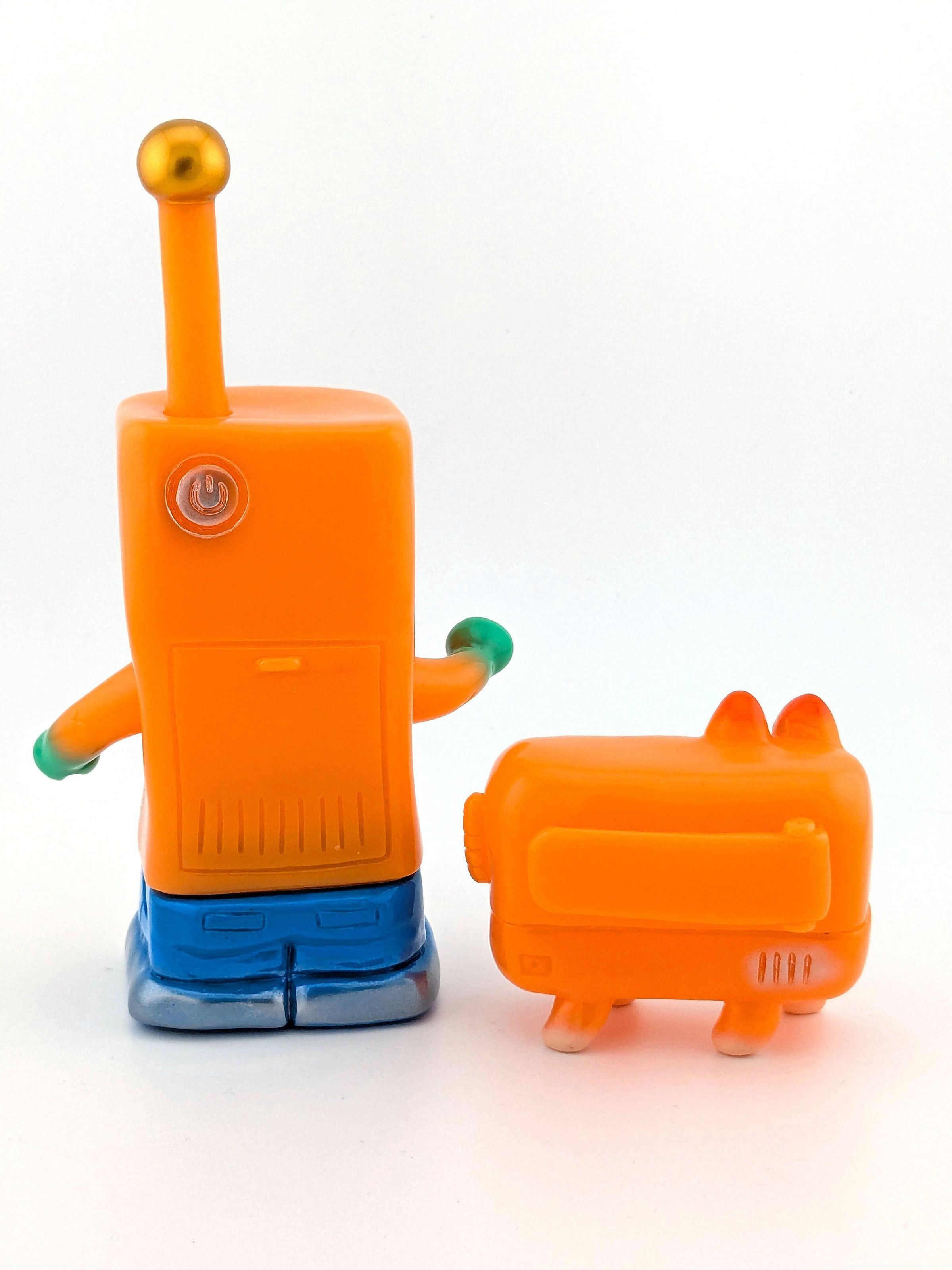 Orange vinyl with gold, white, red, black, yellow, organge, blue, and silver paint.