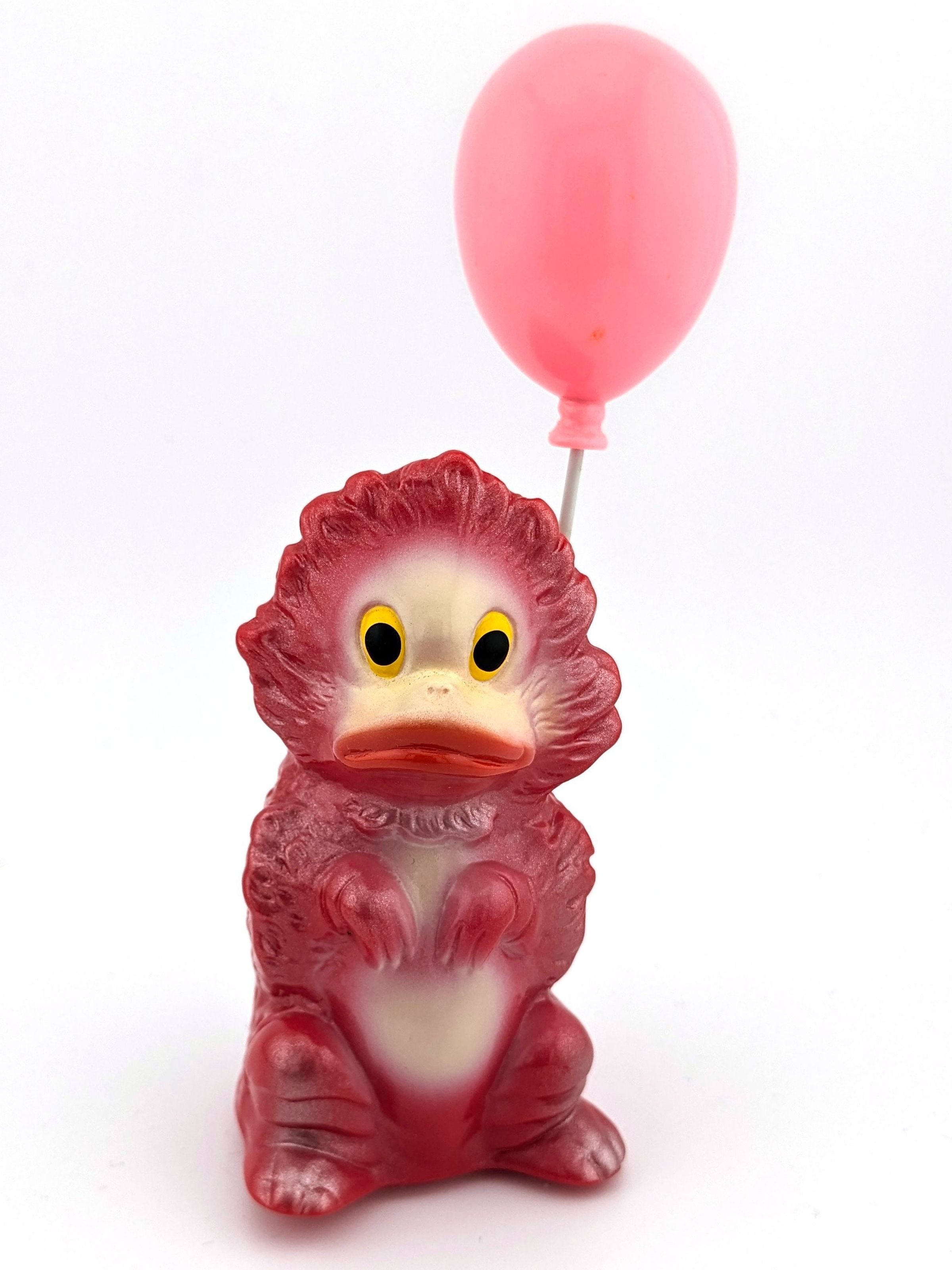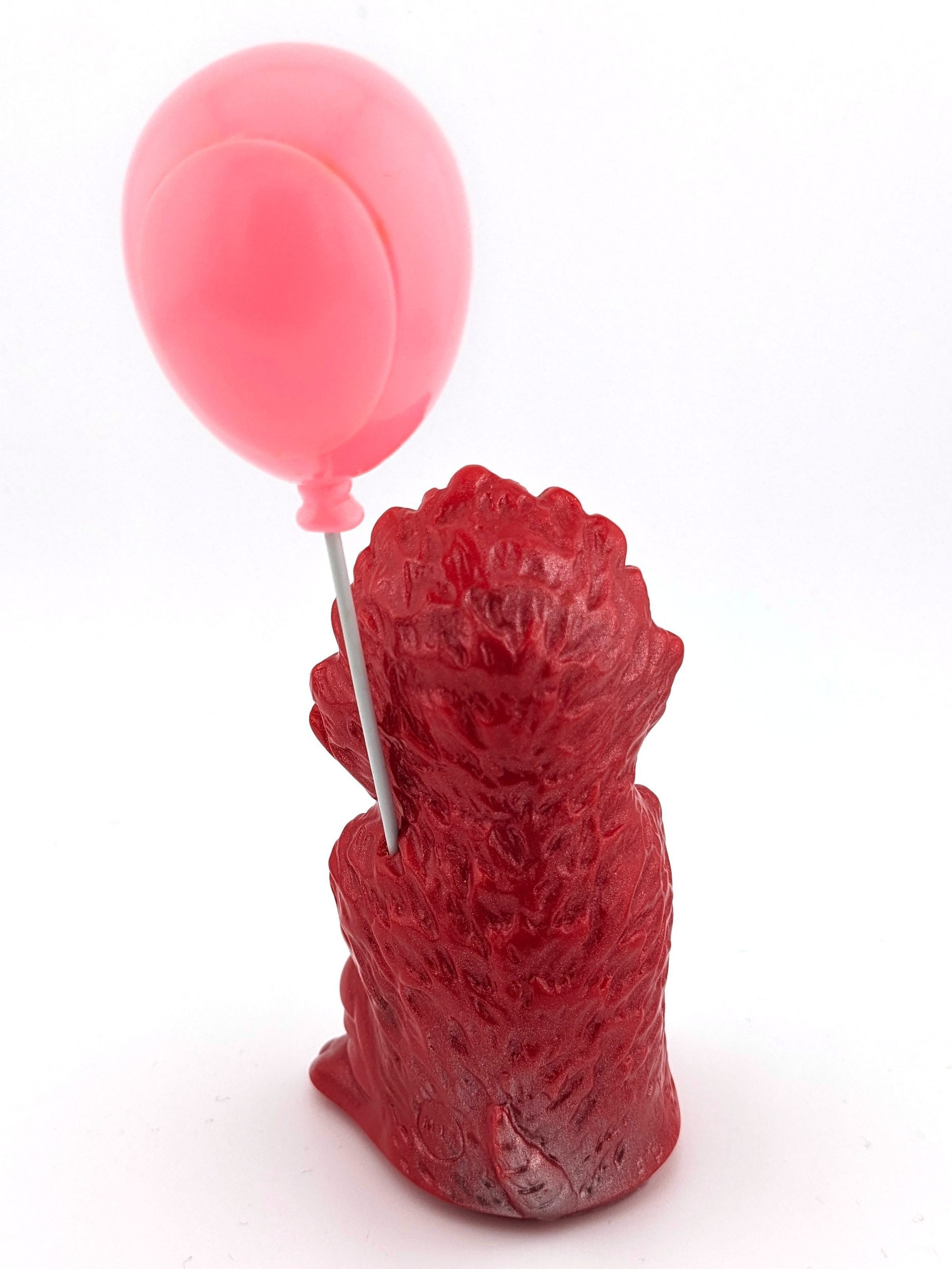 Red vinyl with cream, yellow, black, pink, and silver paint; includes pink balloon on a stickMade/Created