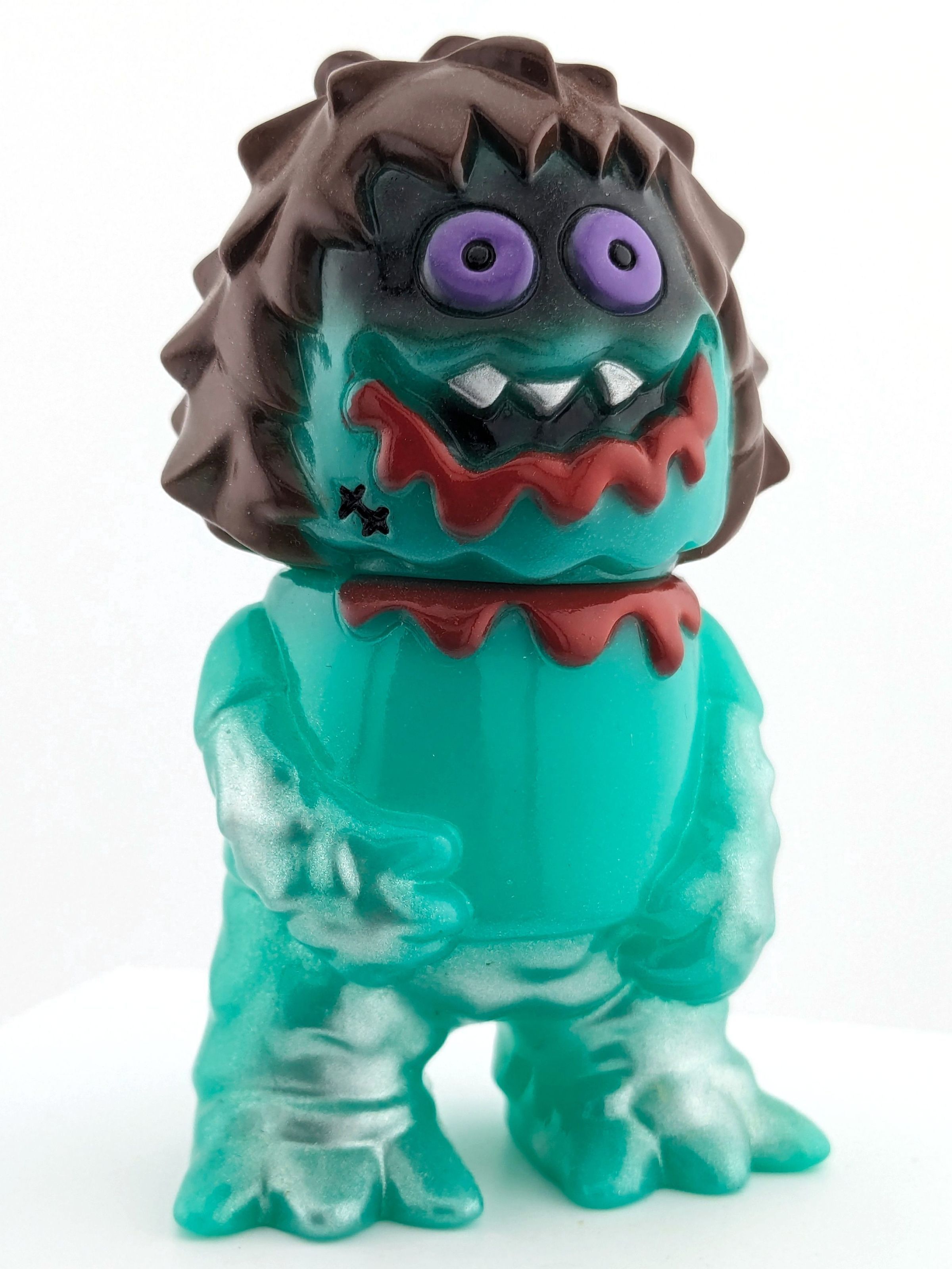 Teal vinyl with brown, red, silver, and purple paint